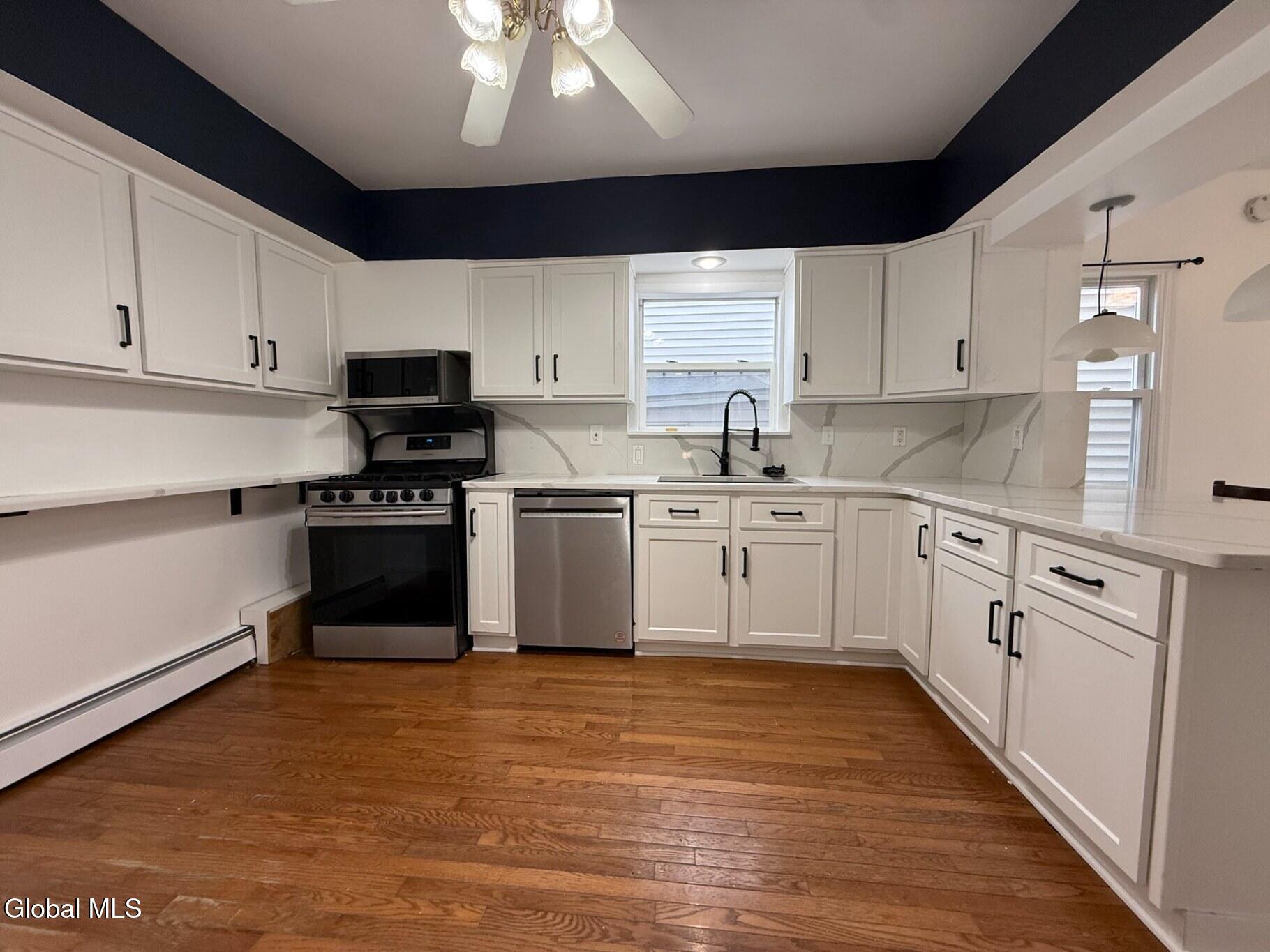 Welcome to this stunning, fully renovated 2-bedroom, 2 full bath rental offering space, style, and privacy. This large, open-concept unit features soaring two-story ceilings, a gas fireplace, new luxury flooring, and a beautifully updated kitchen with stainless steel appliances and a breakfast bar. Enjoy in-unit washer/dryer, a dedicated beverage bar, and thoughtful upgrades throughout. Outside, your private backyard oasis awaits- complete with deck, gazebo, and patio furniture, providing true peace and privacy. This is elevated rental living at its finest -- schedule your showing today!