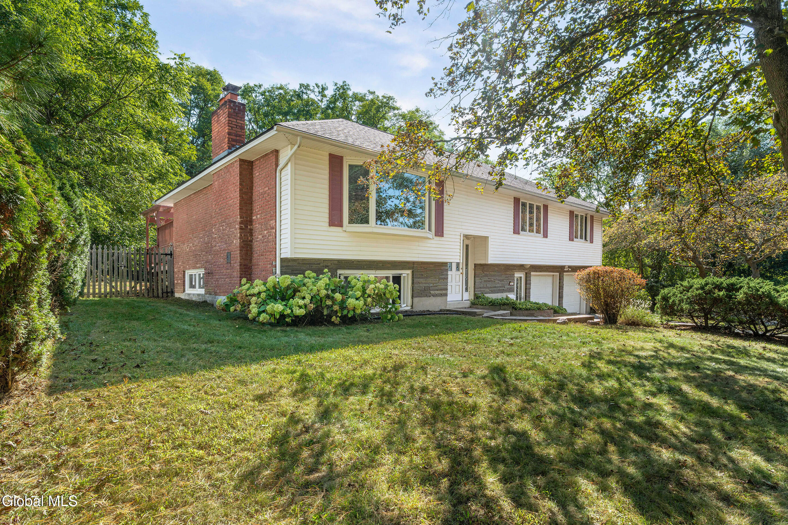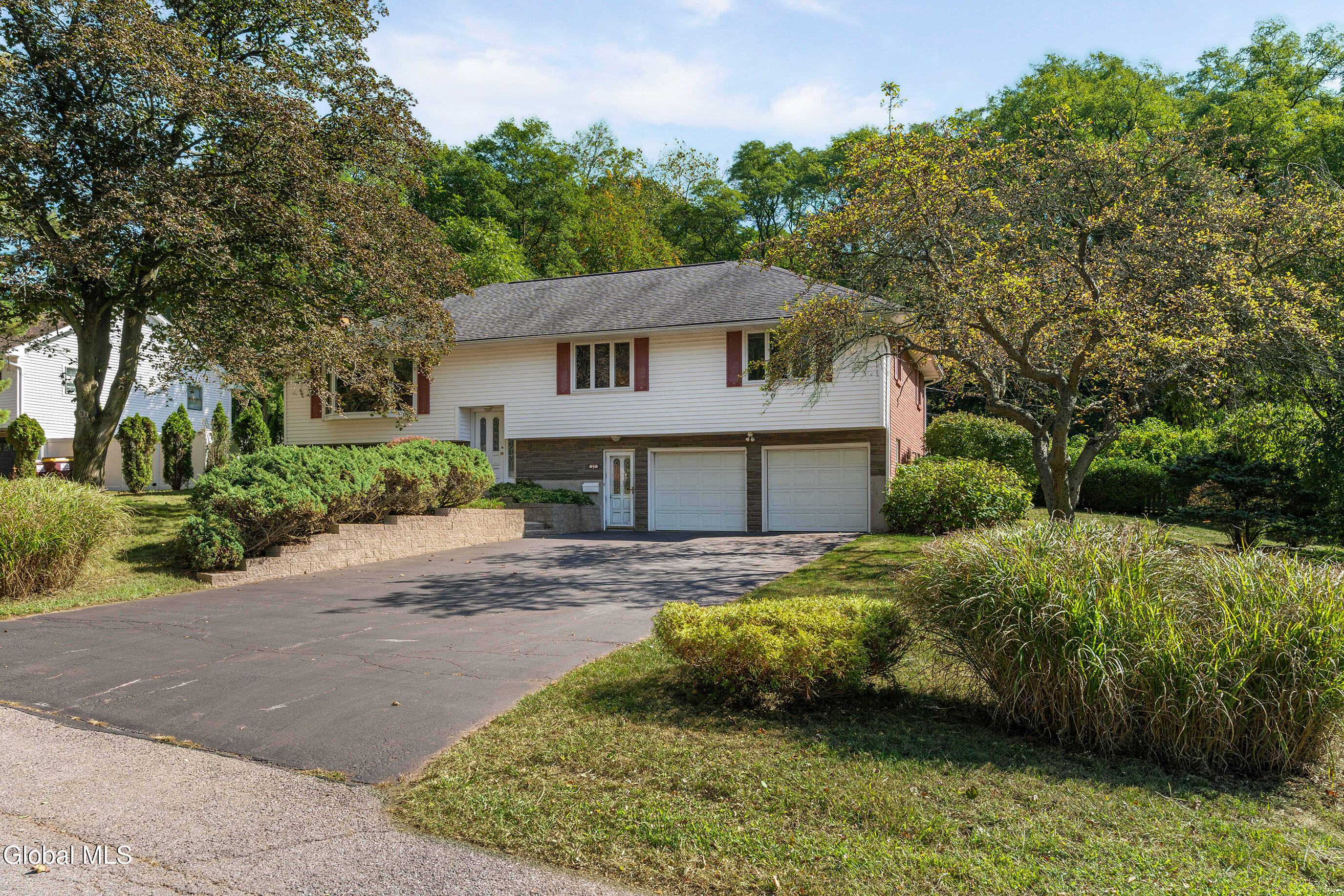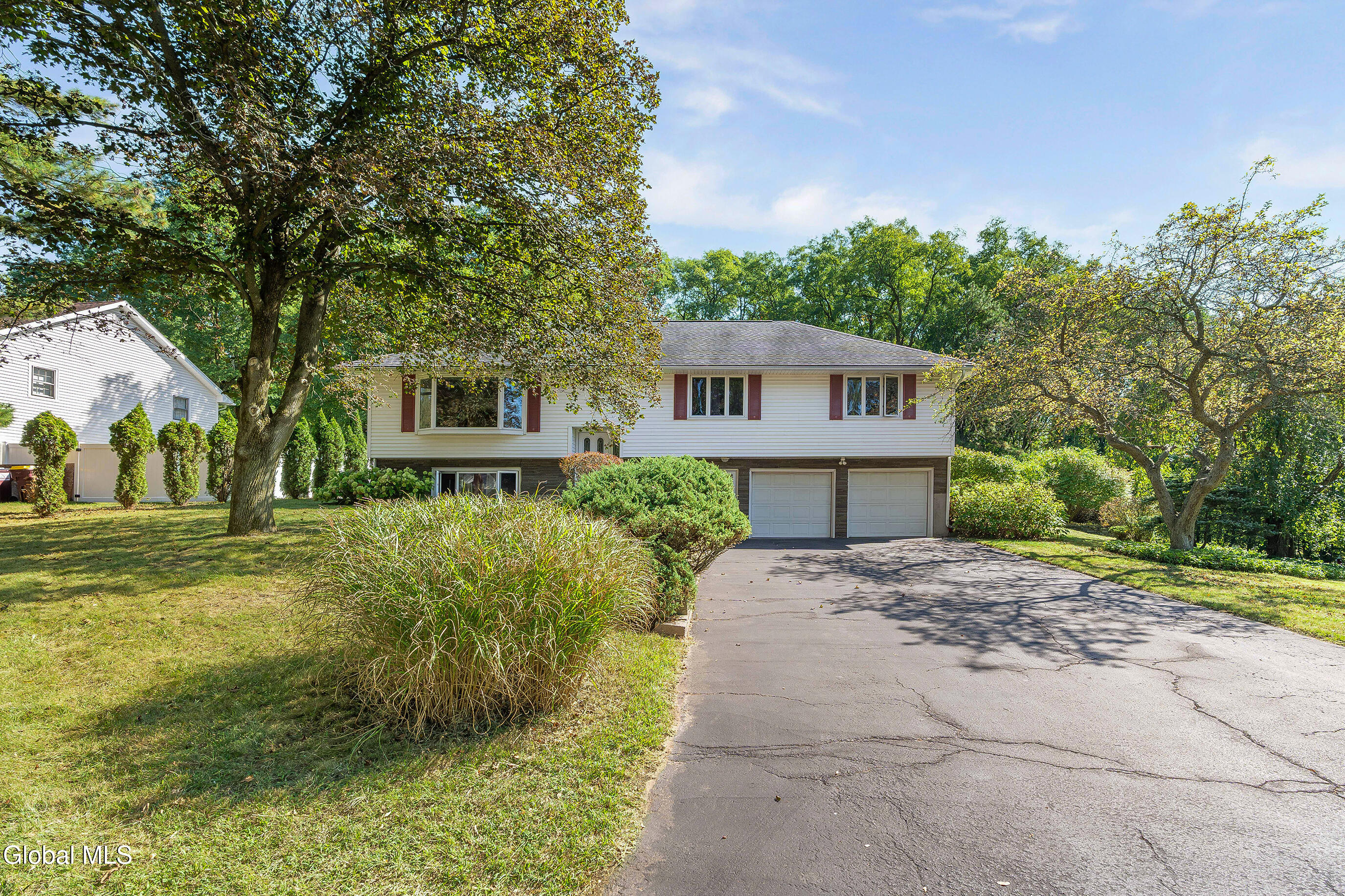 This spacious Raised Ranch is set in a quiet, sought-after Guilderland neighborhood and offers 2,386 sq. ft. of living area with 3 bedrooms and 2.5 baths. Oak hardwood floors lie beneath the main level carpets, including all bedrooms, living, and dining rooms and are ready to be revealed with just a little effort. The upper level features a sizable living room with fireplace, a dining area, kitchen, 3 bedrooms (including a primary with half bath), and a sizable main hall bath. Downstairs, enjoy a welcoming foyer, comfortable family room with a gas fireplace, full bathroom, and a convenient laundry room. Additional highlights include an expansive two-car garage and a private, peaceful fully fenced backyard, perfect for relaxing, entertaining or admiring the landscaping from the generous deck and/or patio. This inviting home offers space, versatility, and the opportunity to make it your own.