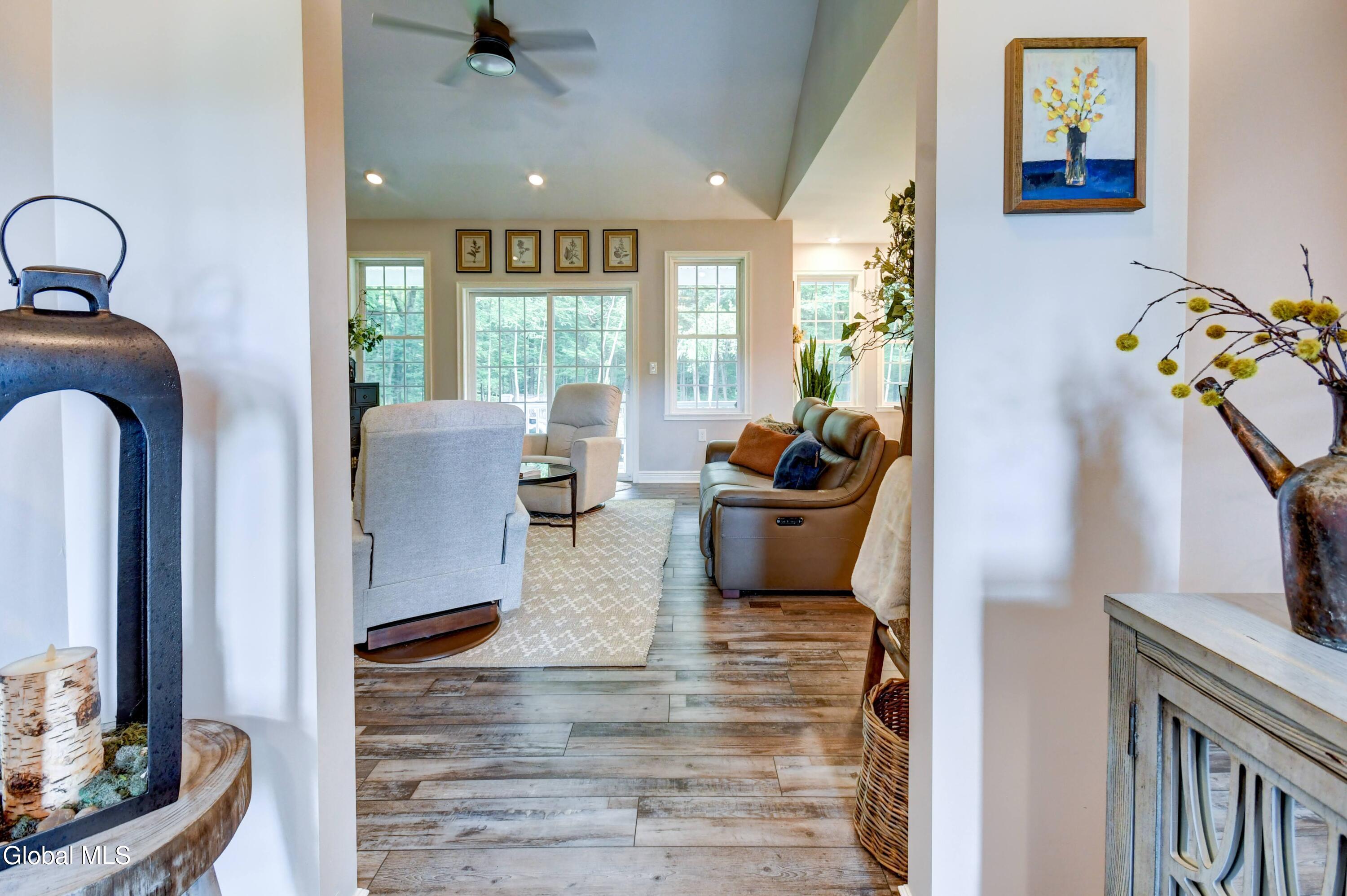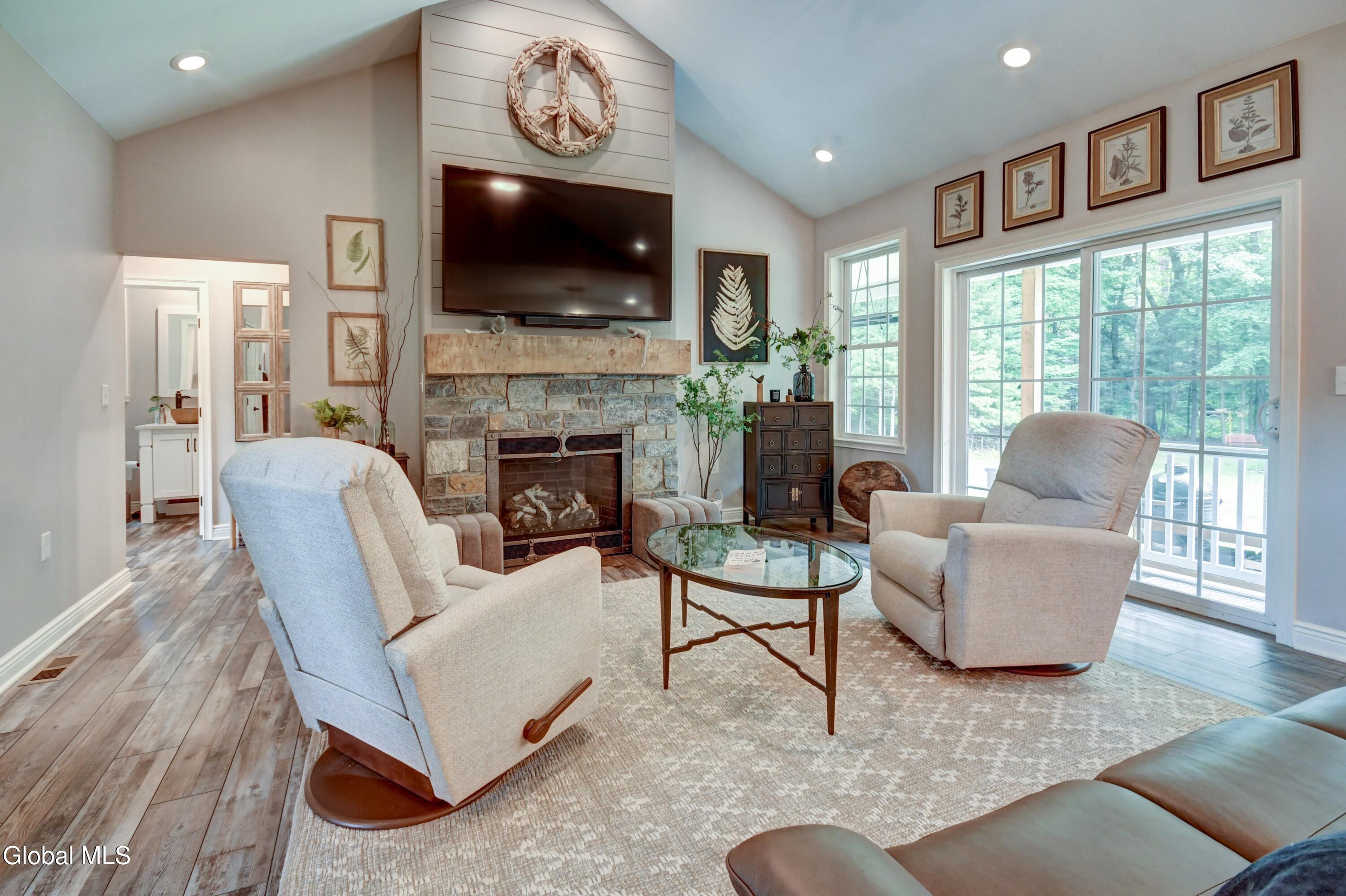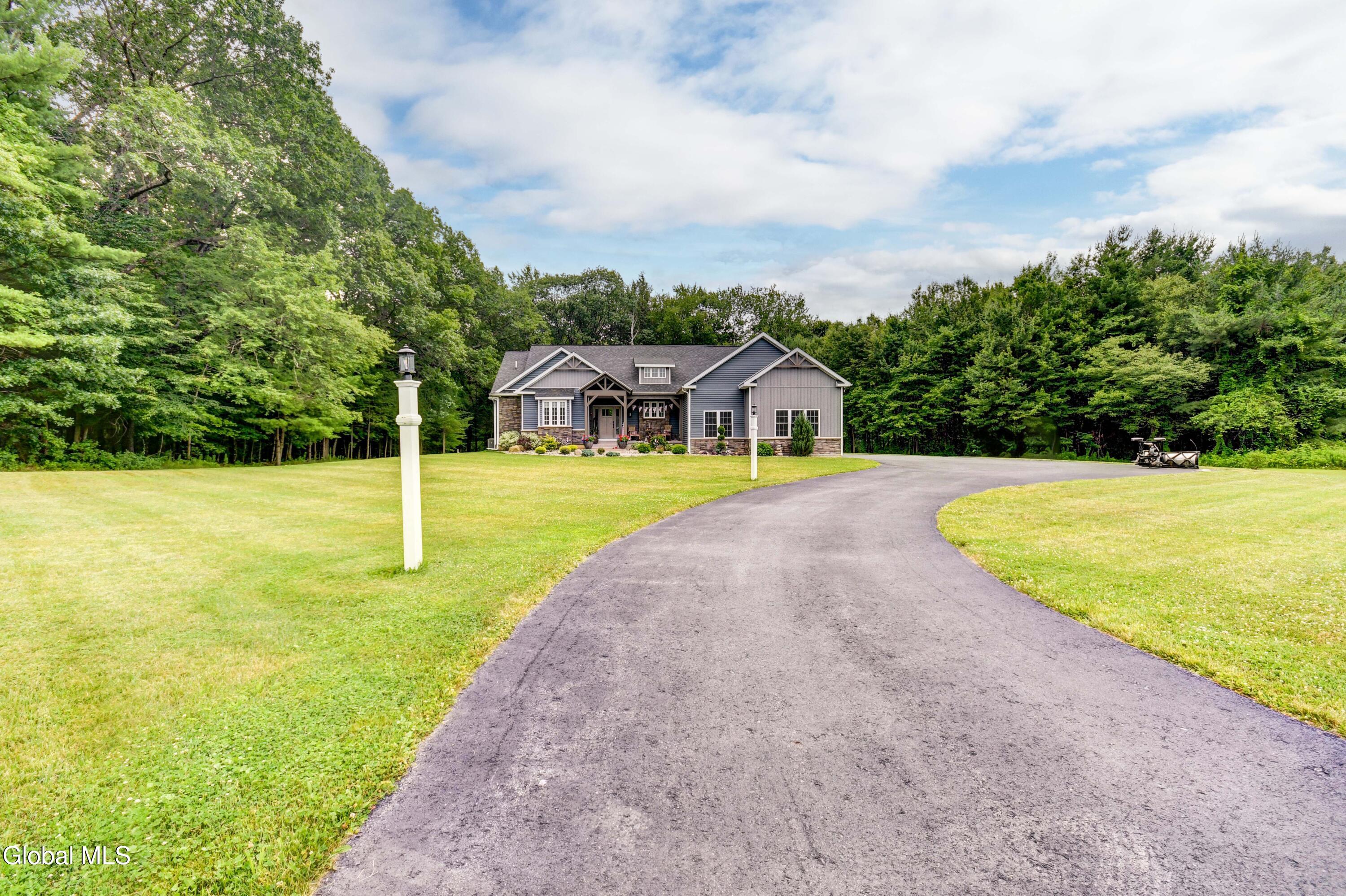 +1.5 private acres in the Guilderland School District, this 1,800 sq ft 3-bed, 2-bath custom Craftsman-style ranch offers comfort and space in a serene setting. A long private driveway leads to a charming one-story home featuring a warm living room with gas-burning fireplace, spacious eat-in kitchen, and generous bedrooms. Enjoy the convenience of public water/sewer and an oversized 2-car garage. Surrounded by trees, yet minutes to shopping, schools, and highways—this home blends quiet living with everyday access. Love the outdoors? look no further, while staying close to home. Wooded & Secluded lot with a nature surrounding with exotic and local birds, turkeys & deer.