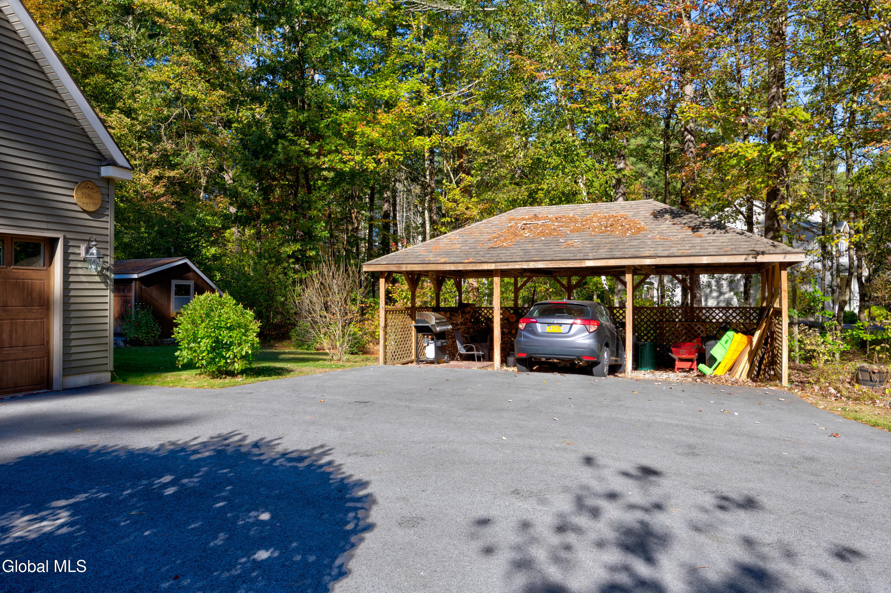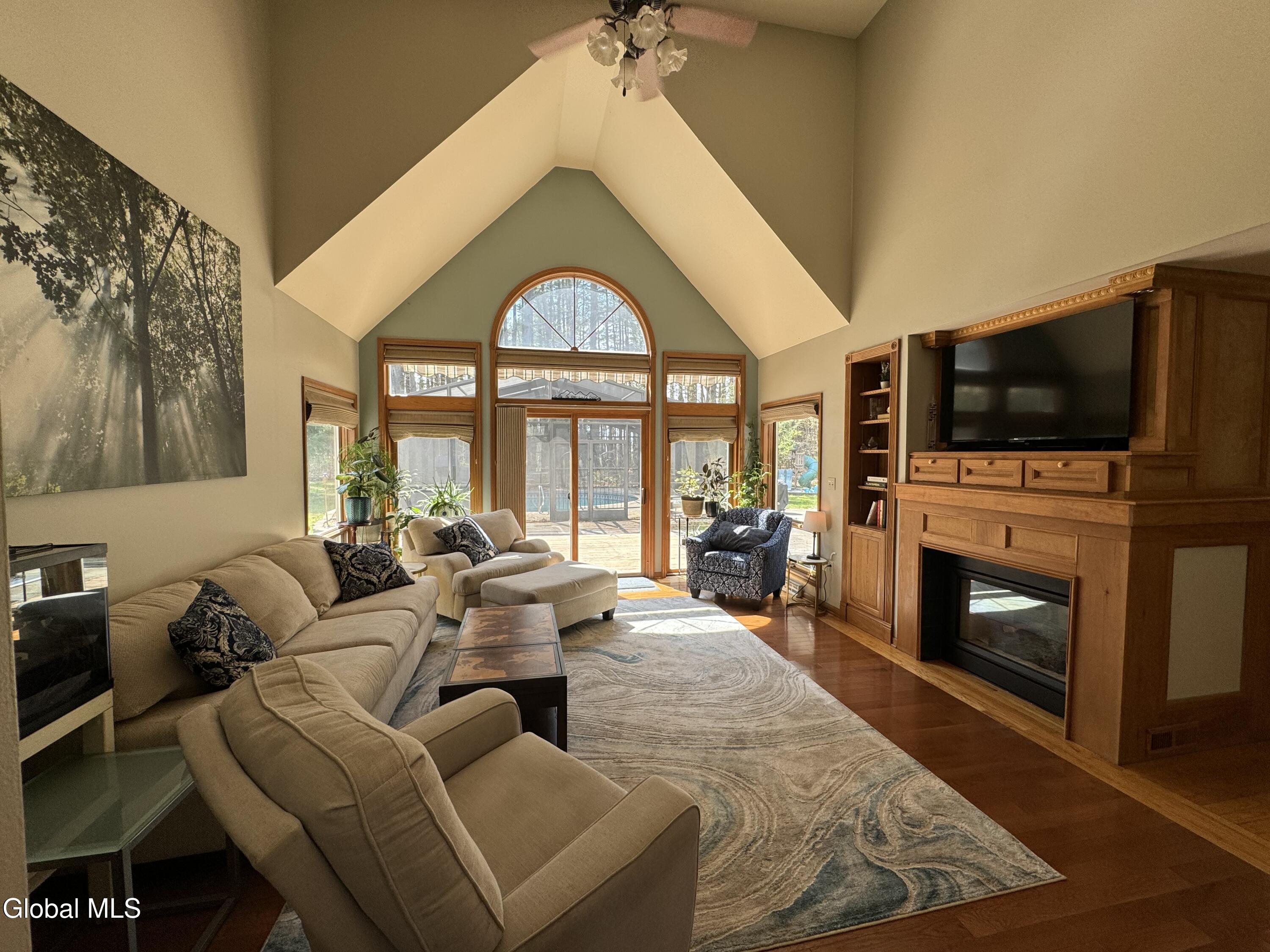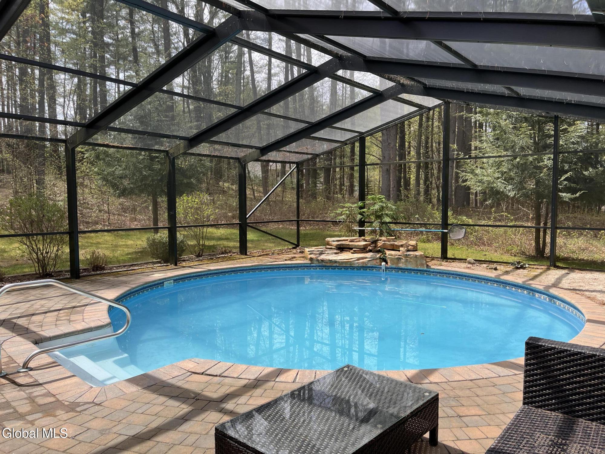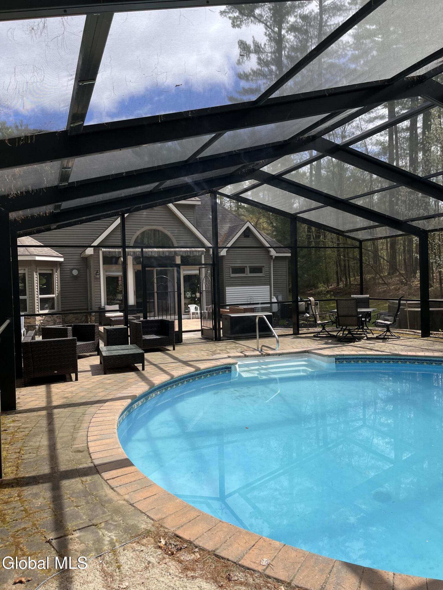**Fall in Love with This Former Showcase of Homes Beauty** This stunning home offers an exceptional blend of thoughtful design, modern upgrades, and comfortable living—all nestled in the desirable Bog Meadow neighborhood. From the first-floor primary suite featuring dual walk-in closets and a luxurious custom walk-in shower, to the cozy double-sided gas fireplace perfect for chilly evenings, every detail has been carefully crafted. The spacious eat-in kitchen is ideal for both everyday meals and entertaining, complete with a center island and a charming breakfast nook. During this year's track season, the home generated $16,000 in Airbnb income—showcasing its appeal as both a primary residence and an investment opportunity. Recent updates over the past five years include a new furnace, central air conditioning, washer/dryer, dishwasher, and a newly paved driveway. Step outside to your private backyard oasis featuring an in-ground pool with a screened lanai and tranquil waterfall. The professionally landscaped grounds are enhanced by custom stone walls, patios, and extensive outdoor lighting, programmable or set from dusk to dawn. Additional features include: * Carport for extra covered parking * Advanced in-ground irrigation system controllable via smartphone (waters lawn, gardens, roses, and even tops off the pool) * Electric dog fence system for your dog * Radon mitigation system installed * Private well with reverse osmosis system for clean drinking water * Partially finished basement perfect for a rec room, plus ample storage space Located in a quiet one-mile loop with no through traffic, Bog Meadow also offers easy access to a public park just across the road. Enjoy the peace of a tucked-away neighborhood with the convenience of being minutes from Route 50 shopping, dining, and quick access to I-87. Super private 2 acre lot is a bonus!