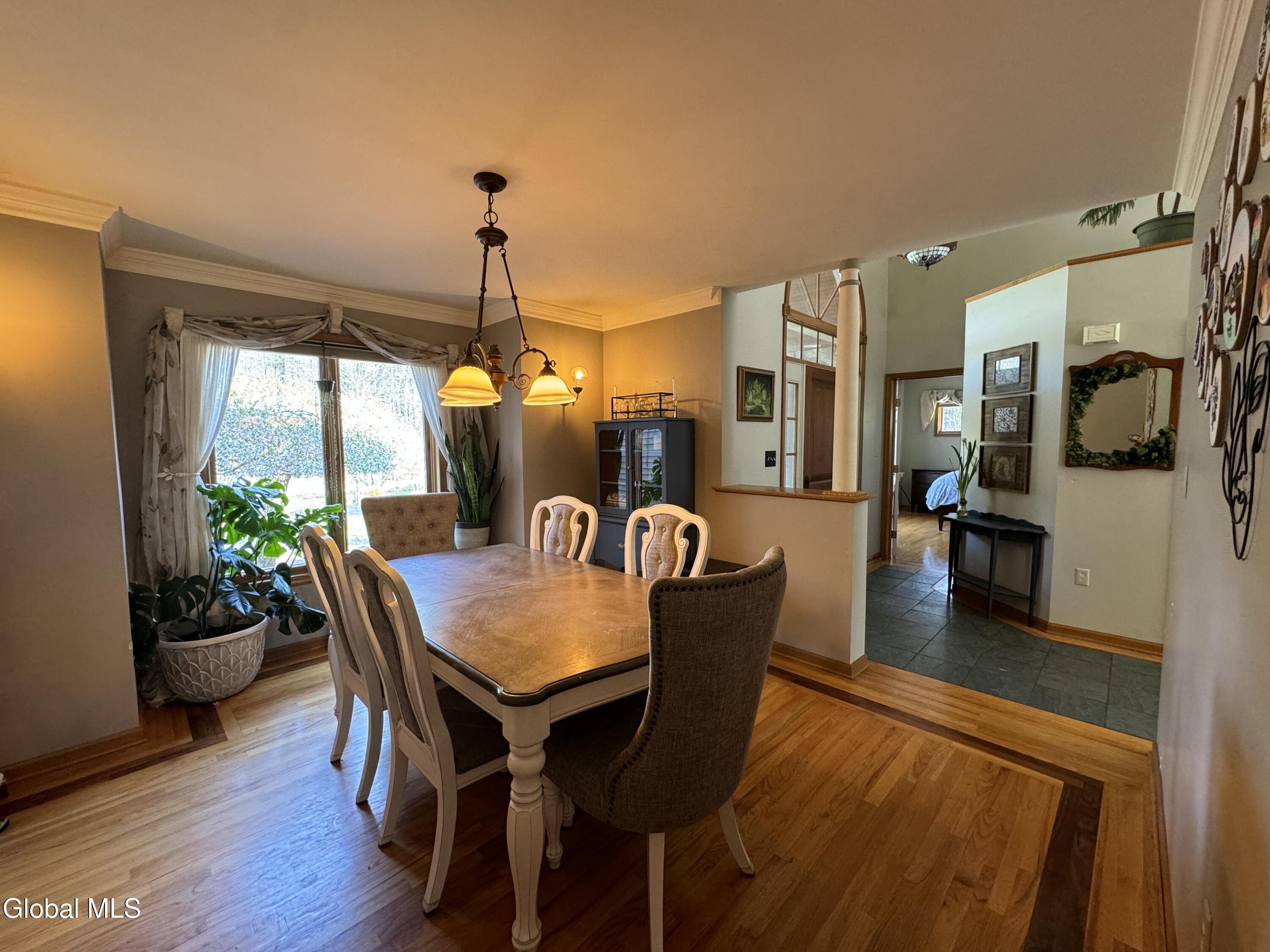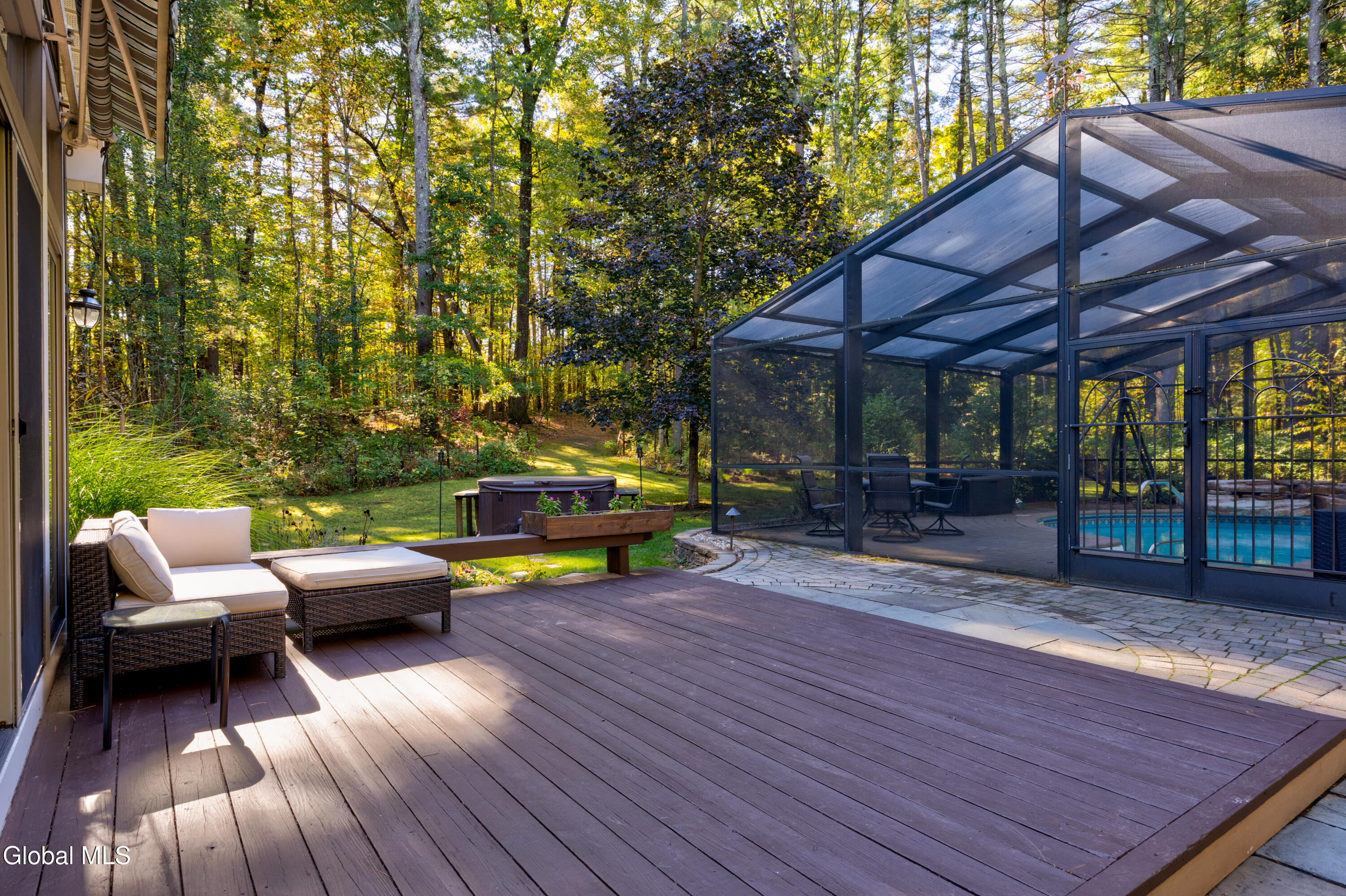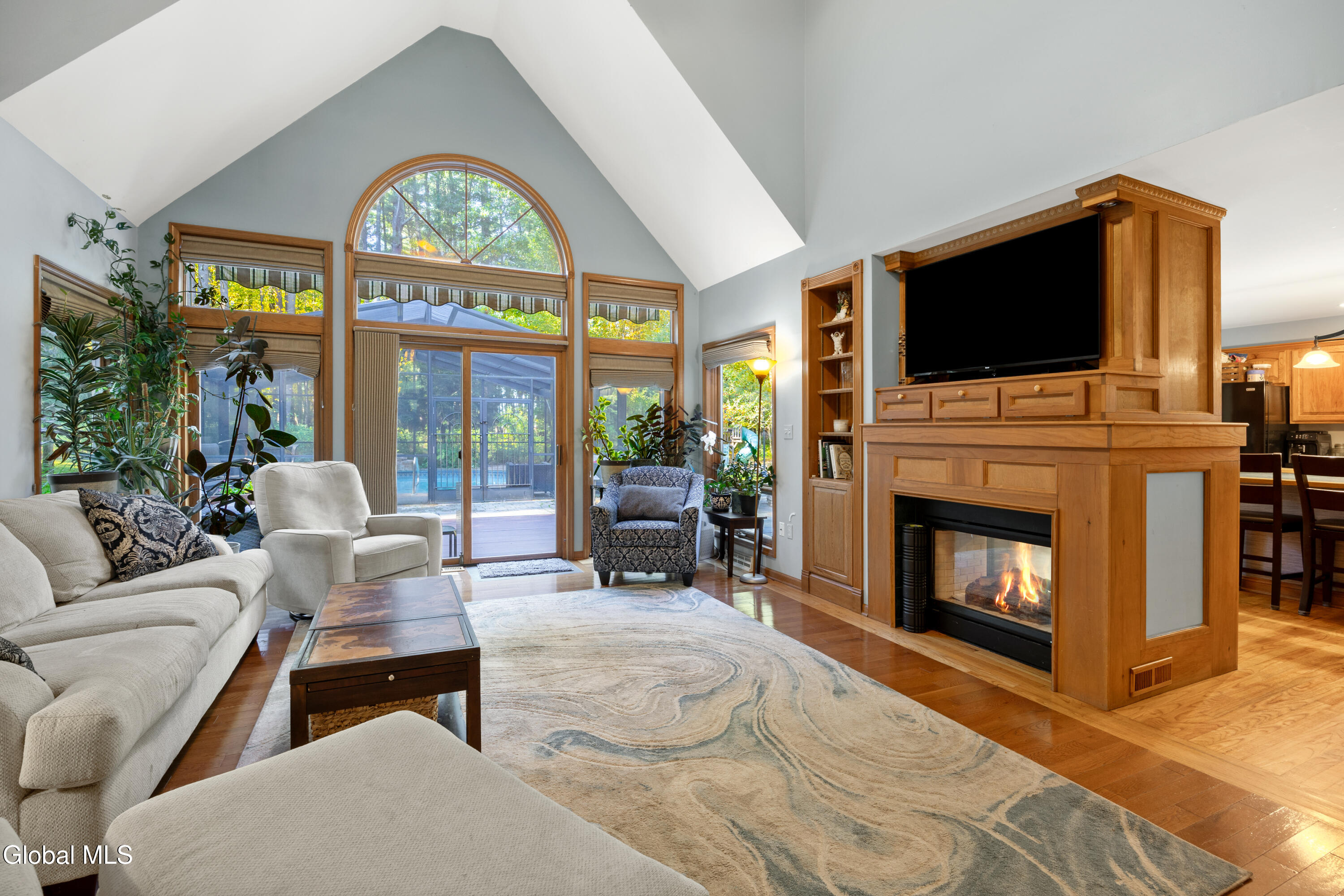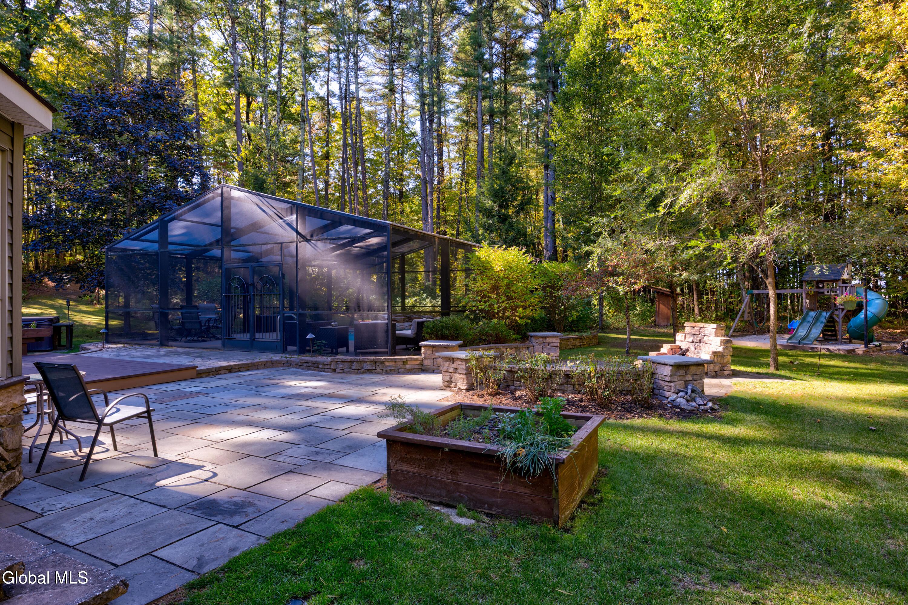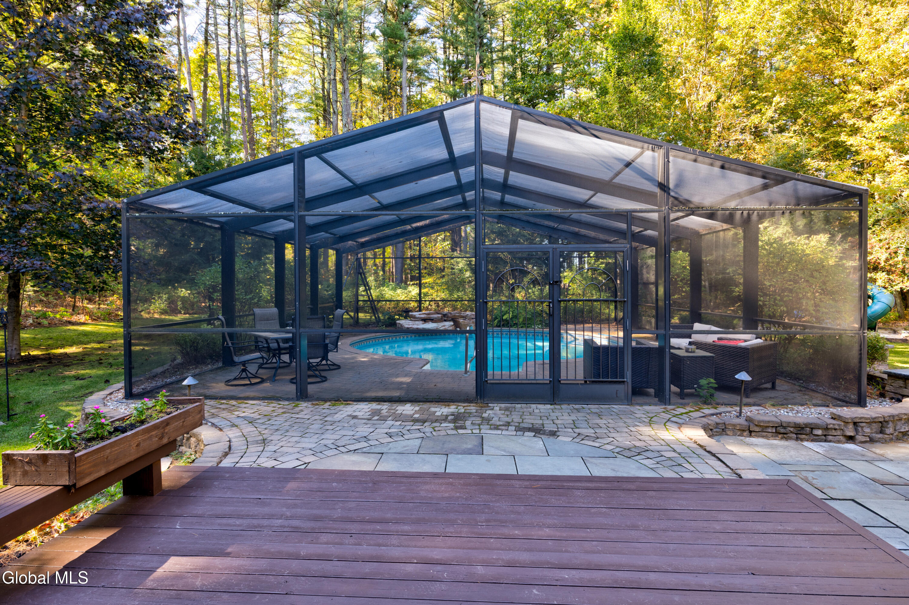 **Fall in Love with This Former Showcase of Homes Beauty** This stunning home offers an exceptional blend of thoughtful design, modern upgrades, and comfortable living—all nestled in the desirable Bog Meadow neighborhood. From the first-floor primary suite featuring dual walk-in closets and a luxurious custom walk-in shower, to the cozy double-sided gas fireplace perfect for chilly evenings, every detail has been carefully crafted. The spacious eat-in kitchen is ideal for both everyday meals and entertaining, complete with a center island and a charming breakfast nook. During this year's track season, the home generated $16,000 in Airbnb income—showcasing its appeal as both a primary residence and an investment opportunity. Recent updates over the past five years include a new furnace, central air conditioning, washer/dryer, dishwasher, and a newly paved driveway. Step outside to your private backyard oasis featuring an in-ground pool with a screened lanai and tranquil waterfall. The professionally landscaped grounds are enhanced by custom stone walls, patios, and extensive outdoor lighting, programmable or set from dusk to dawn. Additional features include: * Carport for extra covered parking * Advanced in-ground irrigation system controllable via smartphone (waters lawn, gardens, roses, and even tops off the pool) * Electric dog fence system for your dog * Radon mitigation system installed * Private well with reverse osmosis system for clean drinking water * Partially finished basement perfect for a rec room, plus ample storage space Located in a quiet one-mile loop with no through traffic, Bog Meadow also offers easy access to a public park just across the road. Enjoy the peace of a tucked-away neighborhood with the convenience of being minutes from Route 50 shopping, dining, and quick access to I-87. Super private 2 acre lot is a bonus!