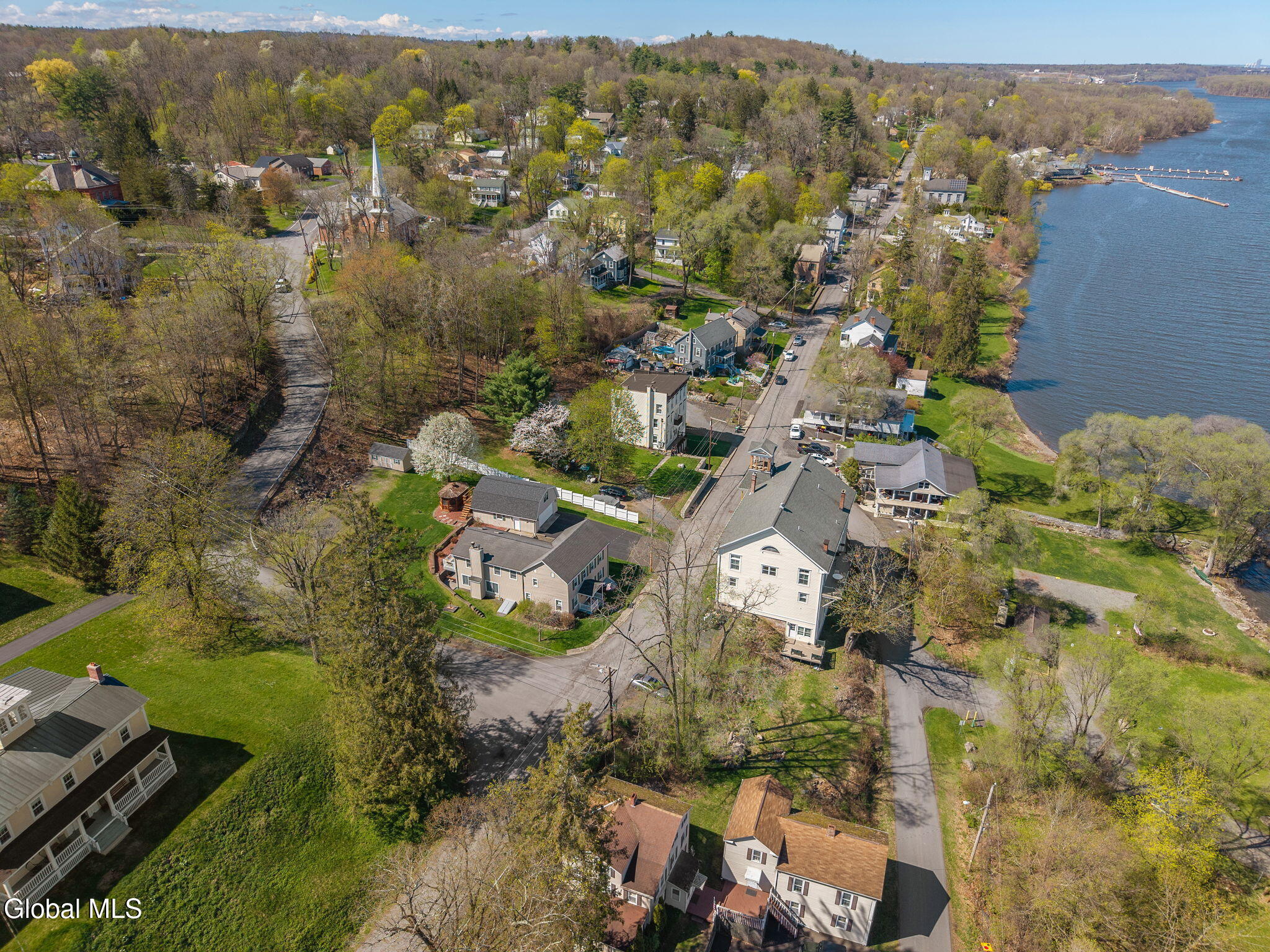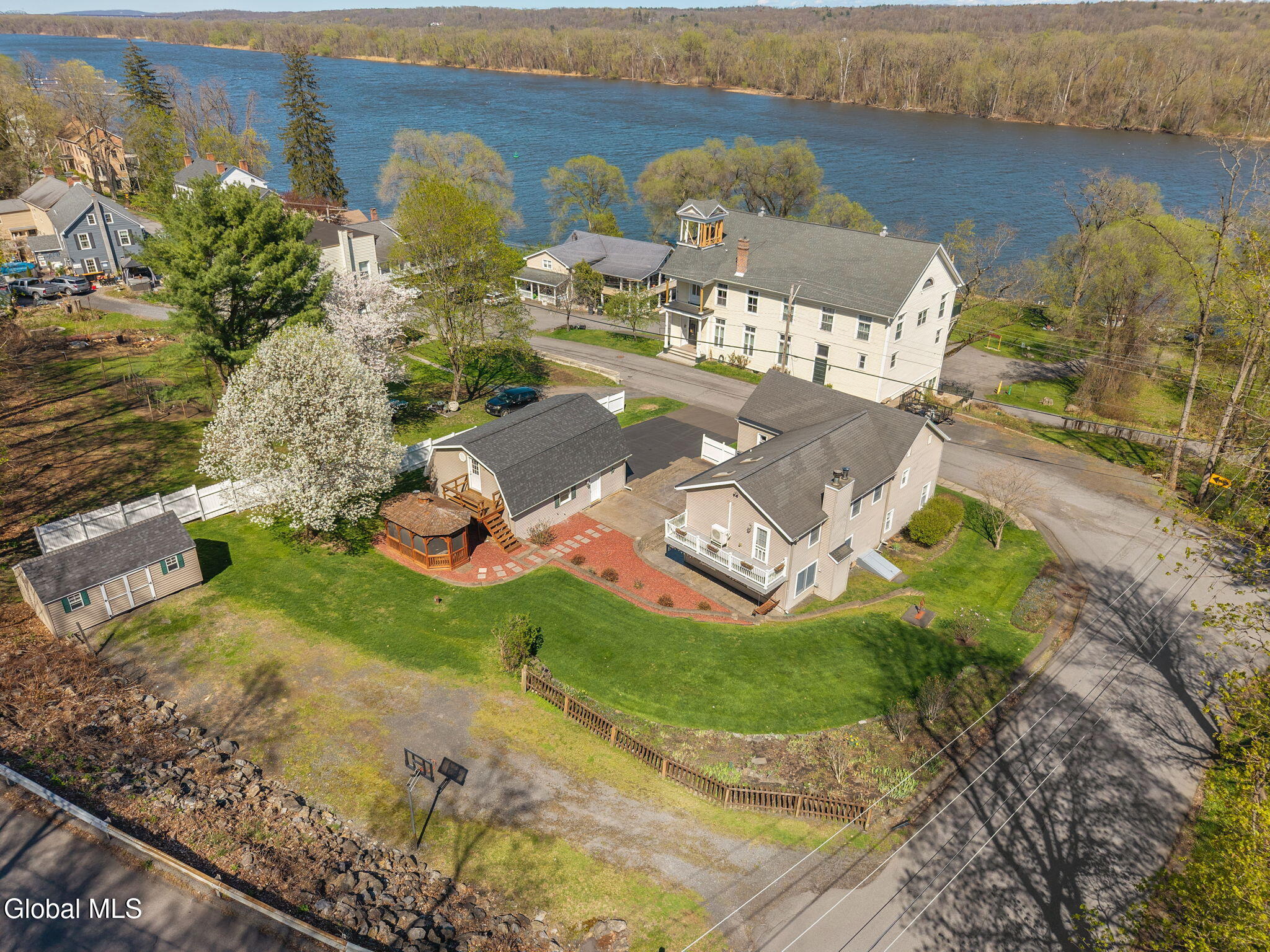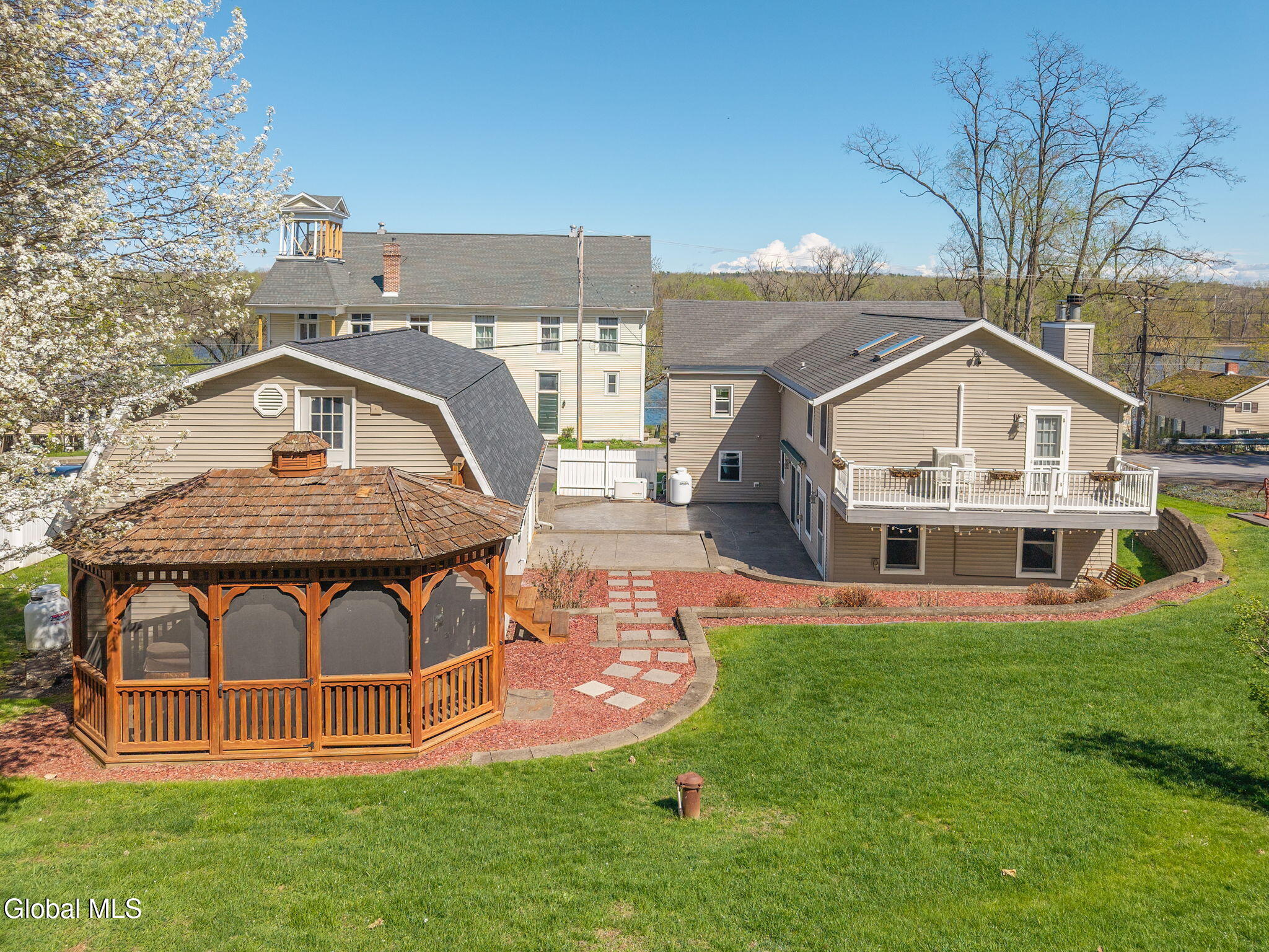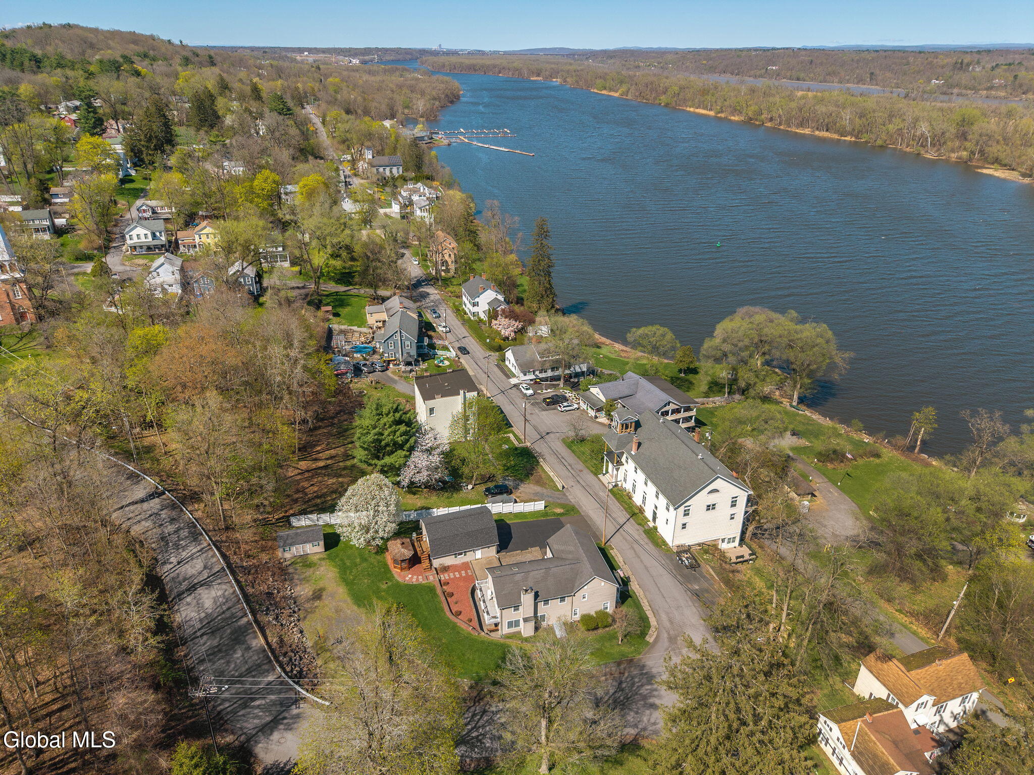 Totally renovated while preserving its original charm and character, this stunning home is nestled in the Hamlet of New Baltimore and offers beautiful Hudson River views. Originally built in 1864 and thoughtfully expanded with an addition in 2003, this spacious home seamlessly blends historic appeal with modern convenience. The custom designed kitchen is a true centerpiece, perfect for entertaining, featuring Cambrian quartz countertops, large center island, custom cabinetry, butcher block accents and a convection gas stove. The cozy living room showcases rich cherry hardwood floors and built-in bookcases. This room can easily serve as a formal dining room if desired. Step into the expansive family room with wood-burning fireplace insert, tile flooring and sliding glass doors leading to a patio area. Off the family room you will find a full bath with tiled flooring which completes the main level. The second floor offers 3 bedrooms and a full bath with tiled flooring. The private primary suite is tucked away in the rear of the home and features skylights, a vaulted ceiling, walk-in closet and a balcony which is perfect for relaxing with your morning coffee while enjoying peaceful surroundings. The primary bath includes a jacuzzi tub, walk-in shower and double sink vanity. Once outside enjoy the numerous terraced stone walls, patios and gardens with lighting, along with a gazebo, hot tub and storage shed. A two car detached heated garage with second floor storage provides ample space for vehicles and hobbies. This property includes a driven well along with two supplemental dug wells for watering. Conveniently located near parks, restaurants and marinas and just 25 minutes to Albany and 10 minutes to Coxsackie. Close to NYS Thruway so this home offers the perfect balance of tranquility and accessibility.