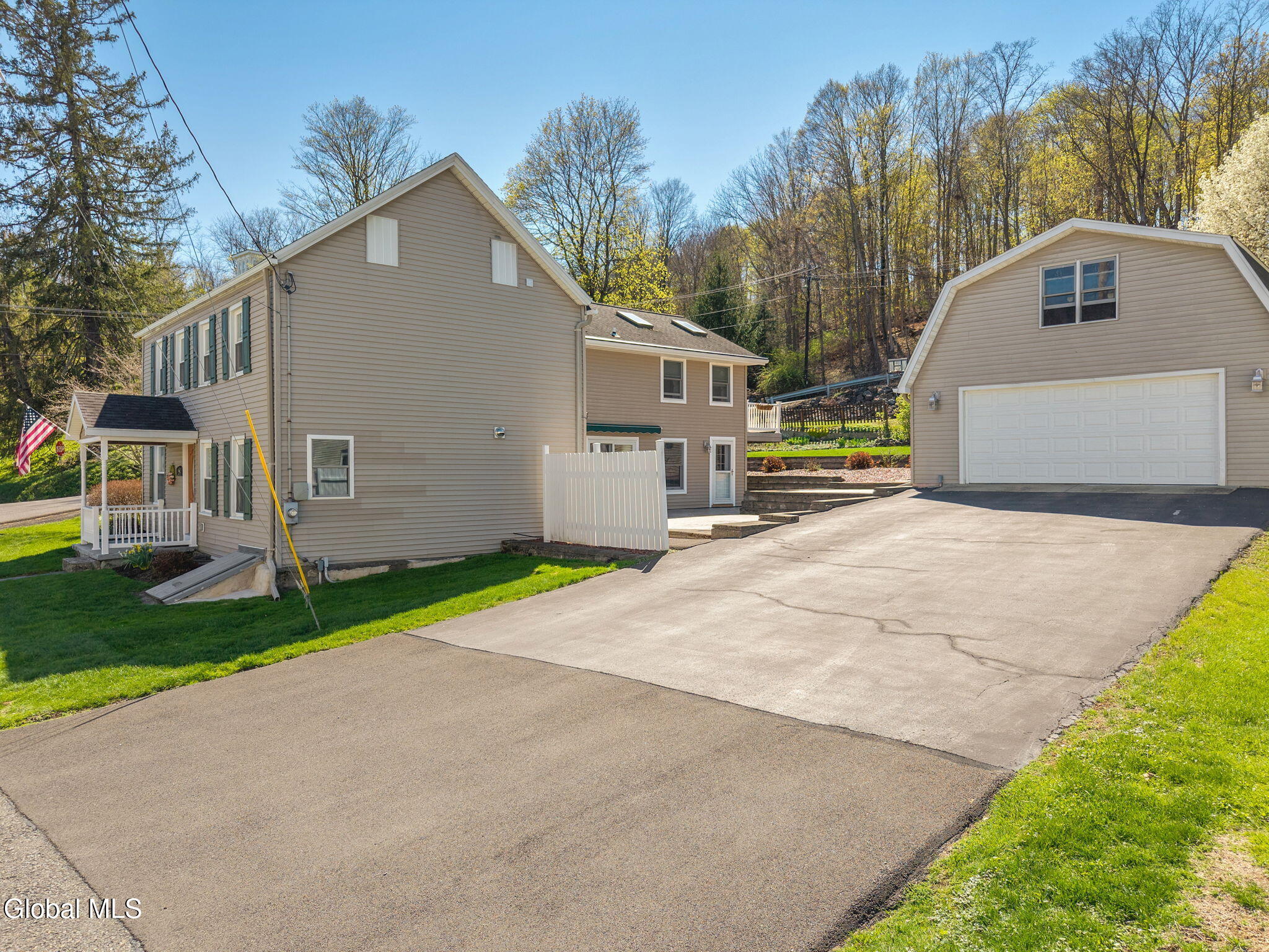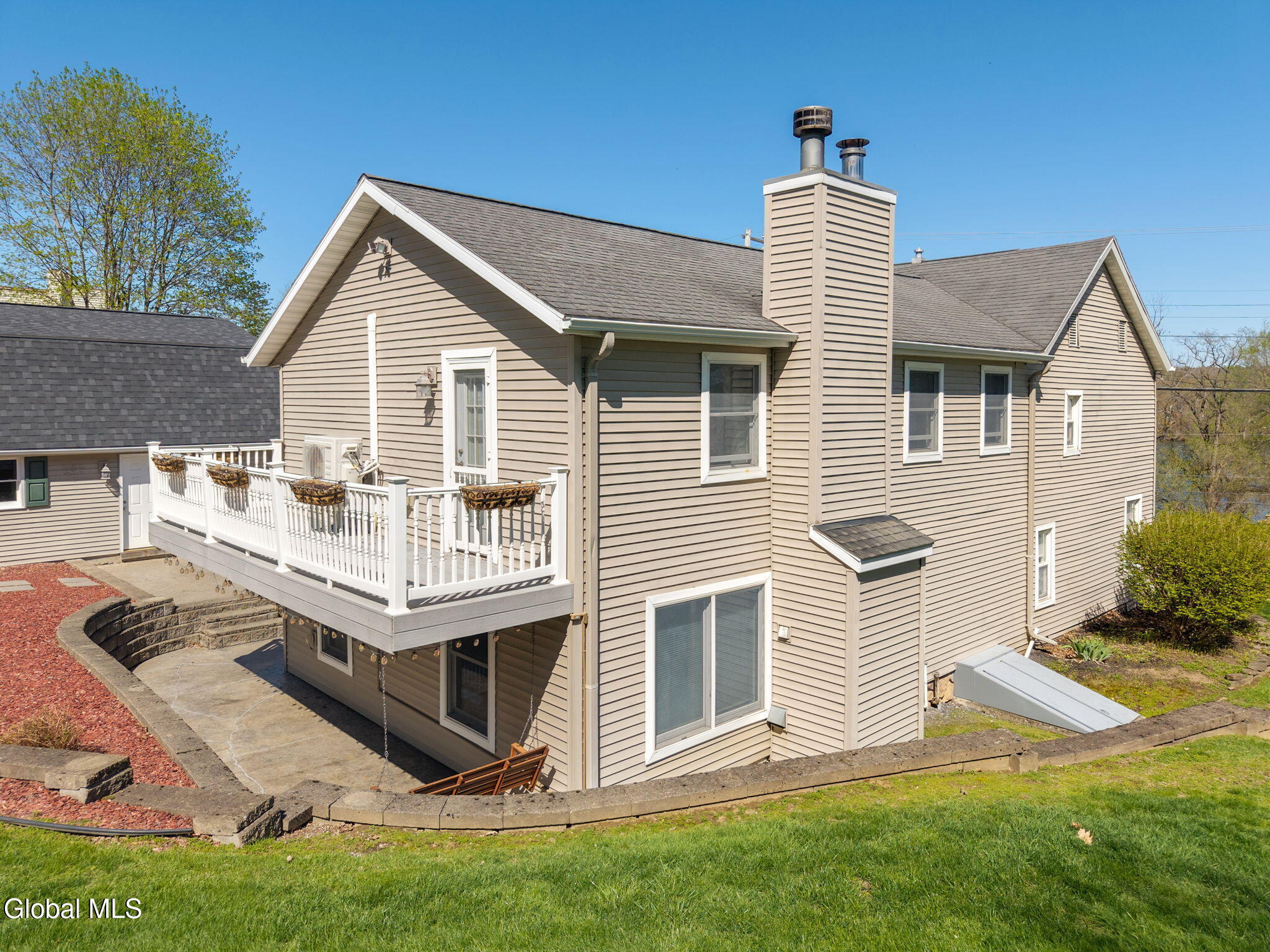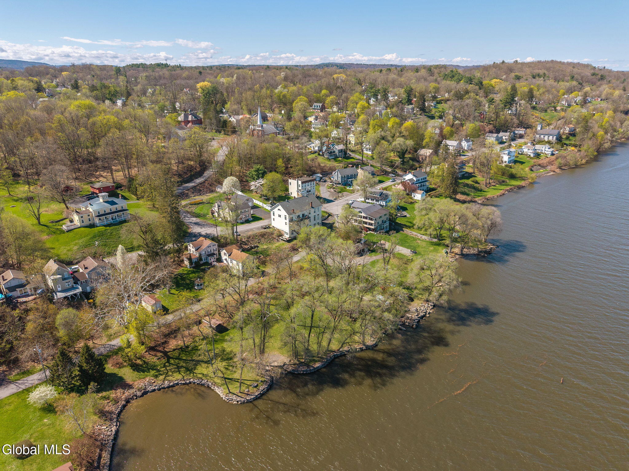 Totally renovated while preserving its original charm and character, this stunning home is nestled in the Hamlet of New Baltimore and offers beautiful Hudson River views. Originally built in 1864 and thoughtfully expanded with an addition in 2003, this spacious home seamlessly blends historic appeal with modern convenience. The custom designed kitchen is a true centerpiece, perfect for entertaining, featuring Cambrian quartz countertops, large center island, custom cabinetry, butcher block accents and a convection gas stove. The cozy living room showcases rich cherry hardwood floors and built-in bookcases. This room can easily serve as a formal dining room if desired. Step into the expansive family room with wood-burning fireplace insert, tile flooring and sliding glass doors leading to a patio area. Off the family room you will find a full bath with tiled flooring which completes the main level. The second floor offers 3 bedrooms and a full bath with tiled flooring. The private primary suite is tucked away in the rear of the home and features skylights, a vaulted ceiling, walk-in closet and a balcony which is perfect for relaxing with your morning coffee while enjoying peaceful surroundings. The primary bath includes a jacuzzi tub, walk-in shower and double sink vanity. Once outside enjoy the numerous terraced stone walls, patios and gardens with lighting, along with a gazebo, hot tub and storage shed. A two car detached heated garage with second floor storage provides ample space for vehicles and hobbies. This property includes a driven well along with two supplemental dug wells for watering. Conveniently located near parks, restaurants and marinas and just 25 minutes to Albany and 10 minutes to Coxsackie. Close to NYS Thruway so this home offers the perfect balance of tranquility and accessibility.