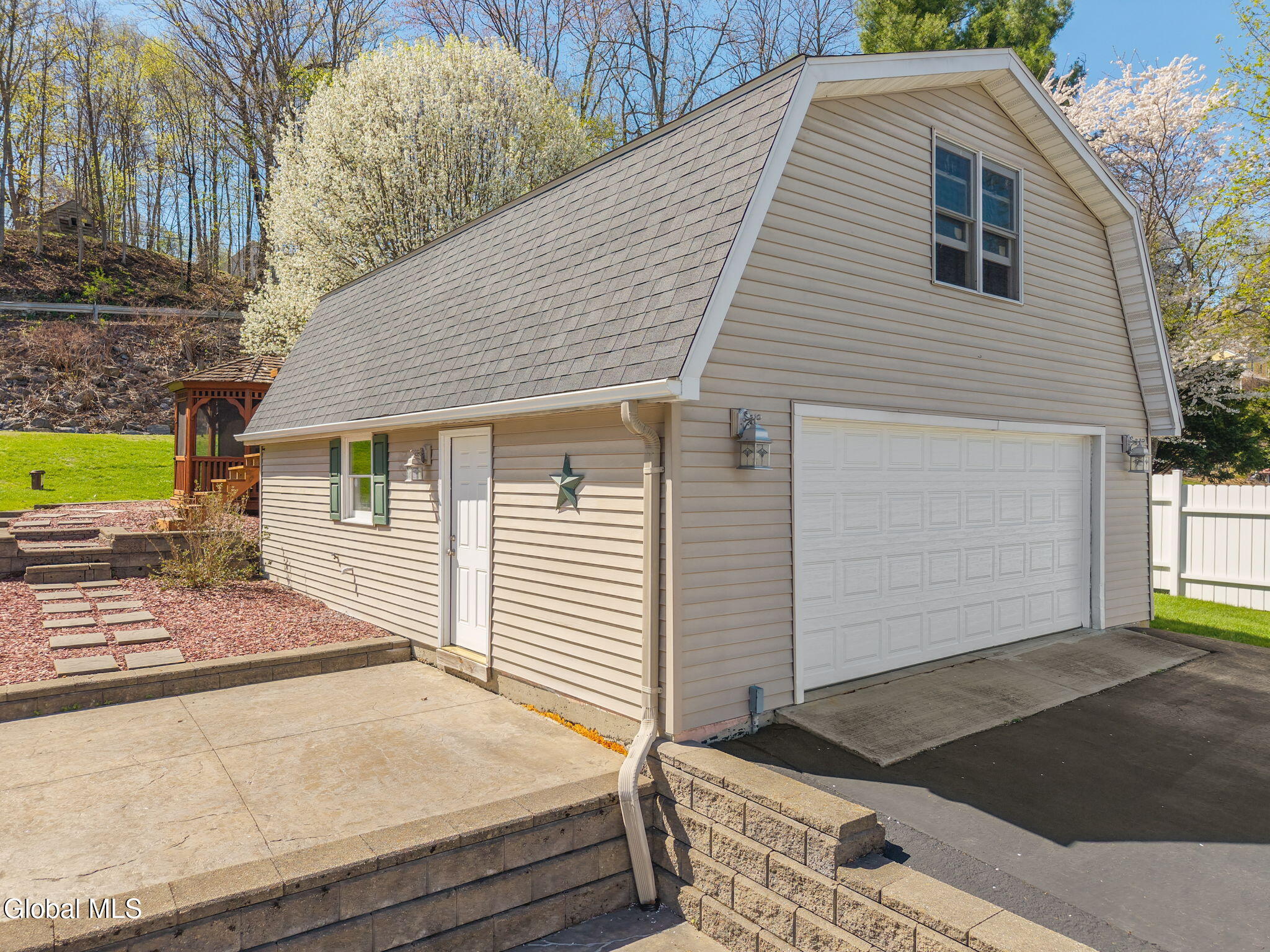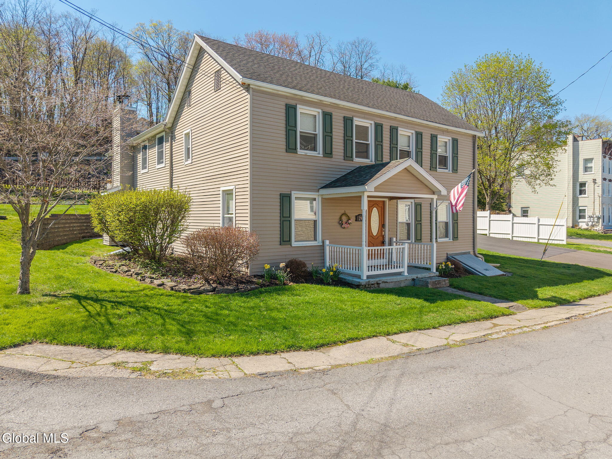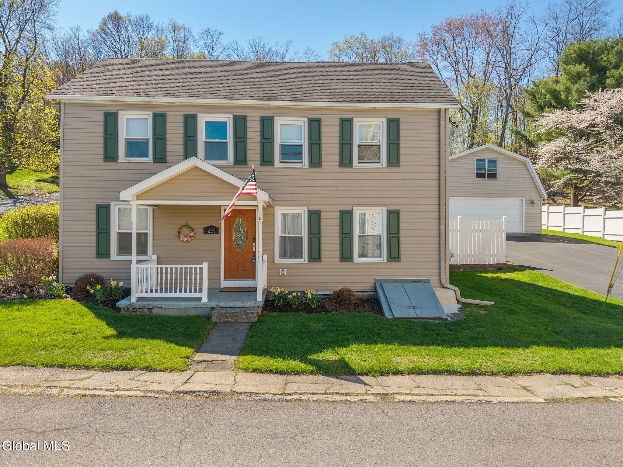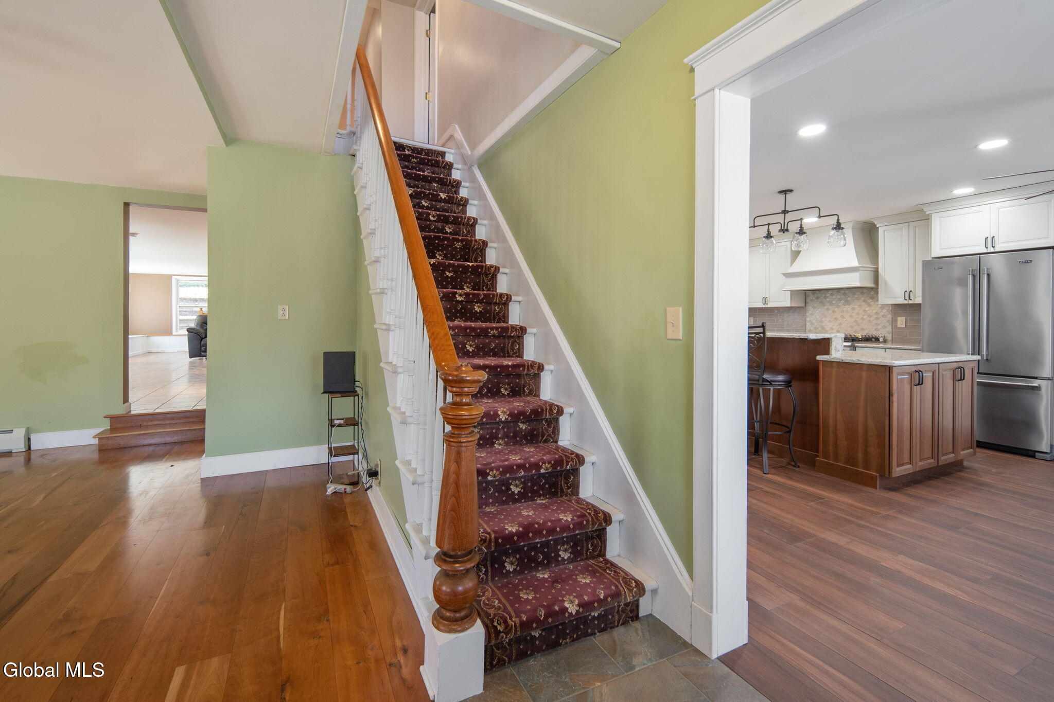 Totally renovated while preserving its original charm and character, this stunning home is nestled in the Hamlet of New Baltimore and offers beautiful Hudson River views. Originally built in 1864 and thoughtfully expanded with an addition in 2003, this spacious home seamlessly blends historic appeal with modern convenience. The custom designed kitchen is a true centerpiece, perfect for entertaining, featuring Cambrian quartz countertops, large center island, custom cabinetry, butcher block accents and a convection gas stove. The cozy living room showcases rich cherry hardwood floors and built-in bookcases. This room can easily serve as a formal dining room if desired. Step into the expansive family room with wood-burning fireplace insert, tile flooring and sliding glass doors leading to a patio area. Off the family room you will find a full bath with tiled flooring which completes the main level. The second floor offers 3 bedrooms and a full bath with tiled flooring. The private primary suite is tucked away in the rear of the home and features skylights, a vaulted ceiling, walk-in closet and a balcony which is perfect for relaxing with your morning coffee while enjoying peaceful surroundings. The primary bath includes a jacuzzi tub, walk-in shower and double sink vanity. Once outside enjoy the numerous terraced stone walls, patios and gardens with lighting, along with a gazebo, hot tub and storage shed. A two car detached heated garage with second floor storage provides ample space for vehicles and hobbies. This property includes a driven well along with two supplemental dug wells for watering. Conveniently located near parks, restaurants and marinas and just 25 minutes to Albany and 10 minutes to Coxsackie. Close to NYS Thruway so this home offers the perfect balance of tranquility and accessibility.