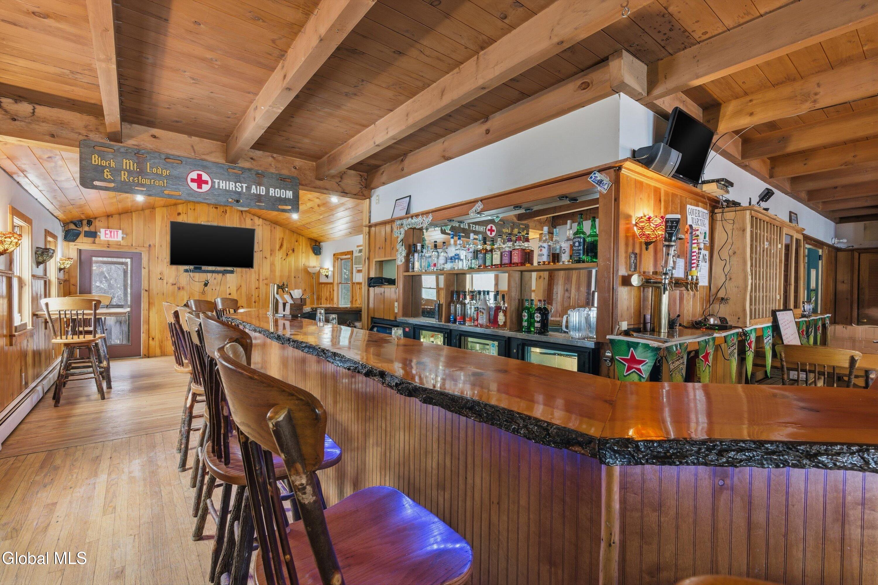 Welcome to one of North Creek's most iconic destinations--the legendary Black Mountain Lodge & Restaurant, paired with a fully operating 25-unit motel, perfectly positioned just minutes from Gore Mountain Ski Resort and the heart of Adirondack adventure. Modeled after a classic New England pub, the restaurant is a longtime favorite of locals, skiers, and seasonal visitors alike. Inside, you'll find a full-service bar, seating for 58 guests, and a striking stone fireplace that anchors the space and creates an unforgettable lodge atmosphere. With strong community roots and proven appeal, this dining destination is poised to continue thriving. The adjoining motel is currently open and in full operation, offering 25 units, including efficiency-style accommodations--ideal for weekend travelers, ski traffic, and year-round tourism, plus a 3 bedroom owner's suite/apartment. Recent upgrades include a new LP gas heating system along with numerous additional improvements, ensuring efficiency and comfort for both owners and guests. This is a true turnkey hospitality operation with multiple income streams, established reputation, and exceptional location at the doorstep of one of New York's premier four-season resorts. Pub & Restaurant. Motel. Mountain traffic. Proven performance. An outstanding opportunity to own a destination property in the heart of the Adirondacks--ready for its next successful chapter. Easy to show by appointment. Seller financing available.