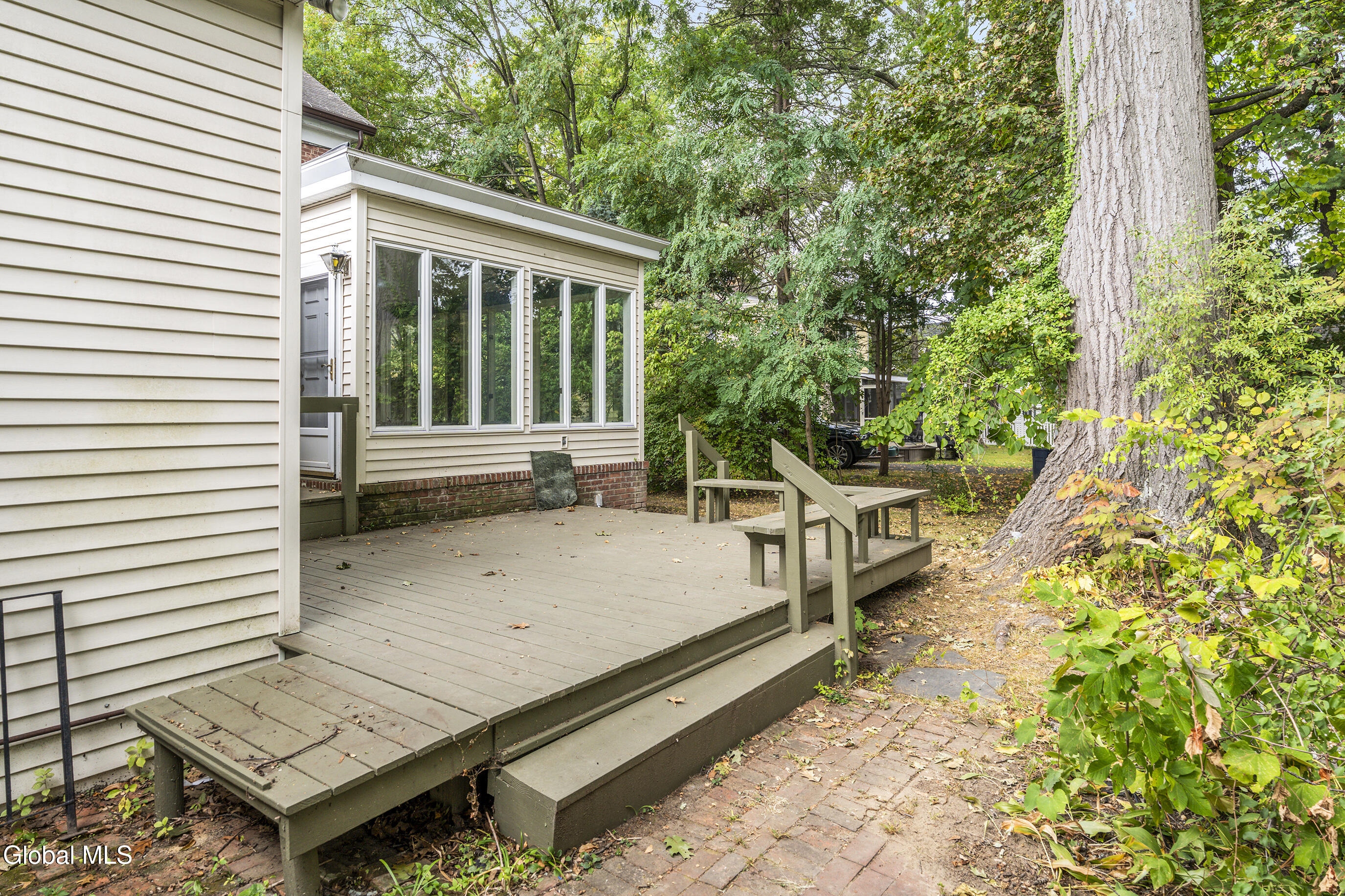 Welcome to 3 Groesbeck place, a once-in-a-generation offering in the heart of Delmar! This stately Federal-style brick home spans approx. 3,000 sq. ft. with a gracious entry, sweeping staircase, hardwood floors, and sun-filled formal living and dining rooms. The kitchen highlights an exposed beam ceiling and brick floors, blending warmth and character. Also enjoy a four-season room to enjoy year round. Upstairs are four bedrooms, one of which a primary suite, and a charming library/office. while the lower level offers a wet bar, game room, office and second laundry. An 850 sq. ft. rear addition—formerly a doctor's office—provides flexible space with both a private entry and additional access through the main home, ideal for an in-law suite, guest quarters, or home business. Walkable to shops, dining, schools, and steps from the Rail Trail. Don't miss viewing this timeless property!