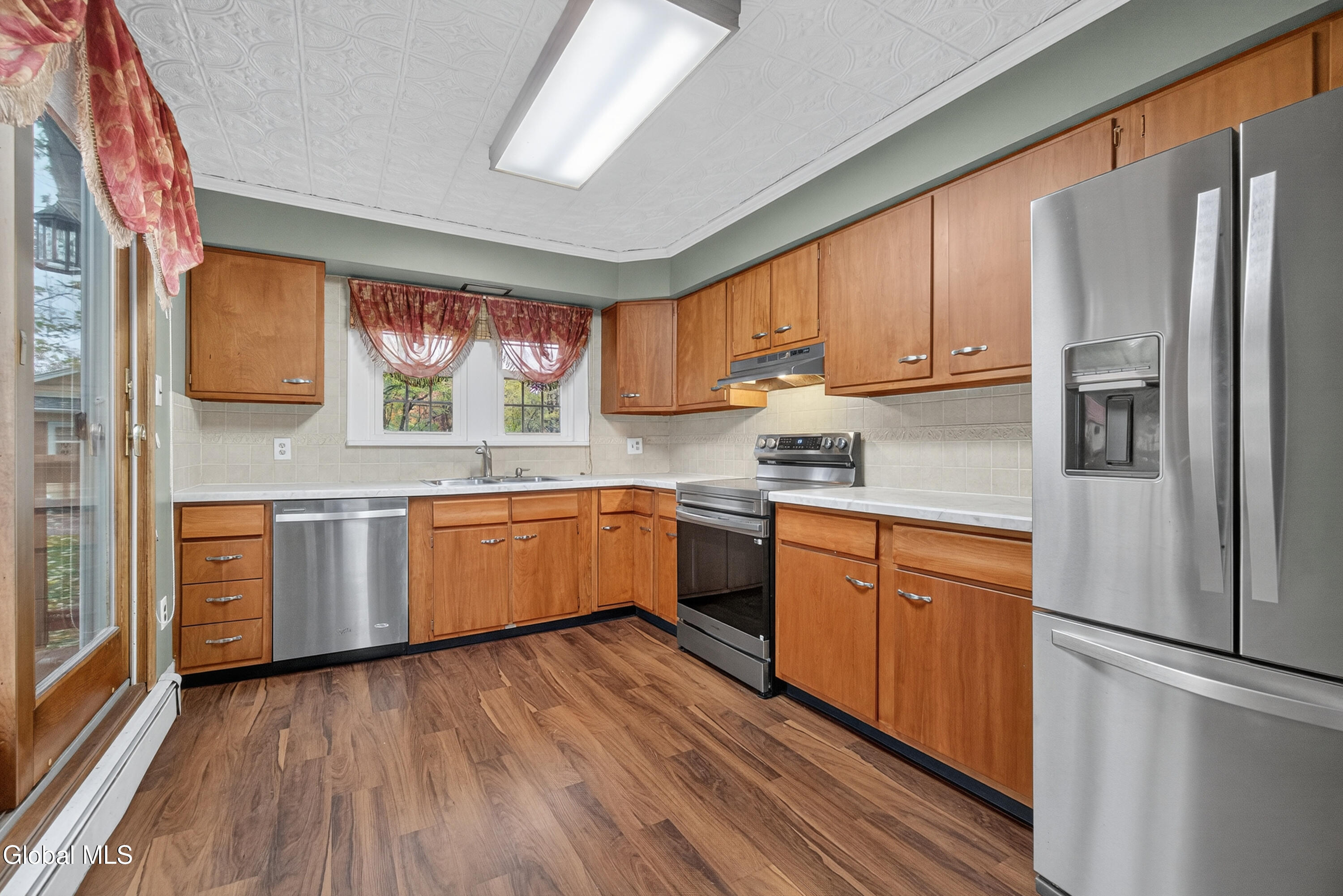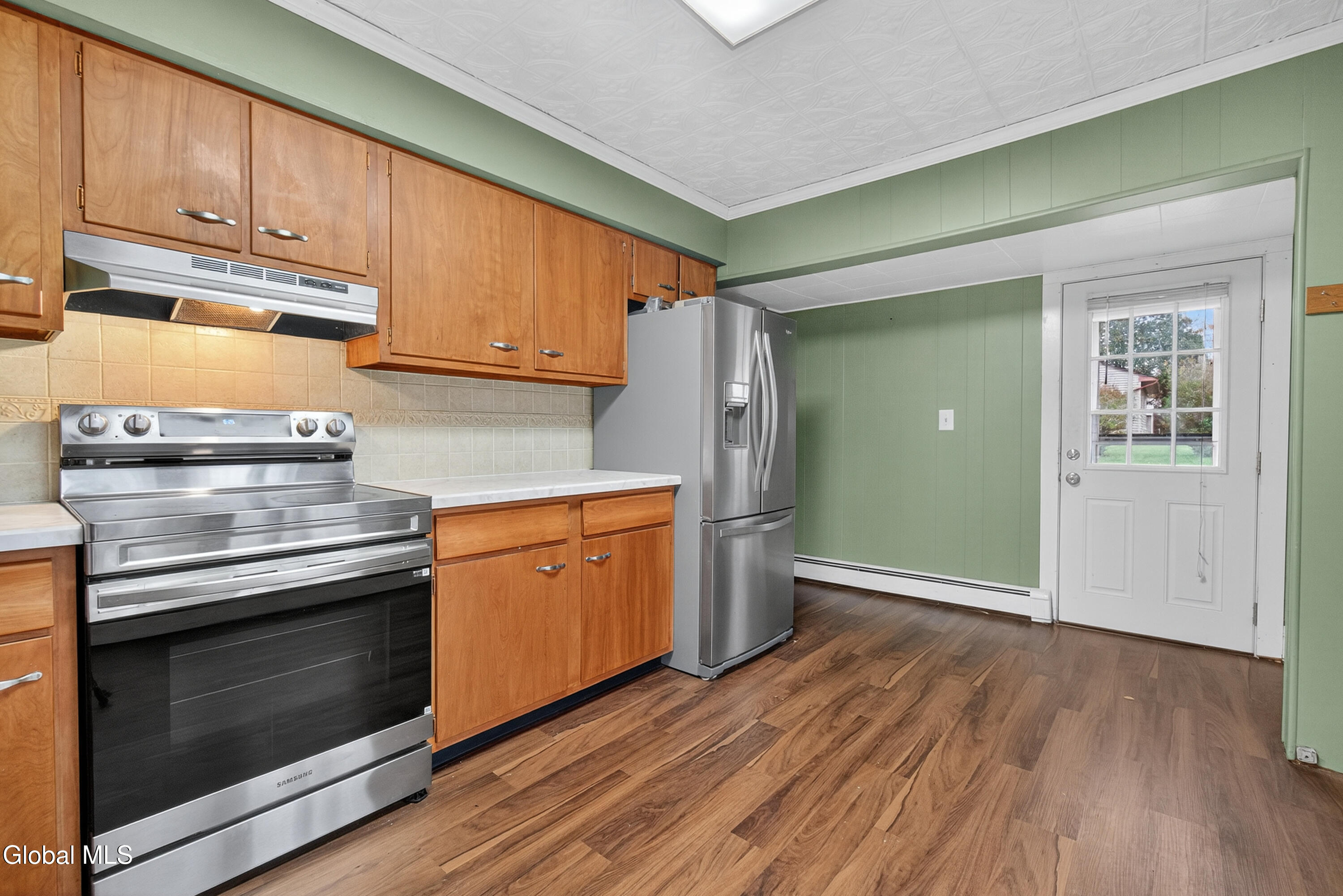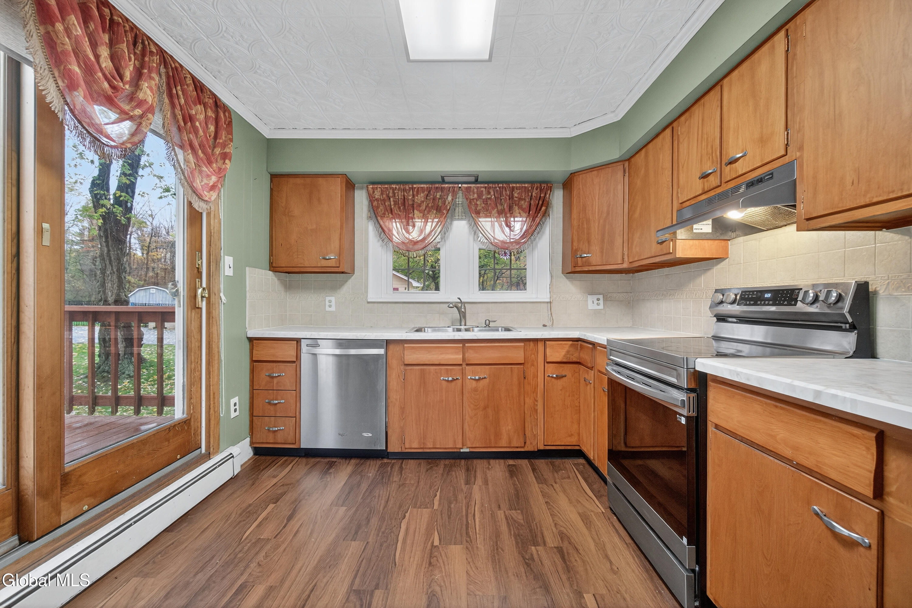 Charming 1920 Traditional style home on the Empire State Rail Trail - East Greenbush Schools! Welcome home to this 4-bedroom, 1.5-bath home full of character, located in the highly sought-after East Greenbush School District (Genet Elementary). This home offers the perfect blend of classic charm and modern updates, with hardwood and laminate floors, a brand-new full bathroom with tiled shower and floor, and newer kitchen appliances ready for your next meal or gathering. Enjoy relaxing on the rocking chair front porch or entertaining on the large back deck overlooking the spacious backyard that borders the scenic Empire State Rail Trail. Additional features include brand new washer/dryer, gutters with leaf guards, a 7-year-old natural gas furnace, and a 2-year-old natural gas hot water heater for peace of mind. The home is livable but in need of TLC, and the garage requires attention, making it a great opportunity for someone looking to build equity and make it their own. Sold as is. Inspections for informational purposes only. This charming home has so much potential and an unbeatable location—come see it today and imagine the possibilities!
