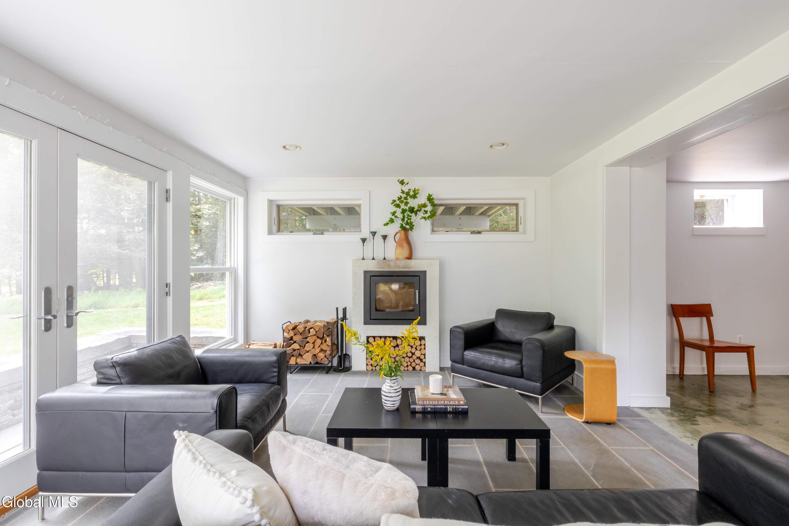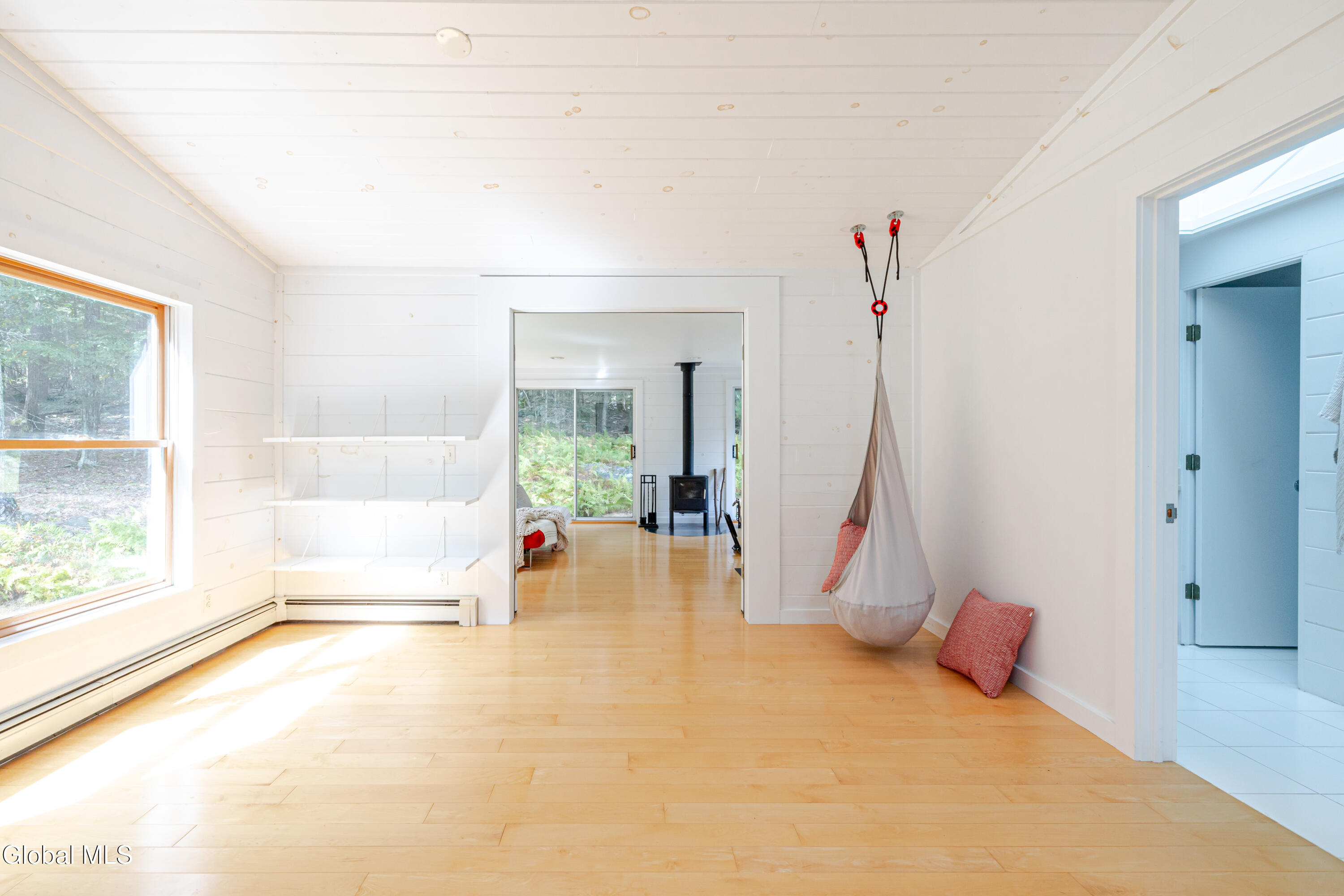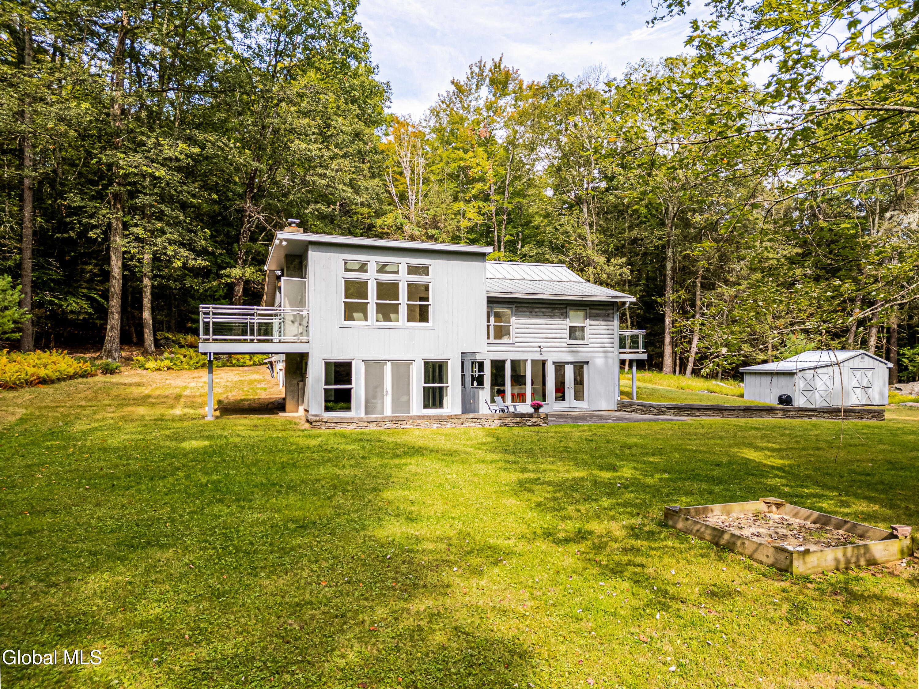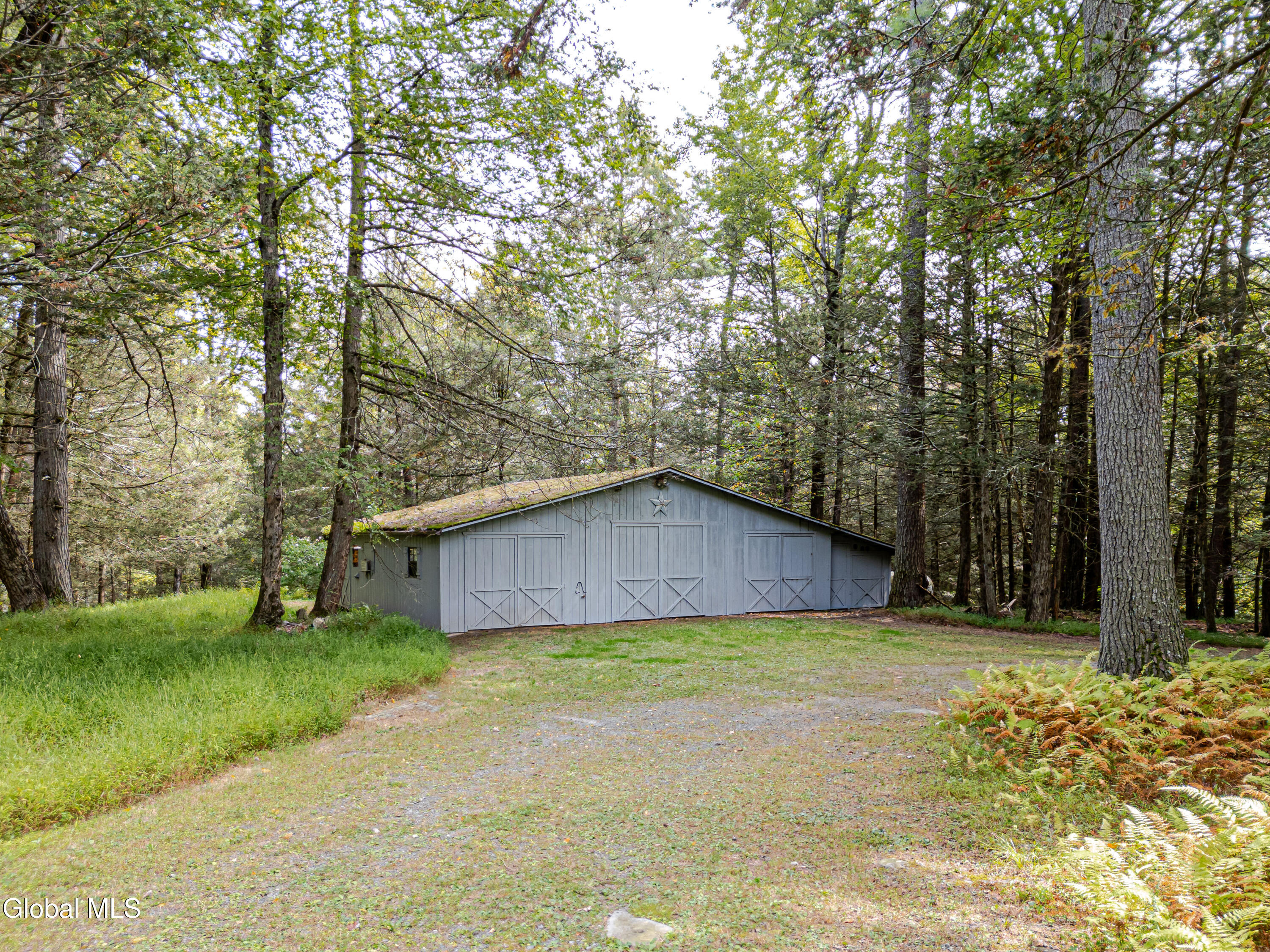 Welcome to Fawn House, a modern rustic retreat in evolving Accord, celebrated for its rural tranquility and sophisticated amenities. Sitting quietly on over 28 acres across two parcels, this property offers privacy, peace, and an effortless connection to nature. Walls of glass and a Scandinavian-inspired design fill the 3,055-square-foot residence with natural light, creating a warm and welcoming atmosphere. The first floor is designed for gathering, with an open kitchen, dining, and living area at its center. A den with a wood stove provides a cozy retreat in cooler months, while a full bath, laundry room, and storage room add comfort and convenience. Upstairs, a vaulted great room opens to a sunroom with another wood stove, perfect for watching the seasons unfold. The spacious primary suite is complemented by two additional bedrooms, a study, and two full baths, balancing private space with areas for work or guests. Decks and bluestone patios extend the living space outdoors, ideal for entertaining or unwinding among the quiet beauty of the landscape. The property consists of two parcels: The home sits on 4.89 acres with a shed and an oversized garage that offers abundant storage and flexible possibilities. The adjoining 23.5-acre parcel remains undeveloped, preserving a serene backdrop while offering potential for future expansion or long-term conservation. Though tucked away, the location is minutes from farm-to-table favorites like Westwind Orchard, Accord Market, Saunderskill Farm and Ravenwood, along with the member's club, spa, and restaurant at Inness. The nearby towns of Stone Ridge, High Falls, and New Paltz offer additional shops and dining, while Minnewaska State Park and Mohonk Preserve are close at hand for endless outdoor adventure. This rare Hudson Valley offering combines modern design, expansive acreage, and a prime location, making it an exceptional retreat or full-time residence.