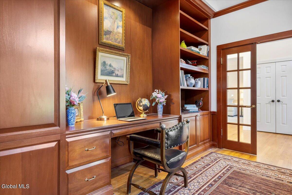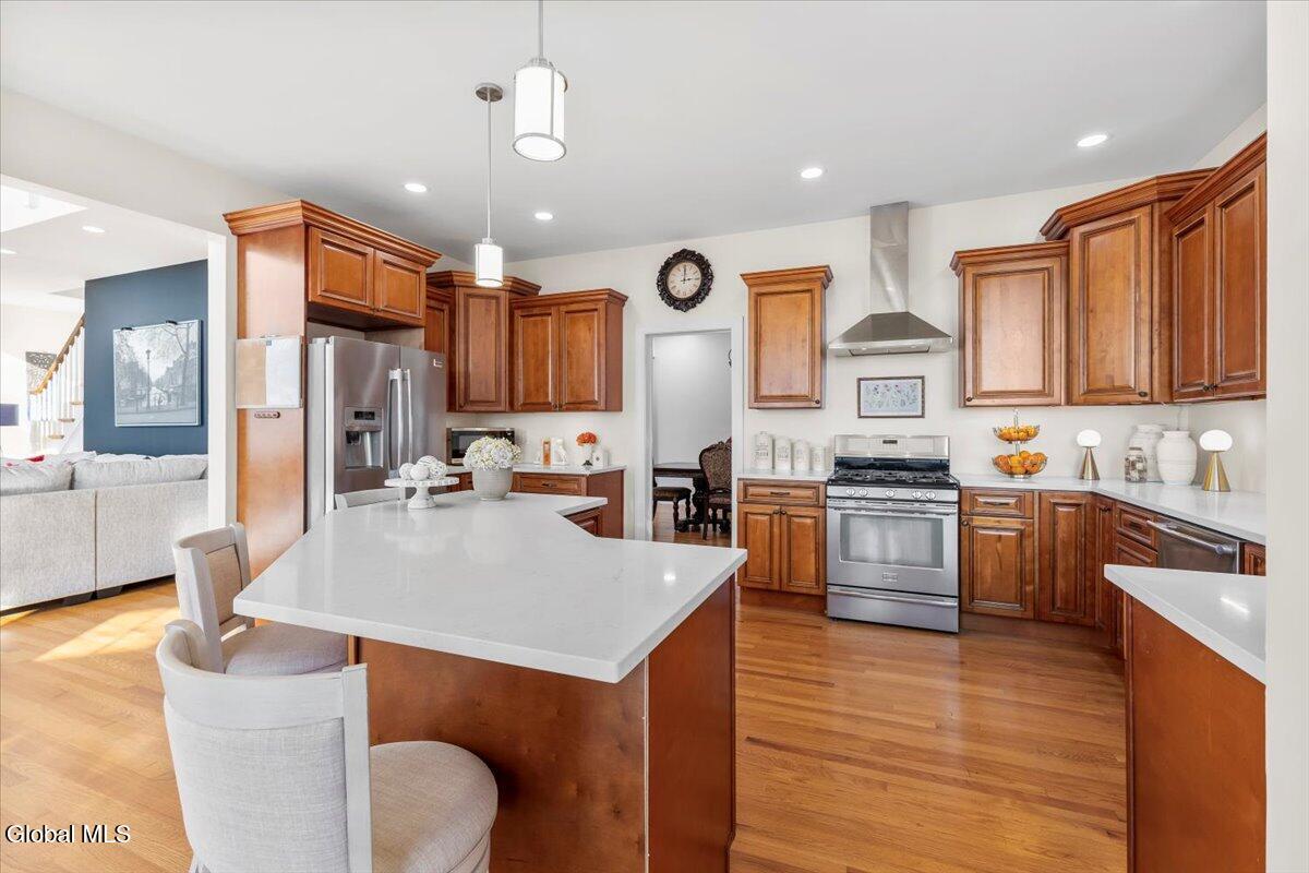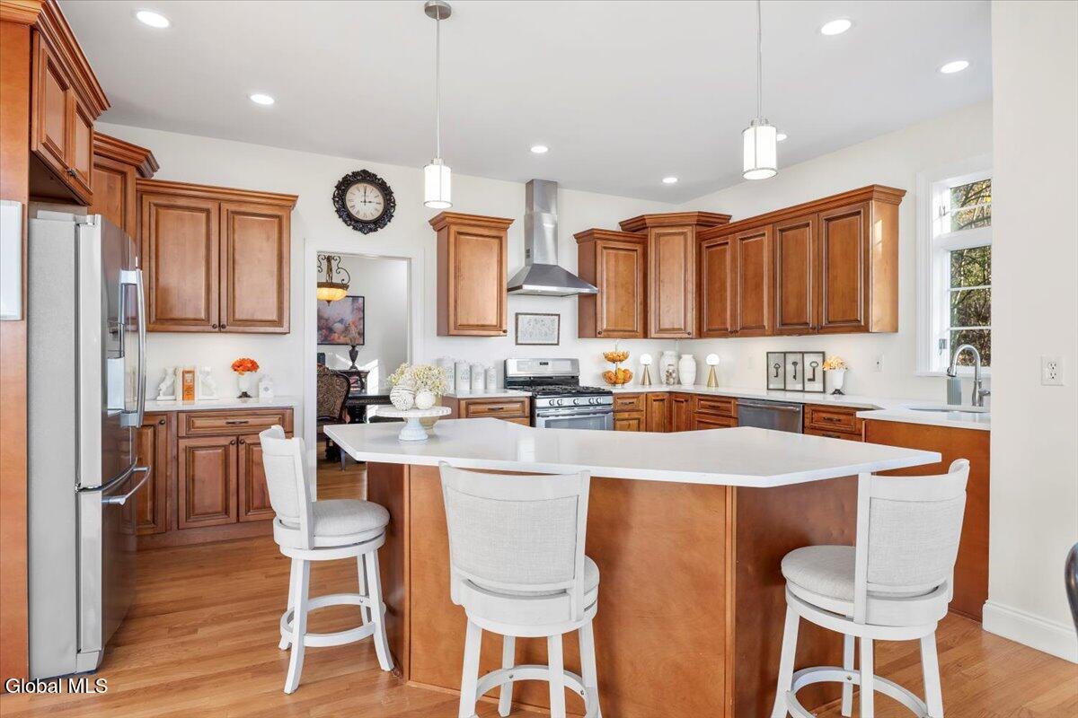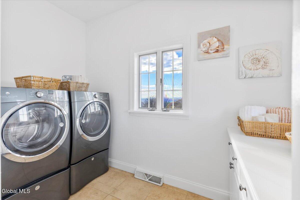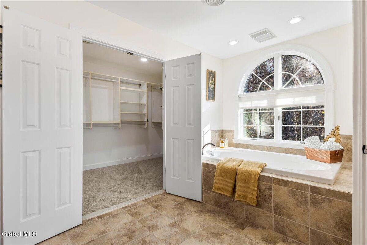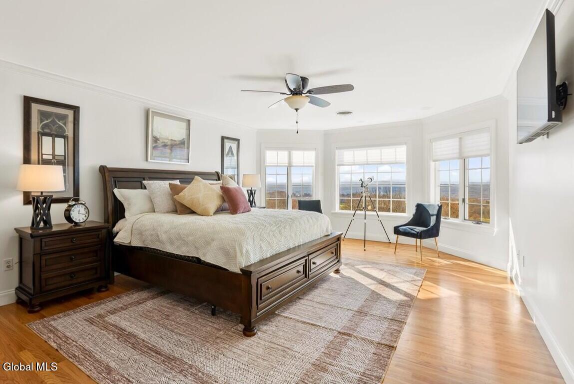 Look at me now! A major makeover—ready for entertaining and family celebrations. From sunrise to sundown, expansive windows keep the Hudson River, Frear Park Golf Course, and Downtown Troy in view. Step into 30 Arabia through a welcoming foyer to a formal living room and a private office lined with full-wall built-ins for a polished, library feel. Continue to the formal dining room, then the home opens to a soaring two-story great room with a stacked-stone fireplace and French doors to the wraparound deck. The view-filled eat-in kitchen shines with new countertops, and a first-floor laundry sits nearby. Two stairways—from the foyer and the great room—lead up to five bedrooms and three full baths: the primary suite steals the show with picture windows, a soaking tub, walk-in closet, and private bath; a second view bedroom enjoys its own smaller ensuite; the remaining bedrooms share a classic Jack-and-Jill. A finished walkout lower level adds bright, flexible space. Updates include a new roof, whole-home paint (with an epoxy-finished garage floor), all-LED lighting, and new carpet upstairs. Outside, improved drainage, refreshed landscaping, and an area prepped for a future infinity-style pool complete. 30 Stone Arabia, perched above it all, with a never-ending horizon. OPEN HOUSE: 11/23/25 11:00-1:00