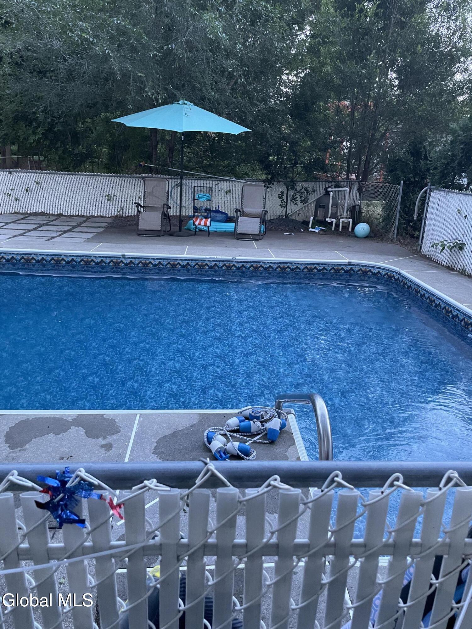 Beautifully updated 3-bedroom, 2-bath ranch featuring a primary suite over the garage and a spacious family room with a vaulted ceiling. Enjoy a large fenced yard with an inground pool, perfect for summer entertaining. Recent improvements include a new furnace and AC (2020), new vinyl flooring, an updated kitchen with new counters and appliances, and a new pool liner, pump, and sand filter conversion. Sale is contingent on the seller closing on new home currently under contract.