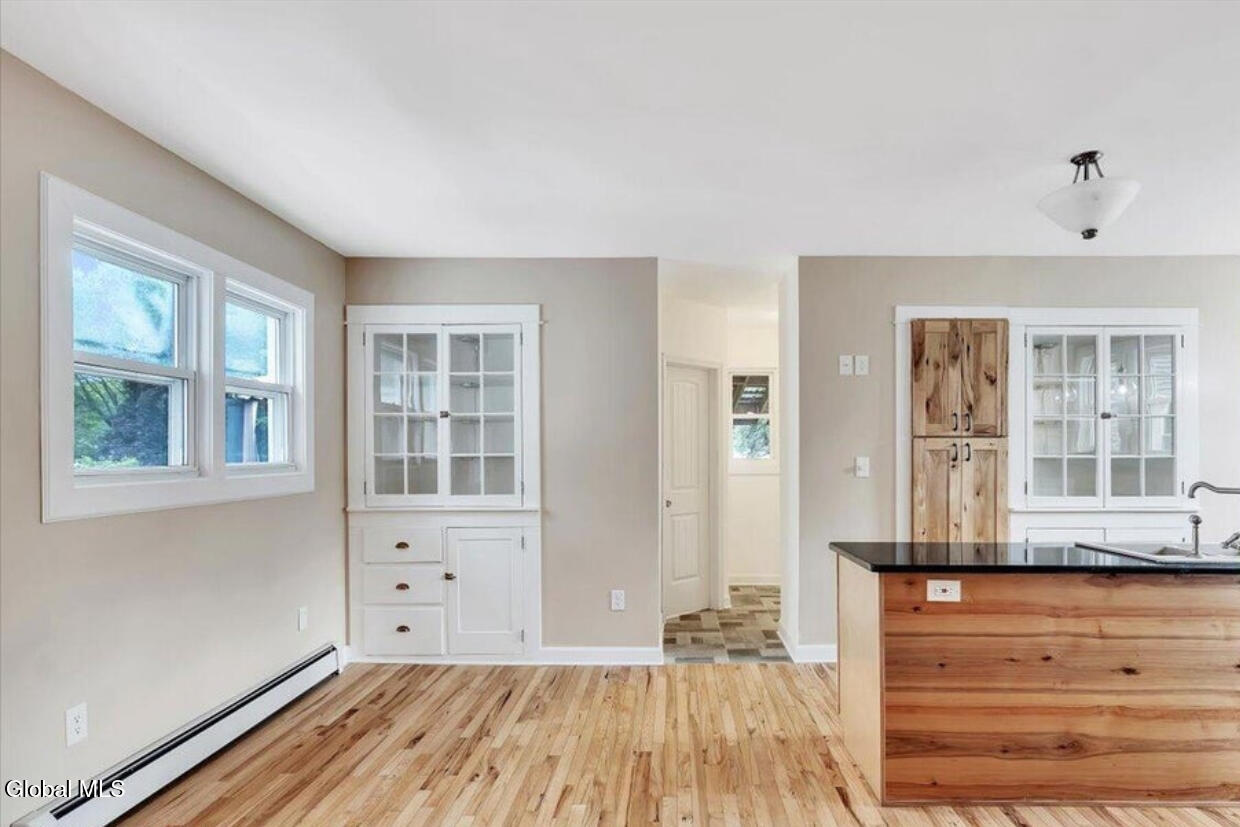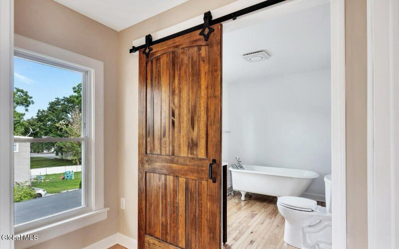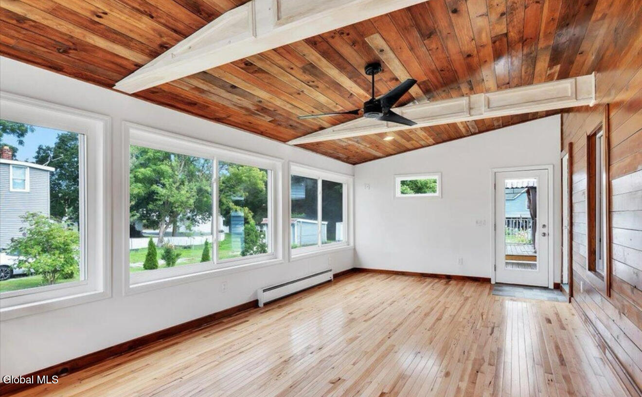 Don't miss out on this beautifully renovated home in the village of Corinth. Home was completely renovated from the studs to the roof in 2024. This home features a double lot, with a single car garage. This kitchen has been completely updated including soft close drawers and granite countertops along with Stainless Steel appliances. Gas stove is new. Gorgeous sunroom which is currently being used as a bedroom. There is a first floor bedroom and full bathroom with a walk in shower. Gorgeous Hickory floors throughout the entire home add lots of charm. New wiring, plumbing, insulation, furnace and on demand hot water heater. Home is being sold with Washer and Dryer and the patio furniture for the back deck. The full basement is unfinished but provides tons of storage.
