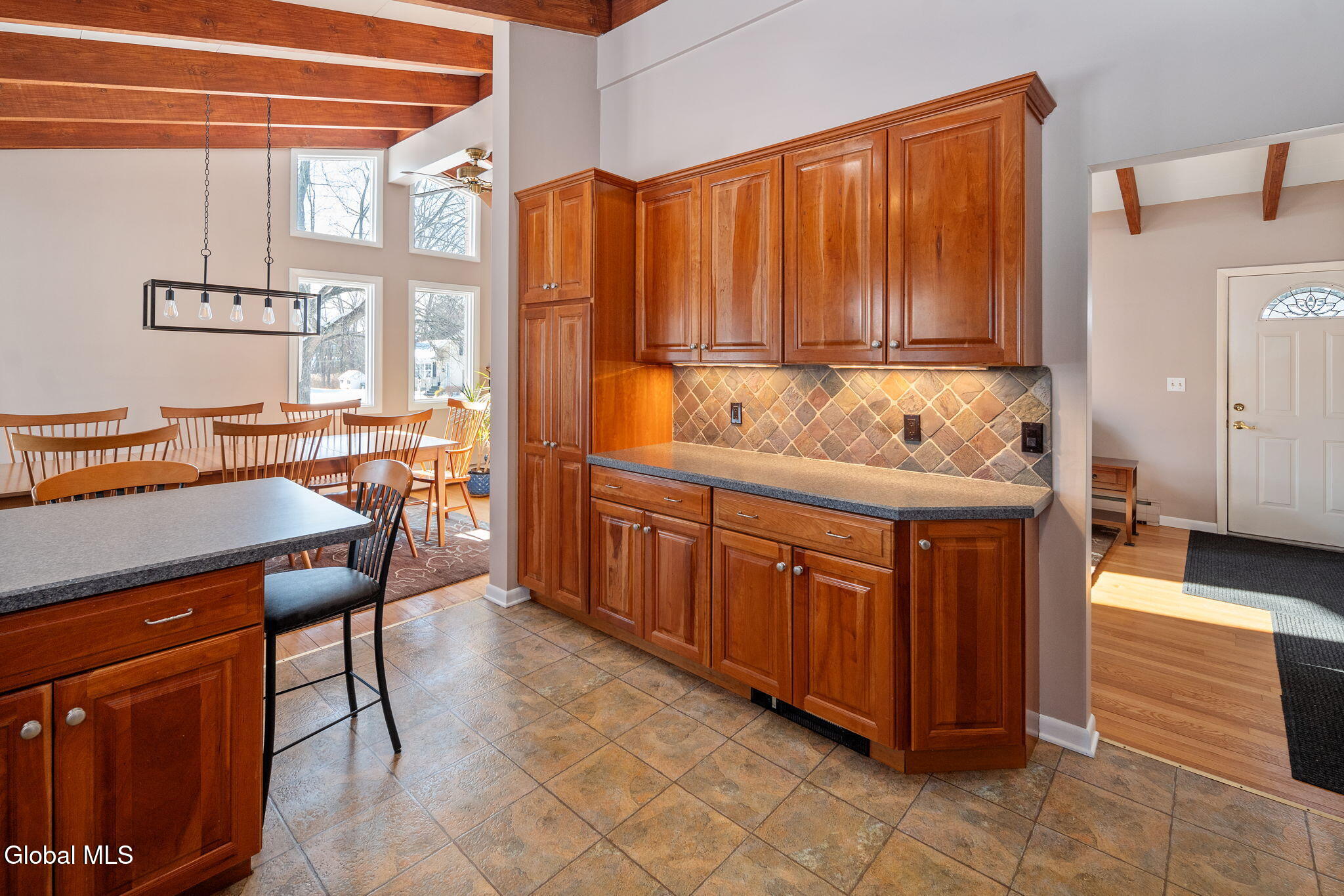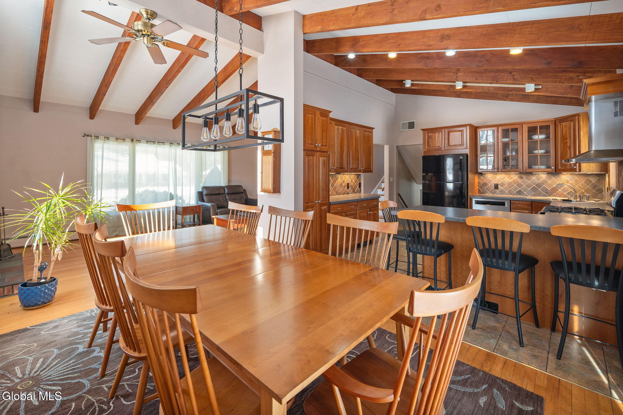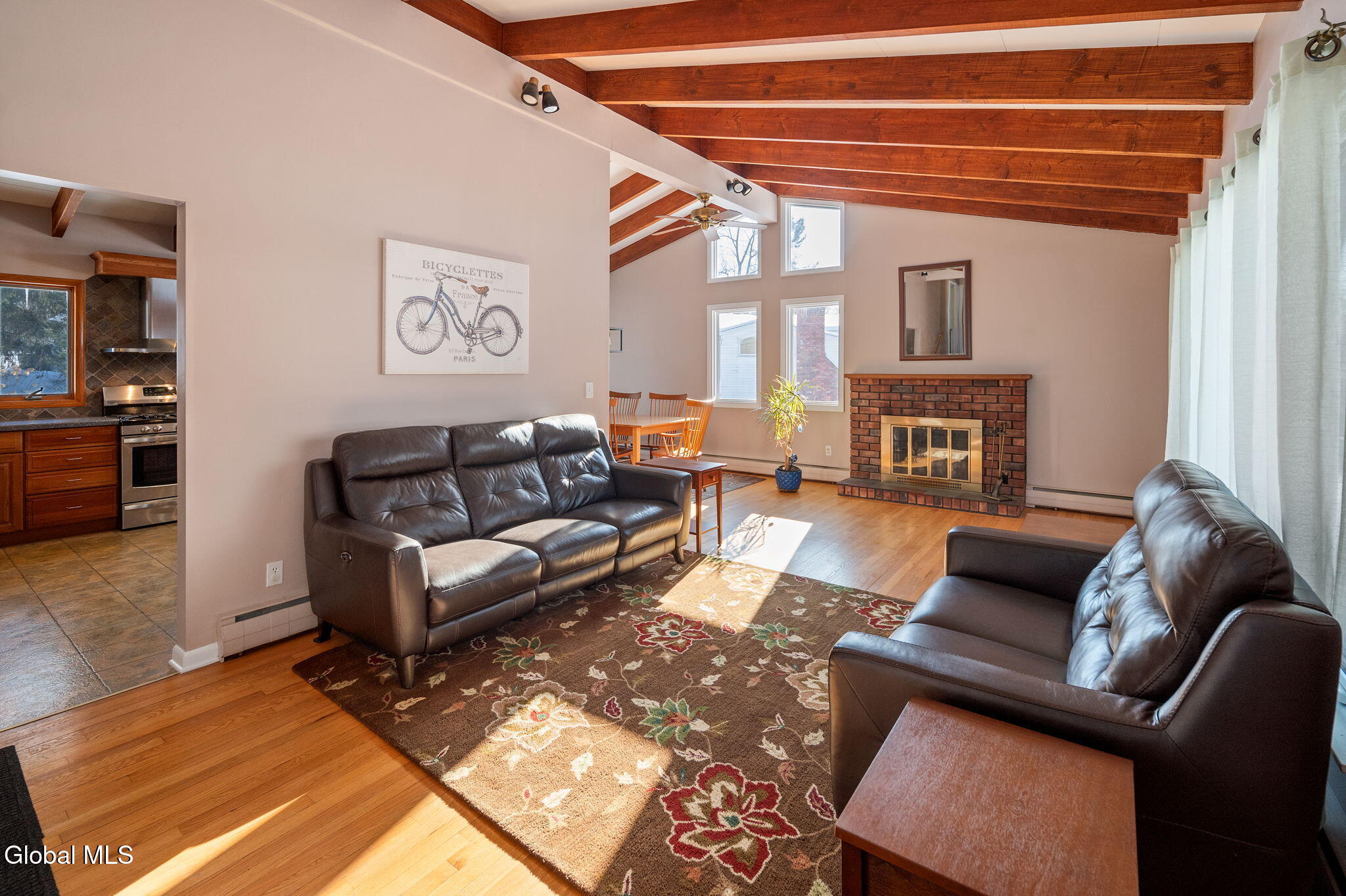 BEST AND FINAL SET FOR SUNDAY 3/15/26 at 5:00 P.M. This welcoming home sits in a quiet and walkable neighborhood serviced by the North Colonie School District. Step into the inviting kitchen, where vaulted ceilings create an airy, open feel and seamlessly flow into the dining area and living room, both crowned with matching vaulted ceilings and striking exposed beams. This thoughtful layout is perfect for entertaining, bathed in abundant natural light. The kitchen boasts plentiful, quality cherry cabinetry, SS appliances including a gas range, and a tasteful tile backsplash. Hardwood floors grace the dining room, living room, and all 3 upstairs bedrooms. (There are 4 bedrooms in total). On the lower level, discover a sizable family room, versatile office area, a spacious bedroom and a half bath. There are 1.5 baths in total, both with lovely updates. There is even more space to enjoy in the tastefully finished basement. Enjoy your time on the 20X14 patio overlooking the peaceful backyard. Plenty of room to park in the expansive garage and driveway. The roof is only 5 years old, the HVAC system offers two zones of heating and cooling. The boiler was installed in 2025 and the hot water heater in 2024. Most windows have been replaced. All bedroom windows were replaced in 2020. This is a fantastic home in a great location!