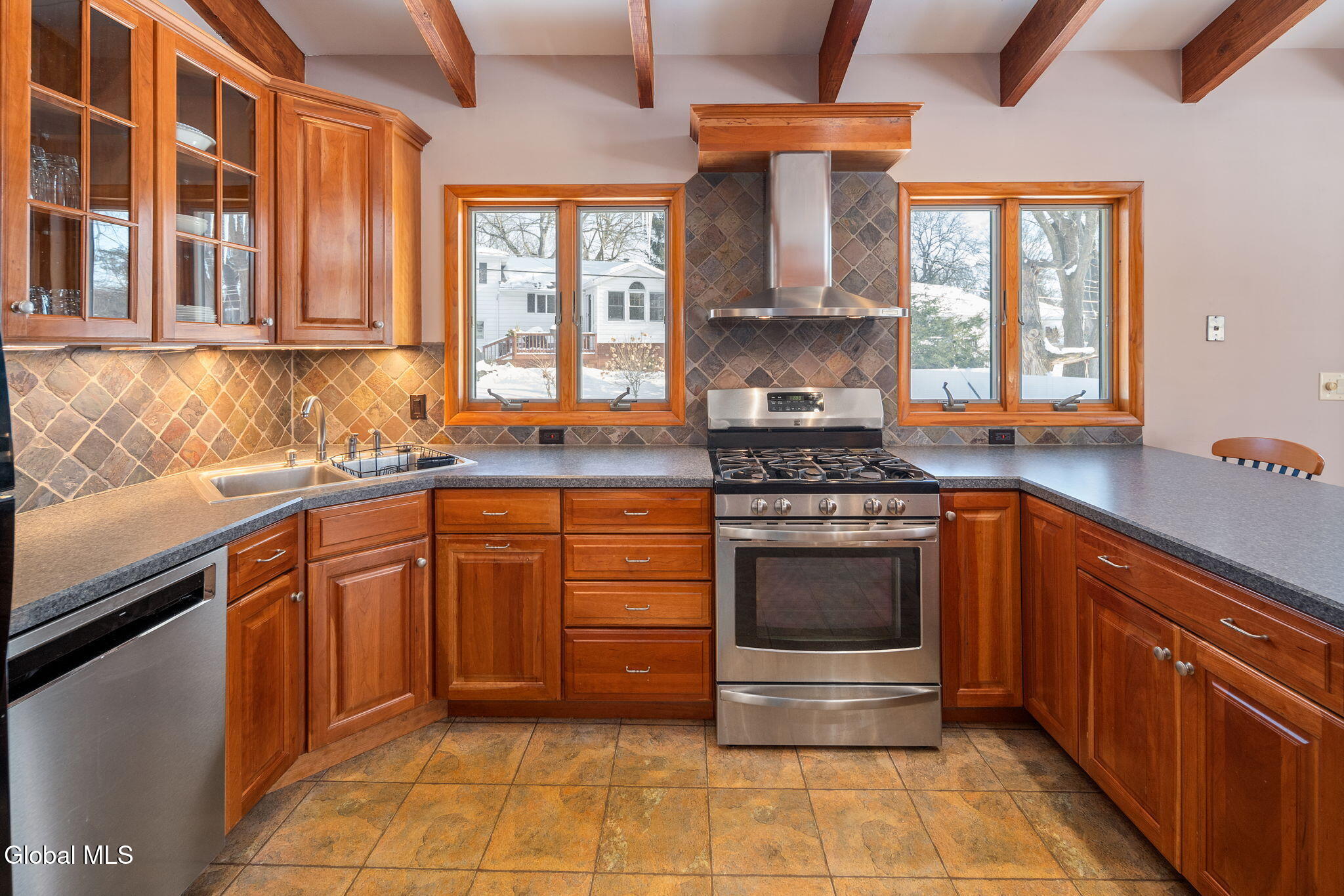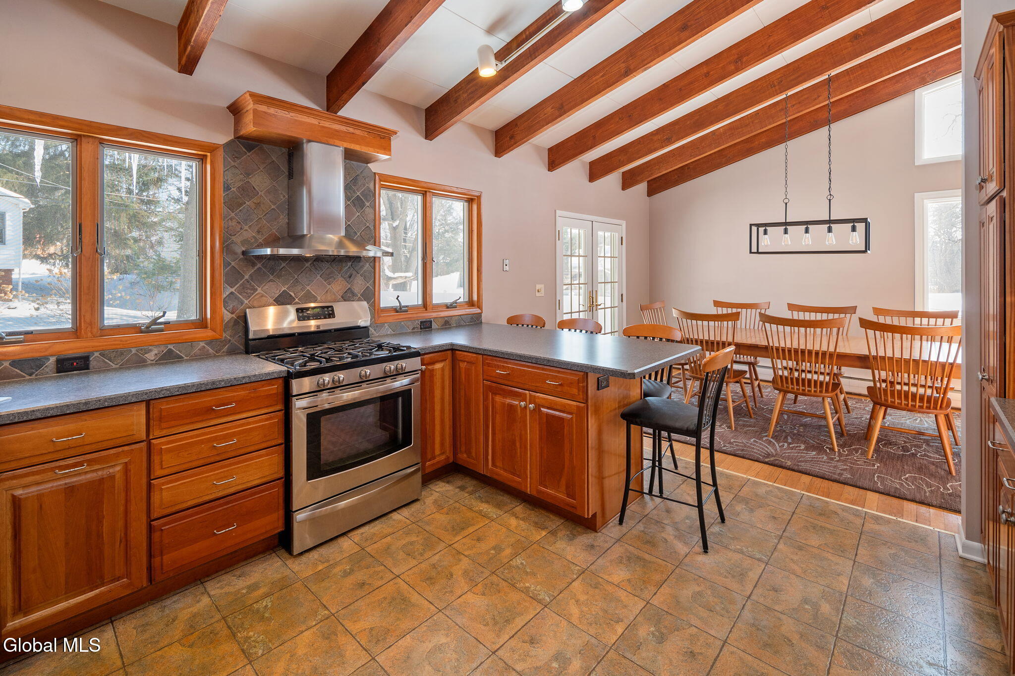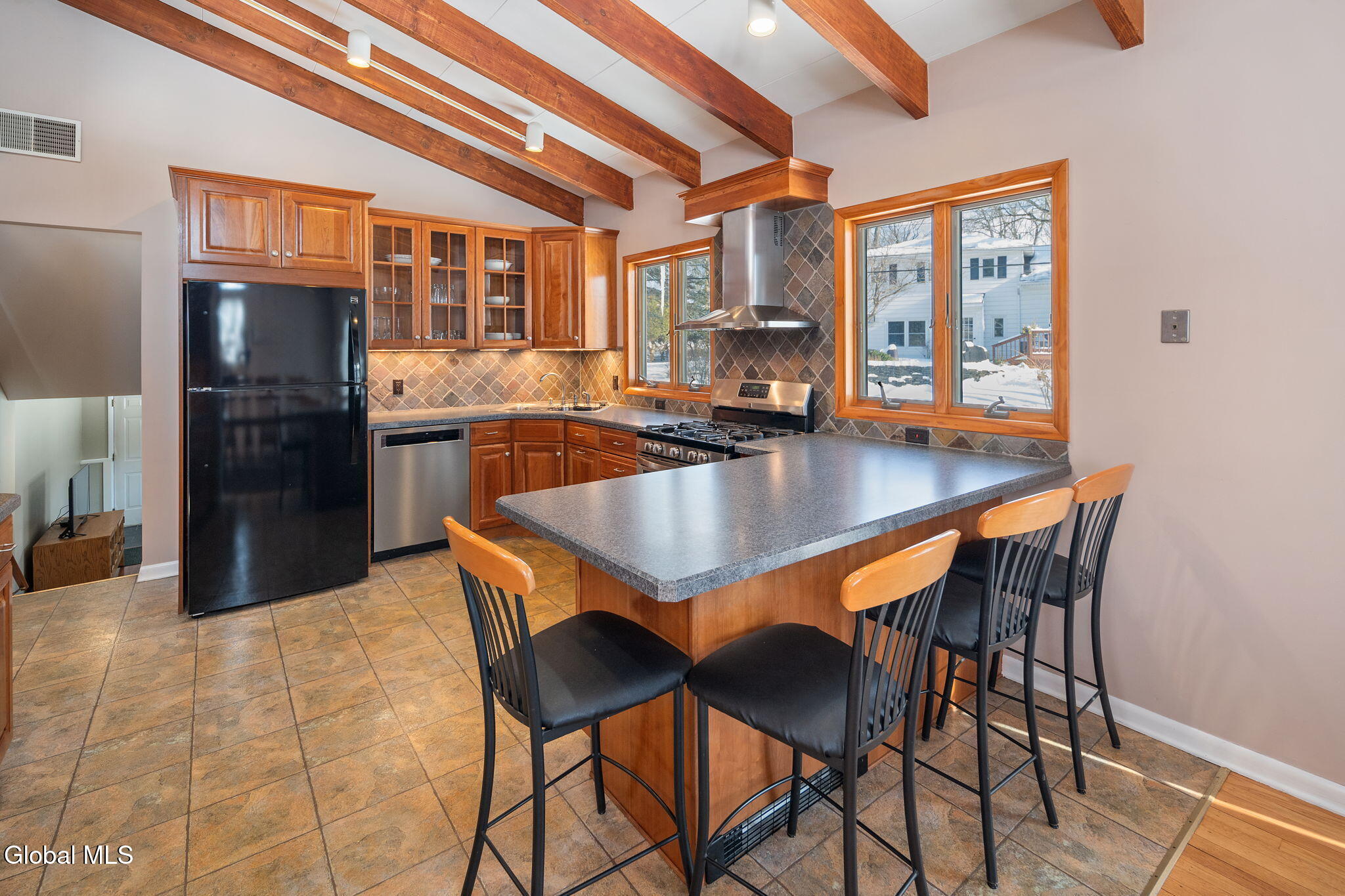 BEST AND FINAL SET FOR SUNDAY 3/15/26 at 5:00 P.M. This welcoming home sits in a quiet and walkable neighborhood serviced by the North Colonie School District. Step into the inviting kitchen, where vaulted ceilings create an airy, open feel and seamlessly flow into the dining area and living room, both crowned with matching vaulted ceilings and striking exposed beams. This thoughtful layout is perfect for entertaining, bathed in abundant natural light. The kitchen boasts plentiful, quality cherry cabinetry, SS appliances including a gas range, and a tasteful tile backsplash. Hardwood floors grace the dining room, living room, and all 3 upstairs bedrooms. (There are 4 bedrooms in total). On the lower level, discover a sizable family room, versatile office area, a spacious bedroom and a half bath. There are 1.5 baths in total, both with lovely updates. There is even more space to enjoy in the tastefully finished basement. Enjoy your time on the 20X14 patio overlooking the peaceful backyard. Plenty of room to park in the expansive garage and driveway. The roof is only 5 years old, the HVAC system offers two zones of heating and cooling. The boiler was installed in 2025 and the hot water heater in 2024. Most windows have been replaced. All bedroom windows were replaced in 2020. This is a fantastic home in a great location!