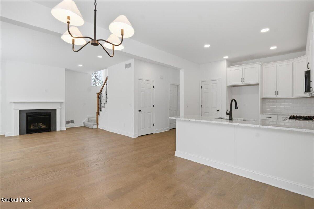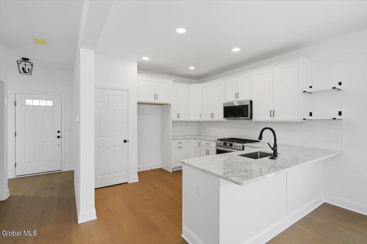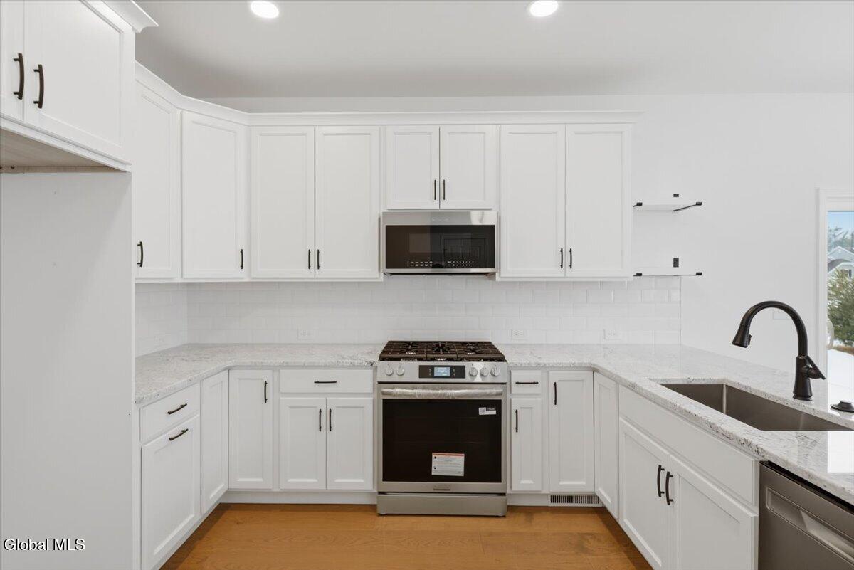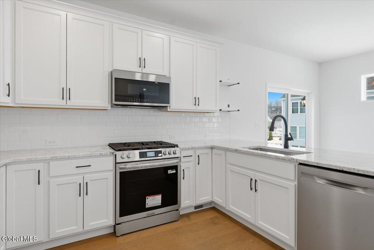Brand new quick delivery home ready now! All exterior work will be completed this Spring. 3 bedrooms plus a home office, 2.5 bathrooms in a low-maintenance HOA community! This home is located down the street from the exciting new project - 146 Marketplace! The kitchen has 42'' high white cabinets with crown molding, open shelves, tile backsplash, granite countertops and SS appliances. Other notable features include an 8' garage door, custom bench in mudroom, tiled shower in primary bathroom, wrought iron stair balusters and engineered hardwood throughout! The HOA will handle lawn care and snow removal.