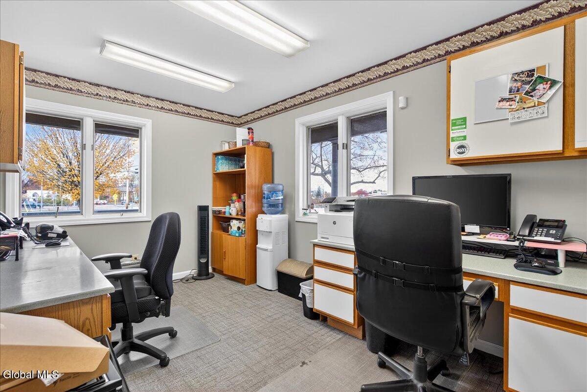 Turnkey dental/medical office in excellent condition located in Glenmont's professional corridor. Built in 1992, this 2,000 sq ft freestanding building features a modern reception area, multiple operatories, private offices, and quality finishes throughout. Long-term dental tenant in place through July 2029 with renewal options and built-in rent increases, providing steady, low-maintenance income. Tenant covers most operating expenses; landlord responsible only for lawn, snow, and taxes. Recent HVAC replacement (2025) and ongoing site improvements. Full basement offers excellent storage, expansion potential, or the opportunity to add a second tenant/use. High visibility, ample parking, and convenient access to Route 9W make this an outstanding investment or future owner-user opportunity.
