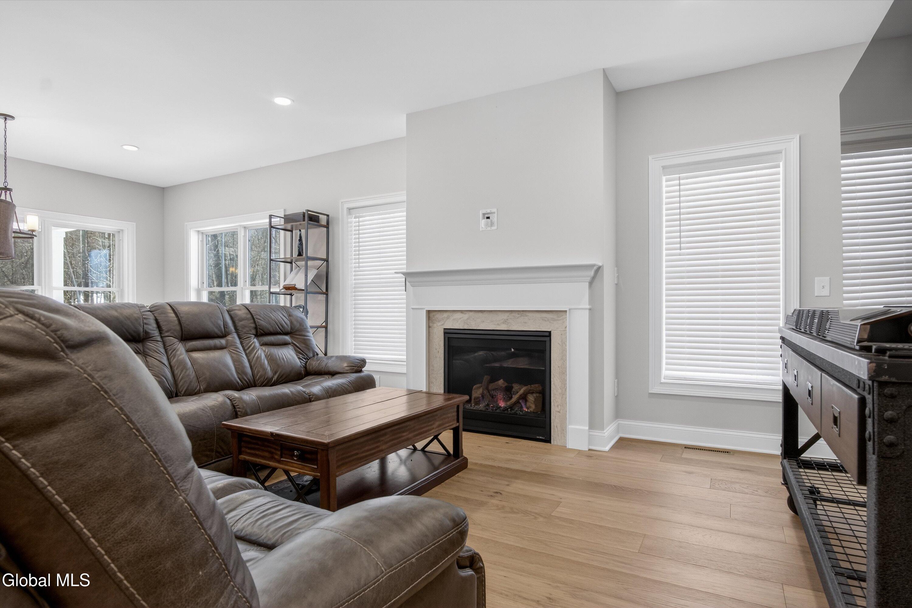 **Multiple Offer Deadline 3/1 at 4pm** Set on a quiet cul-de-sac in Mulberry Estates II, this custom Kodiak Built home (new in 2022) offers the ease of one-floor living. The home features 3 bedrooms and 2 full baths with an open, inviting layout ideal for both everyday living and entertaining. The spacious, upgraded kitchen is a true centerpiece, showcasing a Viking gas range and hood, Frigidaire refrigerator, Emerstone quartz countertops, custom pantry, and a large island with seating. A designated dining area provides space for more formal gatherings, while the open living room is anchored by a Heat & Glo gas fireplace with a granite surround. Hardwood floors flow seamlessly through the main living areas. The primary suite offers a private retreat with an attached bath featuring a tile shower, soaking tub, quartz dual vanity, and a custom walk-in closet. Two additional bright and spacious bedrooms complete the first floor. A walkout basement and walk up second floor are ready to be finished, offering endless possibilities for additional living space, a home gym, or guest suite. Outside, enjoy a covered porch perfect for relaxing, along with a two-car garage providing ample storage. Conveniently located less than 15 minutes from the shops and restaurants of Downtown Saratoga Springs, and just 5 minutes more to Saratoga Lake, this home blends modern comfort, quality craftsmanship, and an ideal location.