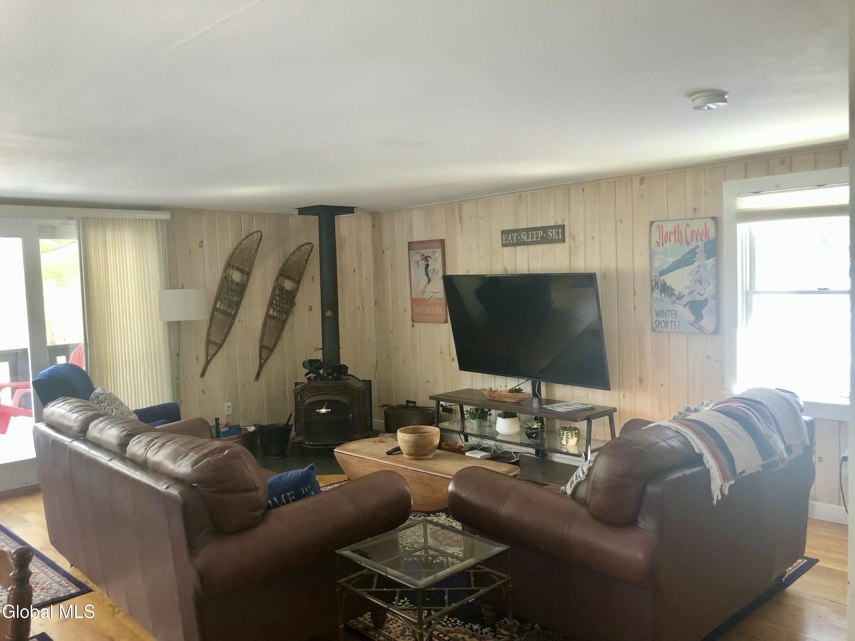 Come discover the perfect blend of comfort, charm, and adventure in this inviting Adirondack chalet. This home is perfectly set back from the road on a private lot, welcoming you with a spacious deck--perfect for grilling, relaxing, and entertaining after a day of adventure. Inside, the recently renovated first floor offers a warm and inviting atmosphere, highlighted by a cozy wood-burning stove, a primary bedroom, and a full bath. Upstairs, you'll find two additional bedrooms and a second full bath, providing comfortable space for family and guests. The property also features a large shed ideal for storing outdoor gear and recreational equipment, along with additional covered storage for firewood. Ideally situated just minutes from skiing at Gore Mountain, to the shops and restaurants of North Creek, to the thrilling rafting on the Hudson River, and endless hiking throughout the Adirondack Mountains, this property offers year-round access to some of the best outdoor recreation. Conveniently located to Friends Lake and Loon Lake and a short drive to Indian Lake, Schroon Lake and Brant Lake and the Queen of Lakes, Lake George. Whether you're searching for a personal ski retreat, a year-round residence, or a turnkey short-term rental opportunity, this charming Adirondack getaway delivers. Being sold fully furnished--making it truly move-in ready. Do not miss your opportunity.
