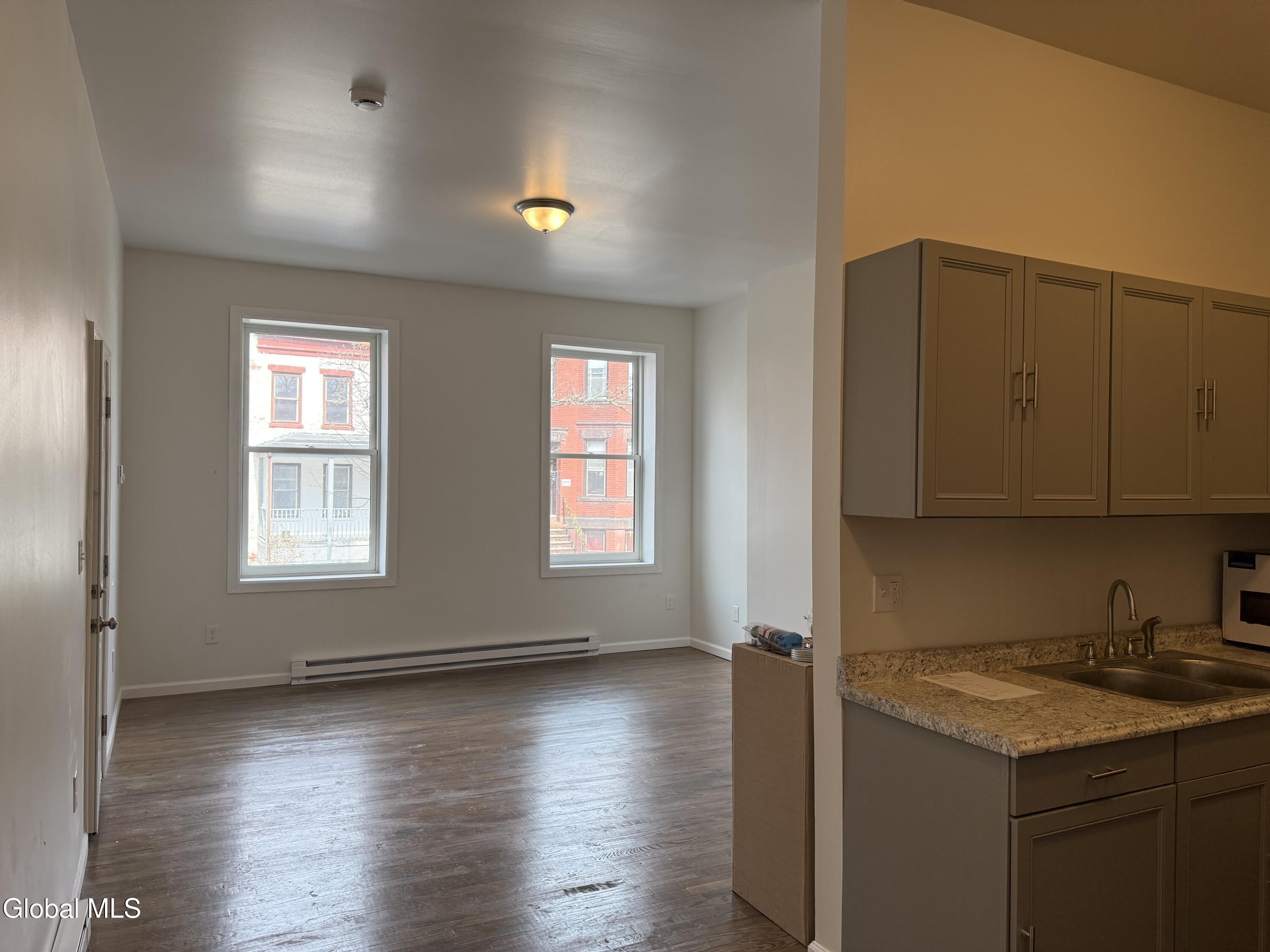 Spacious and sun-filled first-floor living with soaring high ceilings and oversized windows that flood the home with natural light. Enjoy the convenience of in-unit laundry and an easy, comfortable layout designed for everyday living. Ideally located within walking distance to the Empire State Plaza, Washington Park, local schools, colleges, restaurants, and supermarkets--perfect for those who value accessibility and vibrant city living. Step out back to a private deck, offering a peaceful retreat on a quiet street--ideal for relaxing with a book, enjoying your morning coffee, or unwinding at the end of the day.