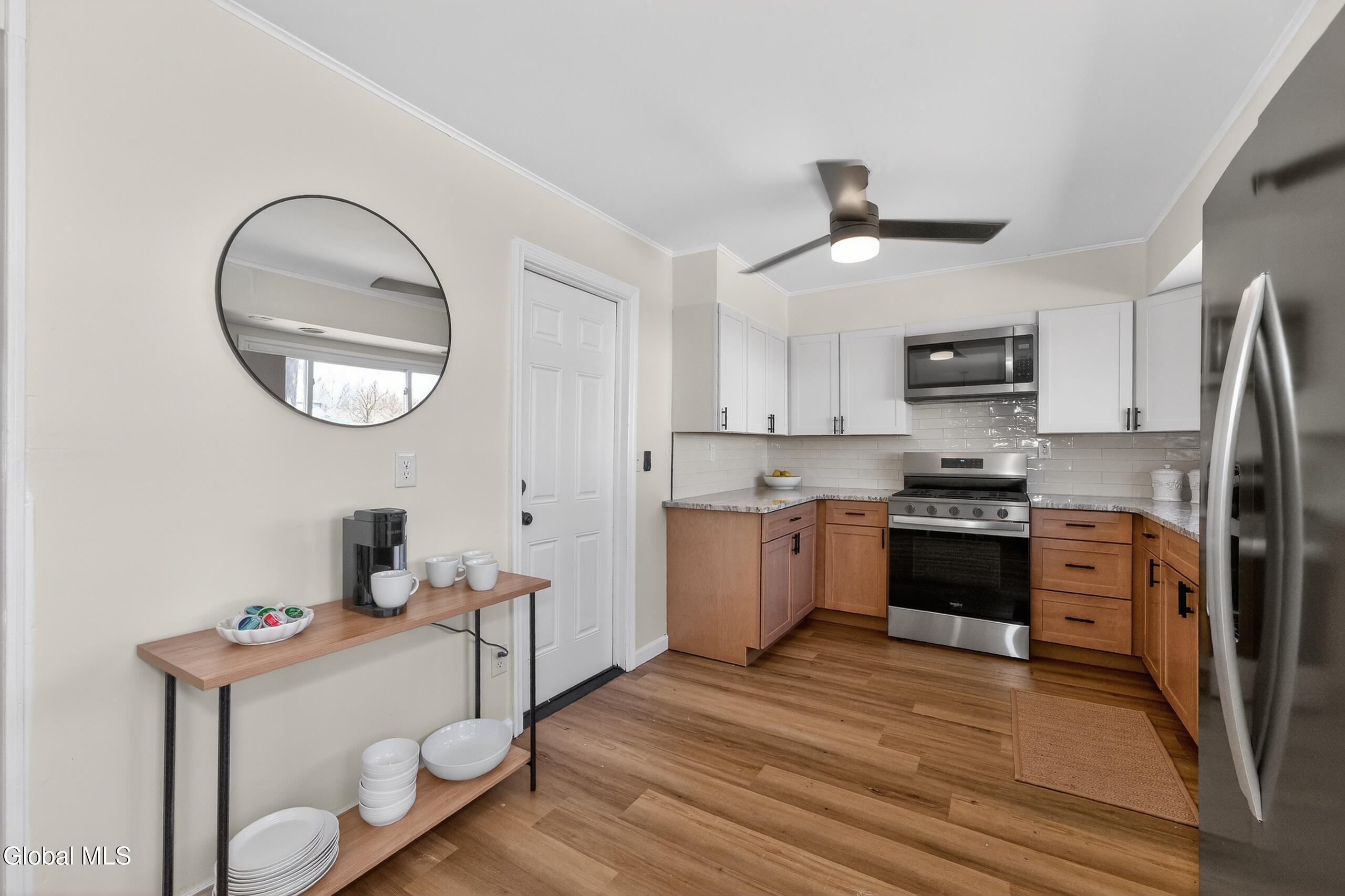 Welcome to this fully renovated 4-bedroom, 2 full bathroom residence in the highly sought-after Loudonville area, offering 1,960 square feet of thoughtfully designed living space across two levels. This home has been recently updated, delivering a truly move-in-ready experience with a clean, modern aesthetic throughout. The centerpiece of the home is the stunning kitchen, featuring elegant granite countertops, sleek stainless steel appliances, and a refined design that seamlessly blends style and functionality--perfect for both everyday living and elevated entertaining. Designed with flexibility in mind, the home offers a versatile bonus room or den, ideal for a private home office, media space, or additional living area. Generous storage throughout enhances both comfort and practicality. Positioned on a prominent corner lot, the property offers added privacy, space, and strong curb appeal, enhanced by bluestone walkways at both the front and rear of the home--adding a timeless, upscale exterior touch. The combination of thoughtful renovations and a desirable layout creates a home that feels both polished and inviting. Ideally located just minutes from major shopping, dining, and the airport, this home provides exceptional convenience. Situated within the highly regarded Colonie School District, this is a rare opportunity to own a turn-key home in one of the Capital Region's most desirable neighborhoods.