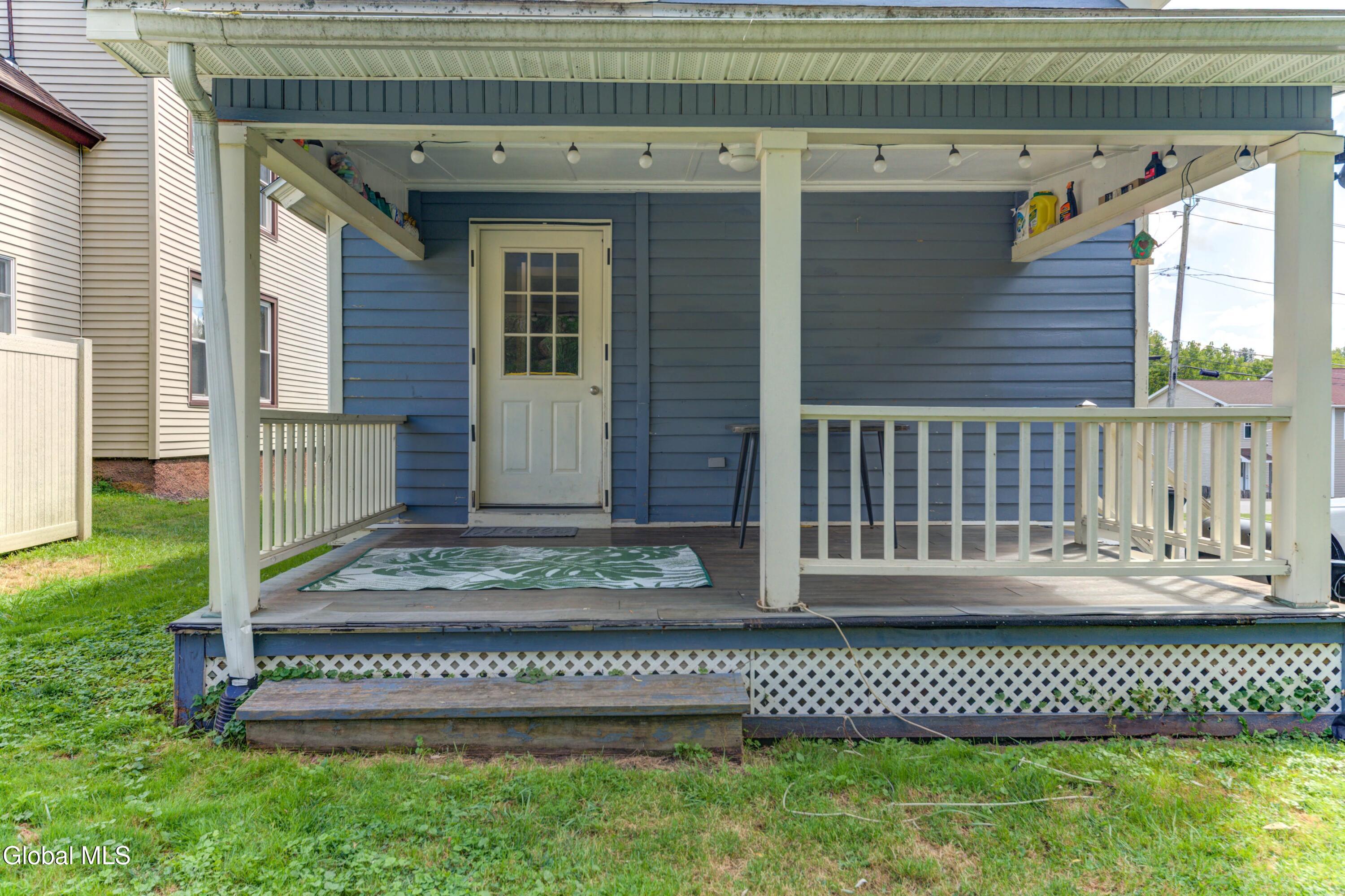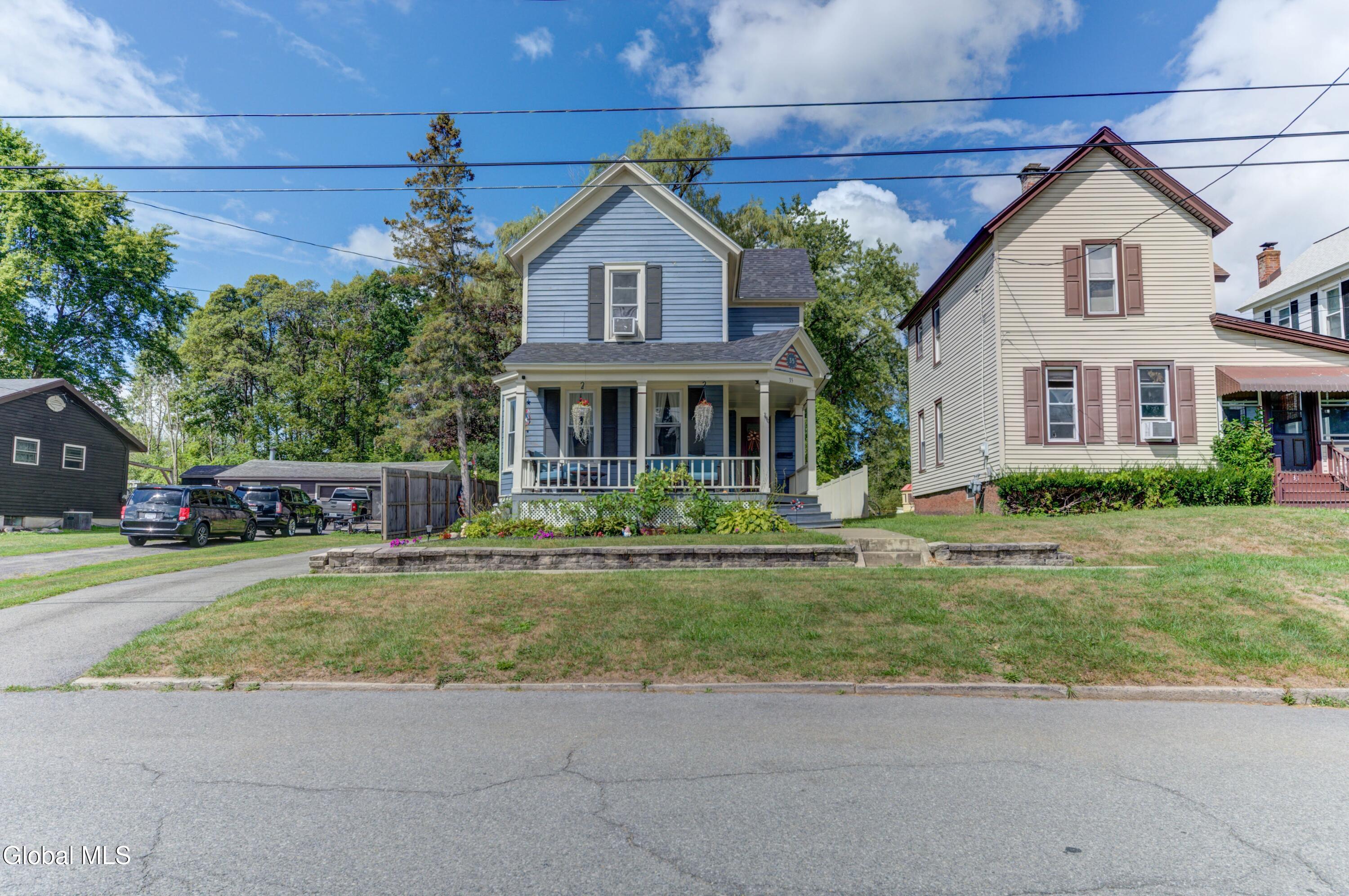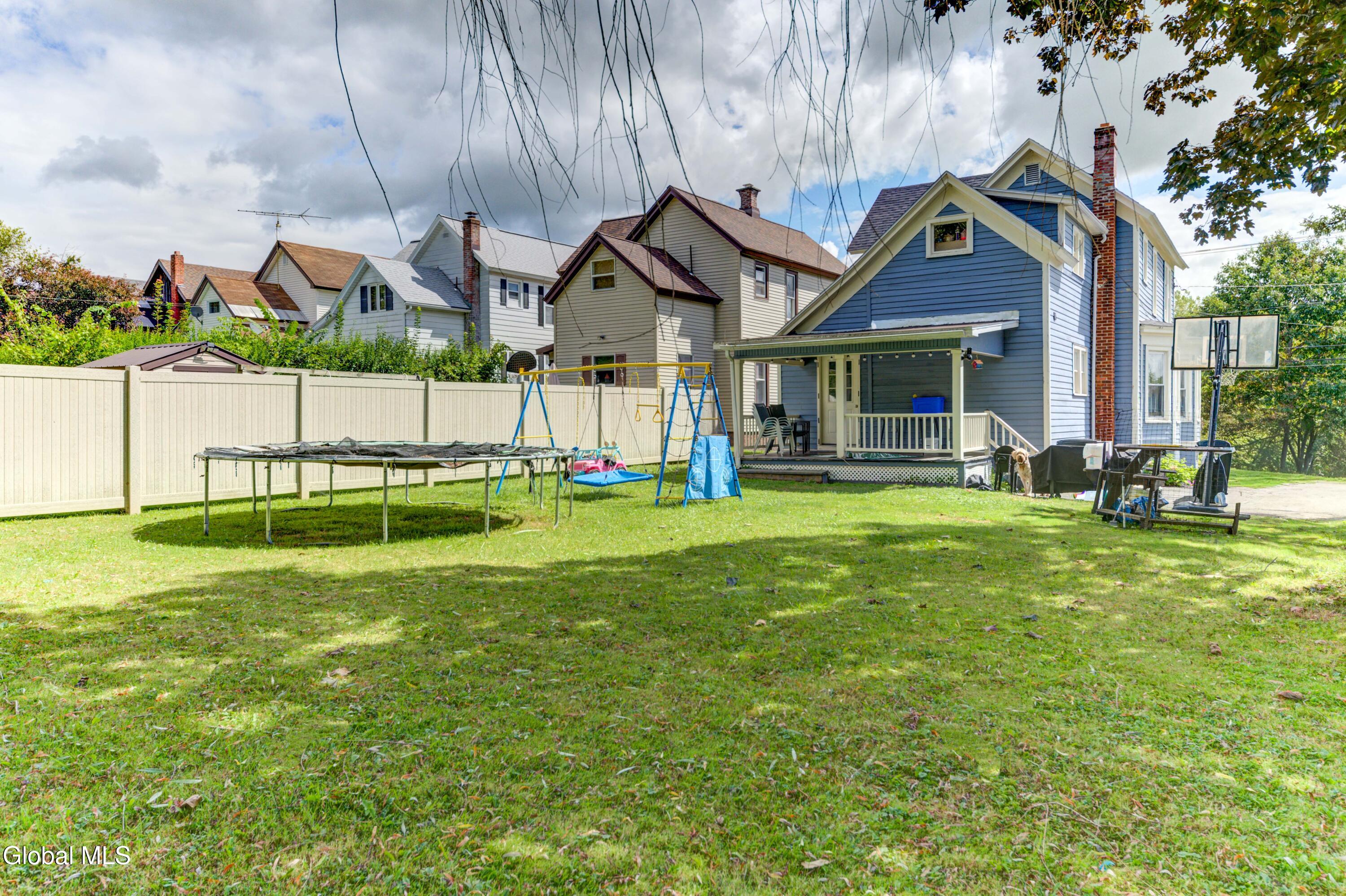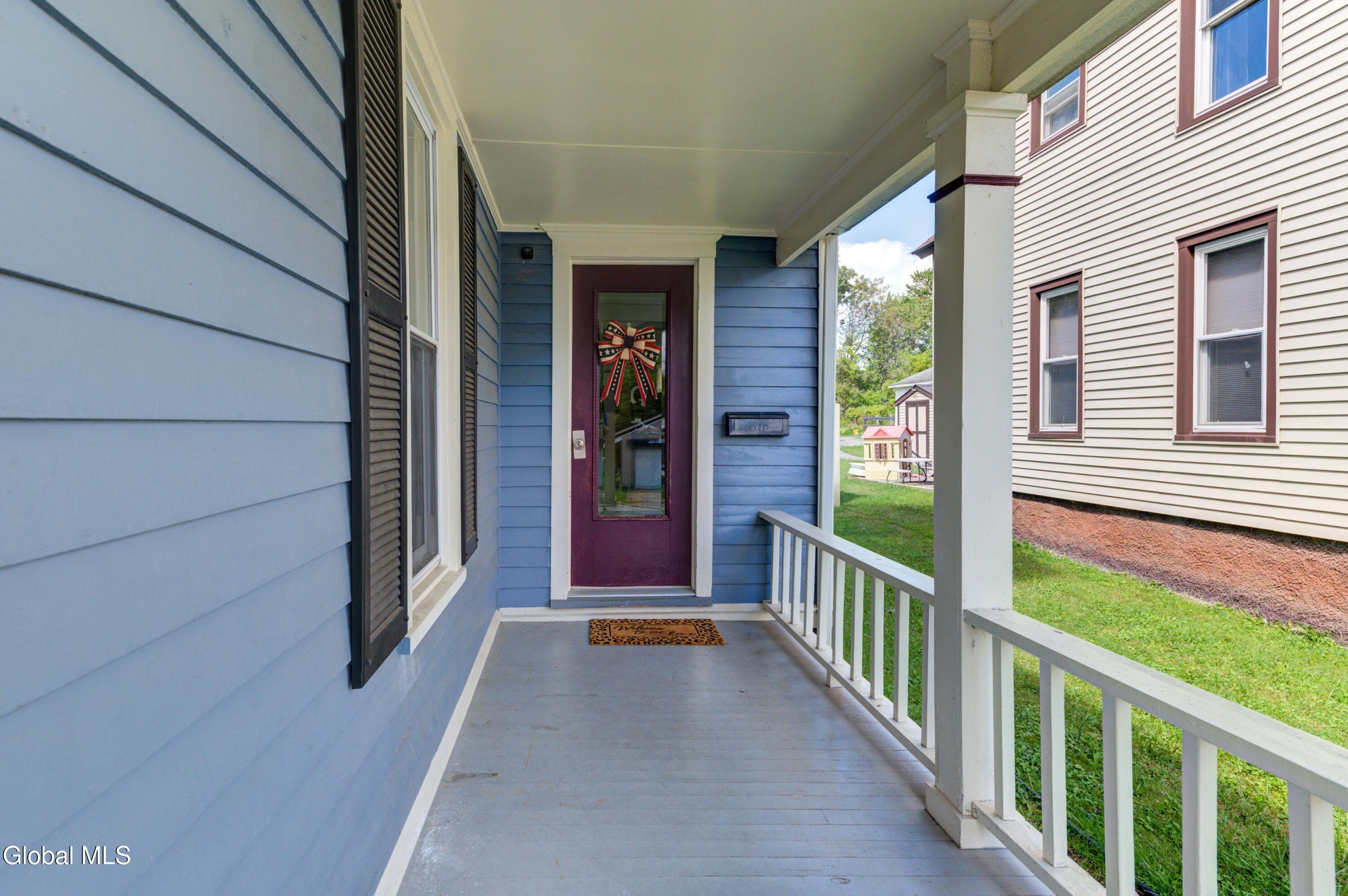 Nestled on a quiet dead-end street, this beautifully updated 3 bedroom, 1.5 bath home is ready to welcome its next owners. The wraparound front porch adds timeless curb appeal, while the covered back porch and spacious private yard are perfect for gatherings or relaxation. Inside, an updated eat-in kitchen featuring stunning quartz countertops and abundant storage flows into a formal dining room and a bright, open living space. With the Sir William Johnson baseball complex, local schools, and the charming historic shops and restaurants of downtown Johnstown just minutes away, you'll love the perfect balance of modern convenience and historic charm. *Swing set is not included