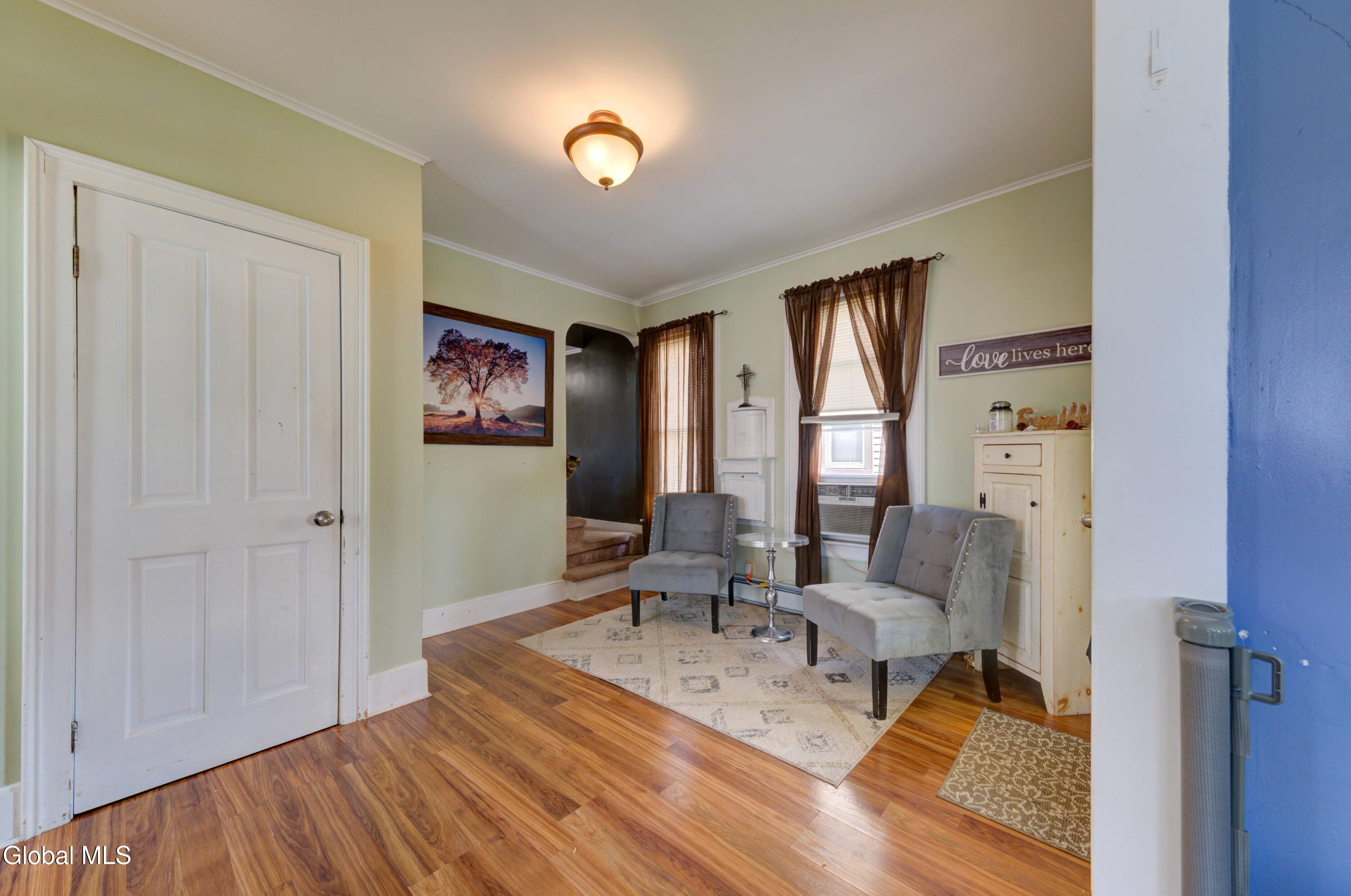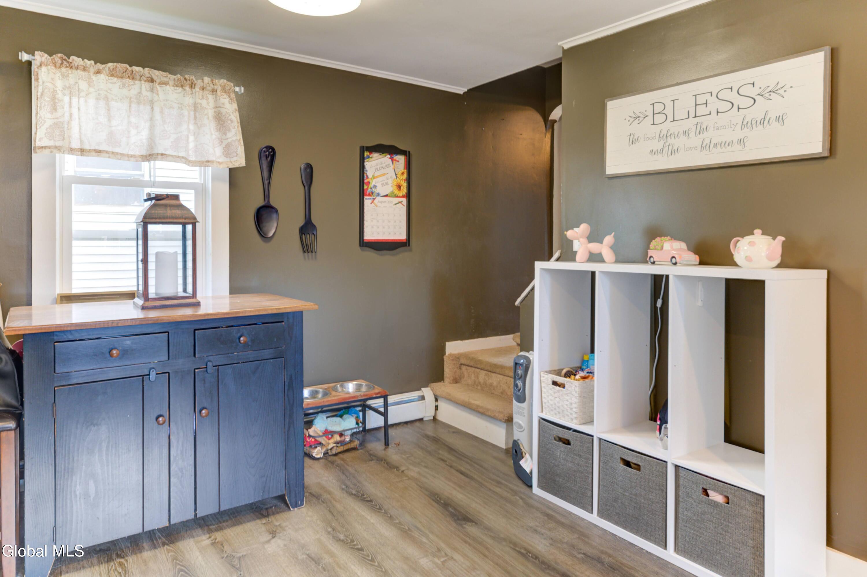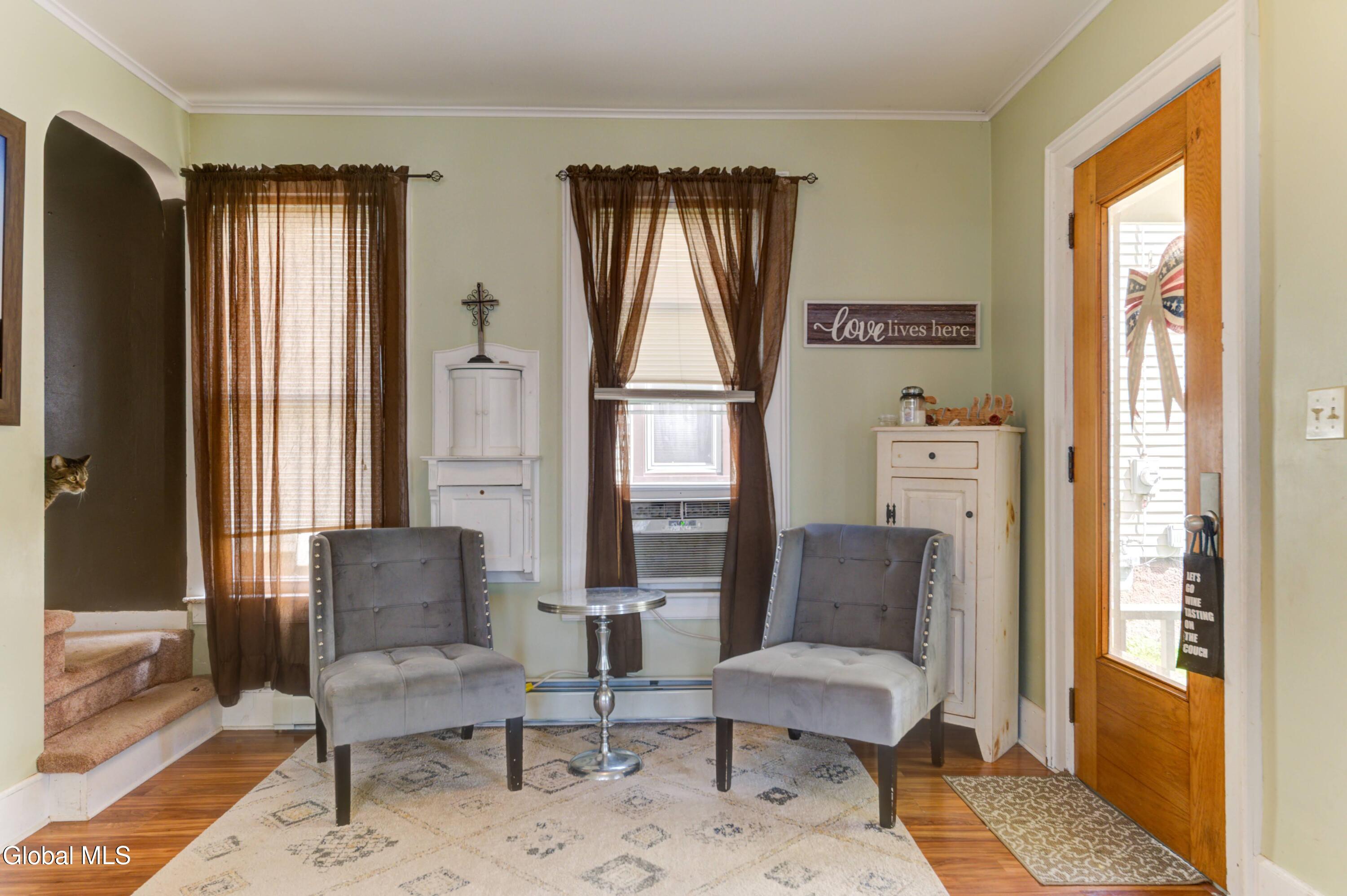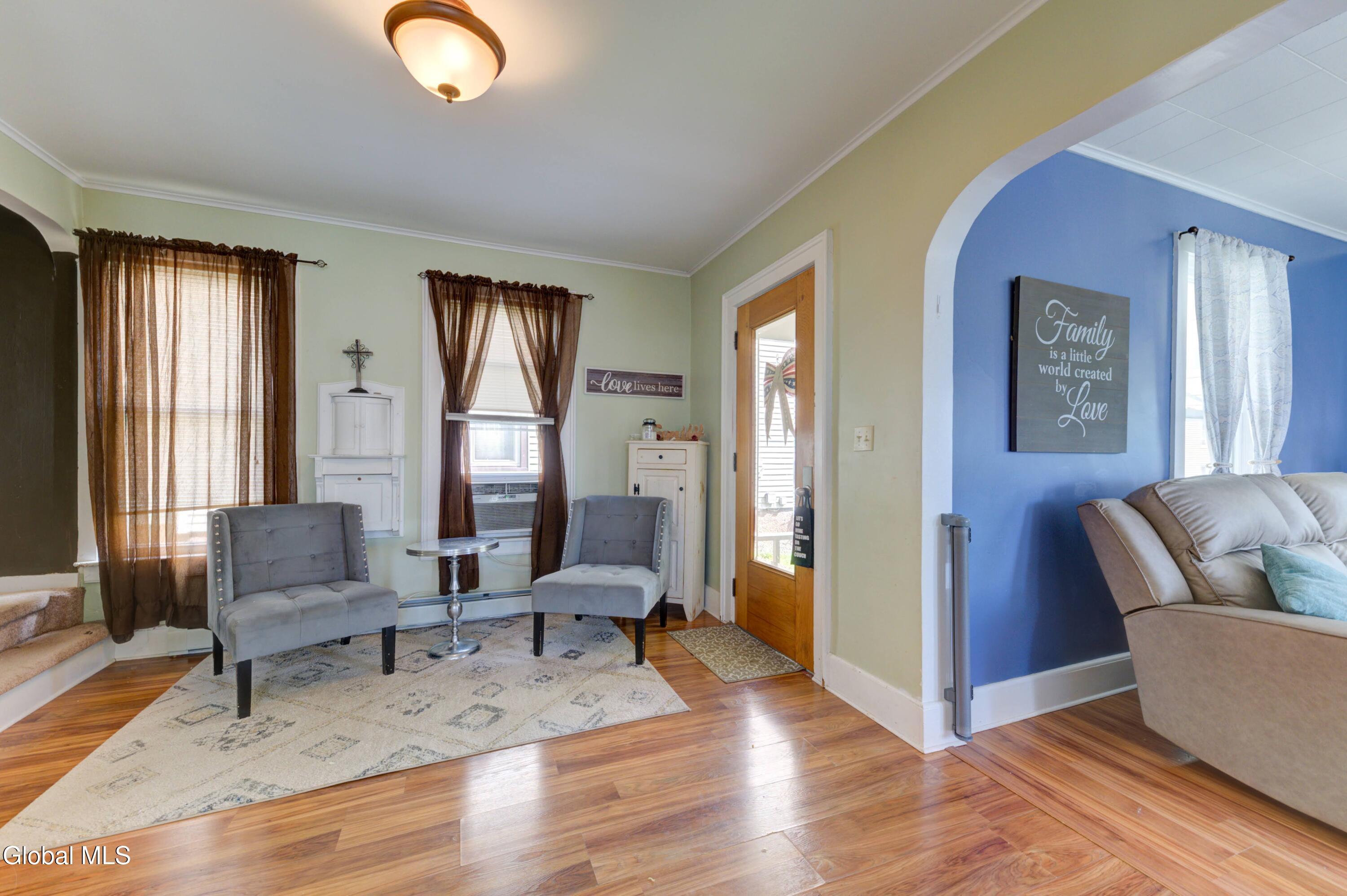 Nestled on a quiet dead-end street, this beautifully updated 3 bedroom, 1.5 bath home is ready to welcome its next owners. The wraparound front porch adds timeless curb appeal, while the covered back porch and spacious private yard are perfect for gatherings or relaxation. Inside, an updated eat-in kitchen featuring stunning quartz countertops and abundant storage flows into a formal dining room and a bright, open living space. With the Sir William Johnson baseball complex, local schools, and the charming historic shops and restaurants of downtown Johnstown just minutes away, you'll love the perfect balance of modern convenience and historic charm. *Swing set is not included
