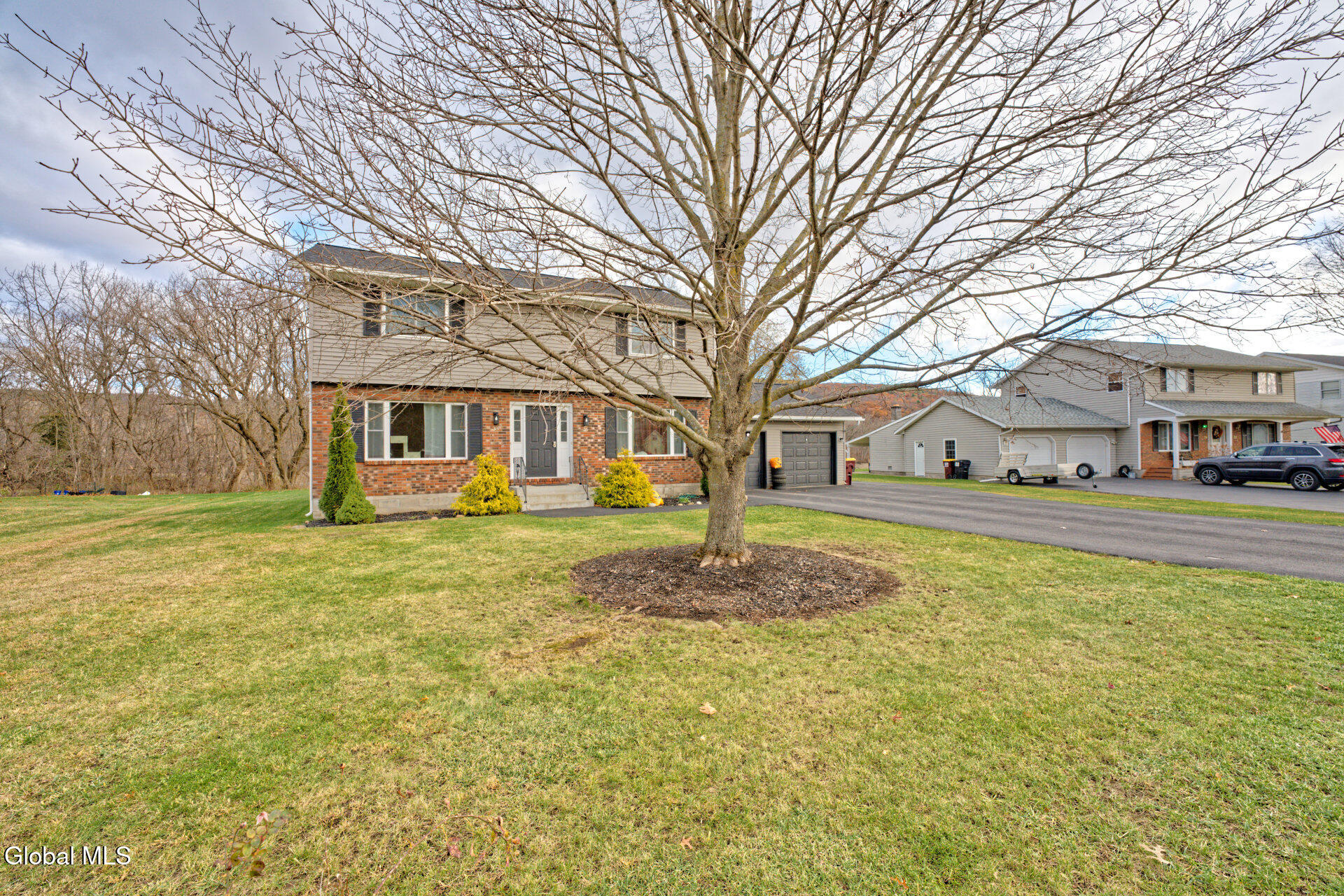 Beautifully updated side-by-side duplex overlooking the Mohawk River. This spacious property offers two bright and inviting 2-bedroom apartments, each with just over 1,000 sq ft of comfortable living space. The main level of each unit has been fully remodeled, featuring a modern kitchen with bar seating, brand-new stainless steel appliances, a generous living room, and a stylish updated half bath. Upstairs, each apartment includes two well-sized bedrooms and an updated full bathroom. Both units also come with their own private basement—complete with a washer and dryer. Brand-new garage doors have been installed on the 2-car garage with additional off-street parking available on the recently repaved driveway. Enjoy a spacious backyard with tranquil views of the Mohawk River and surrounding mountains, all set in a peaceful Upstate NY location. The home has been thoughtfully maintained and upgraded, featuring new energy-efficient windows, a 2-year-old asphalt shingle roof, and new high-efficiency hot water heaters installed in 2024 and 2025. Whether you're looking to enjoy one unit as an owner-occupant or seeking a turnkey investment property, this duplex offers outstanding flexibility and immediate income potential. No flood insurance required.
