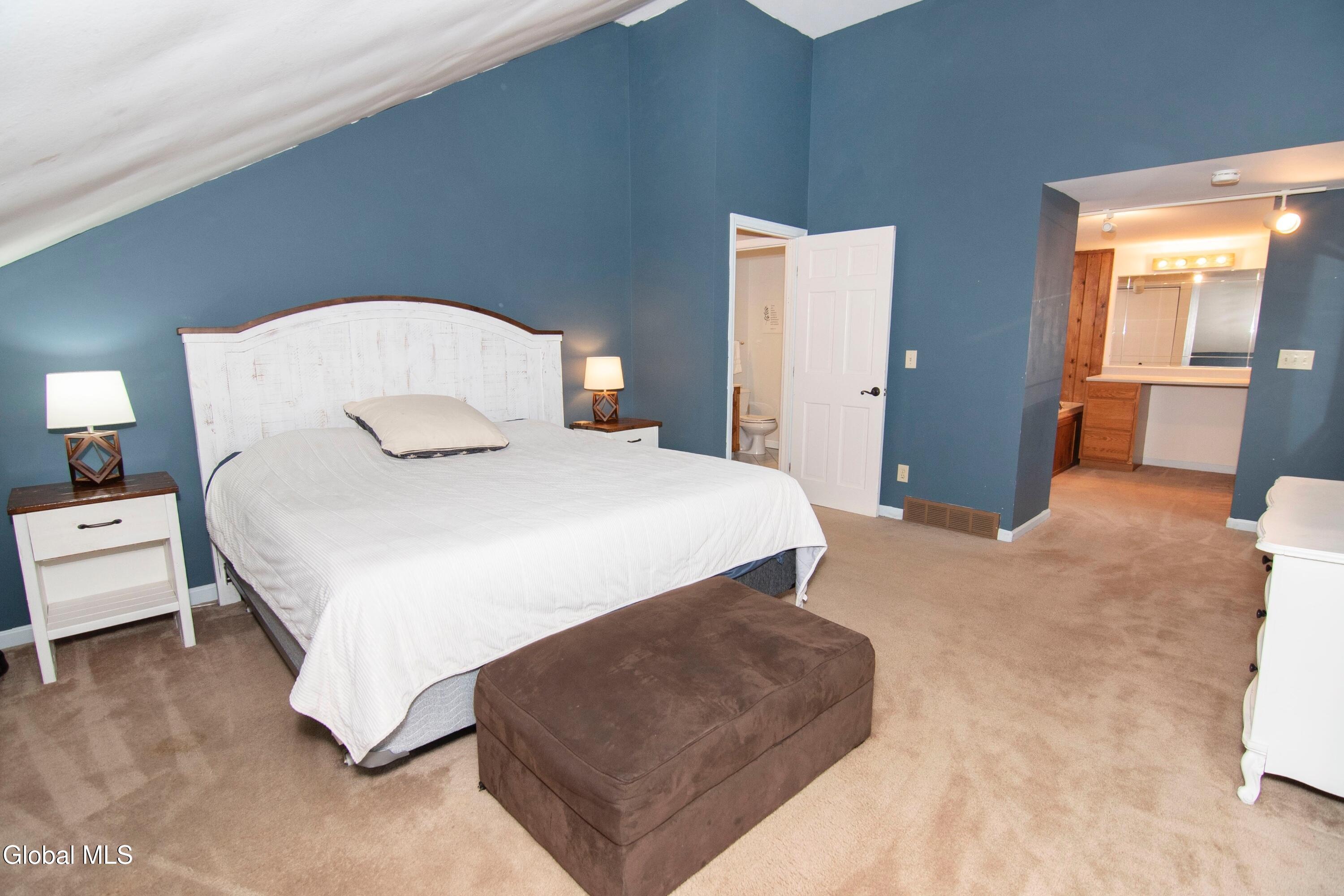 Enjoy open-concept living in this bright and airy contemporary home located in the heart of Luther Forest. The inviting living room showcases soaring vaulted ceilings, skylights, and a gas fireplace with a striking stone tile surround. The spacious kitchen offers abundant cabinetry, a center island, two walls of windows, and its own vaulted ceiling with skylights—perfect for both everyday living and entertaining. The first floor includes two generously sized bedrooms and a full bathroom. Upstairs, a versatile loft overlooks both the kitchen and living room, providing flexible space ideal for a home office, reading nook, or additional living area. The second-floor primary bedroom features vaulted ceilings and an oversized dressing area, creating a private and comfortable retreat. Additional highlights include a brand-new roof- 3 months old! and a heated garage. Furnace/AC replaced 2021. Ideally situated near parks, walking trails, and bike paths, this home also offers convenient access to shopping, entertainment, hospitals, GlobalFoundries, Saratoga Lake, and downtown Saratoga Springs. Easy access to I-87 makes commuting a breeze.