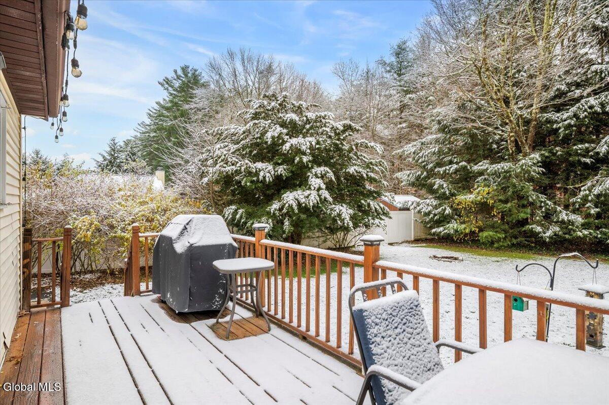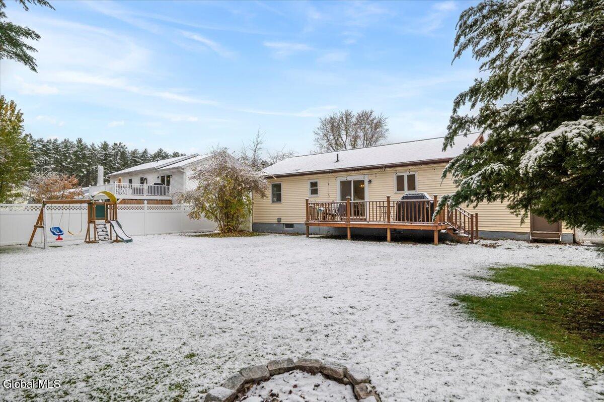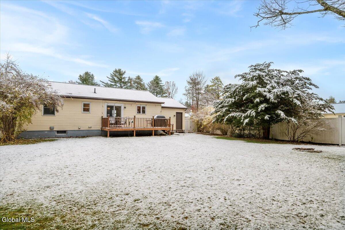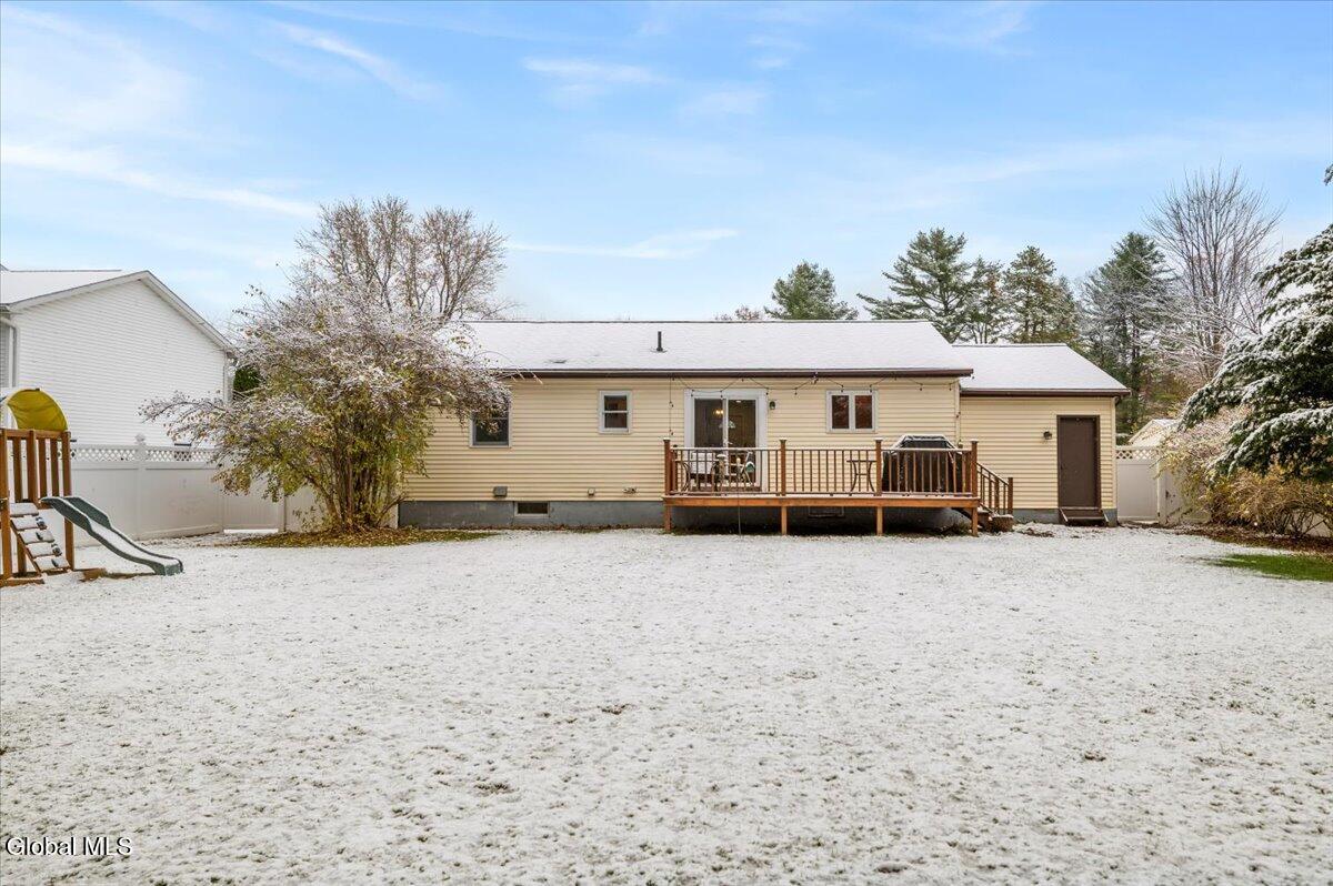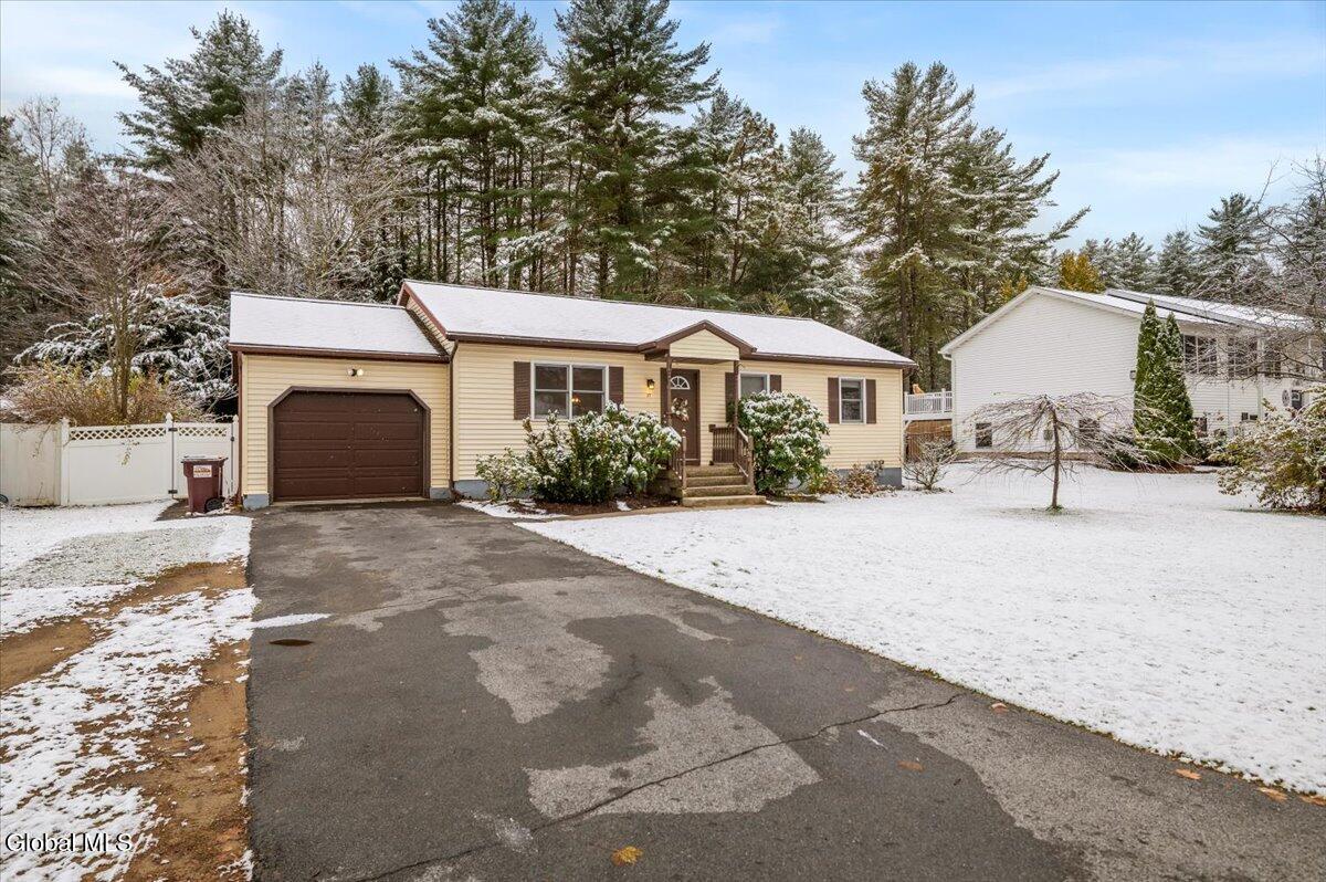 Charming Queensbury ranch in quiet & convenient Location! Enjoy easy one-level living in this well-kept 3-bedroom, 1-bath ranch on a nicely sized .27-acre lot. Conveniently located close to schools, shopping, and the Northway for an effortless commute! The home features a spacious living room, a kitchen with dining area and sliders leading to a great entertaining deck. Three comfortable bedrooms and an updated full bath provide plenty of space for family or guests. A clean, dry basement offers excellent potential for finishing if additional living space is desired. Other highlights include a one-car garage, new central air, and a fenced backyard—perfect for pets, play, or relaxing outdoors! Whether you're a first-time buyer or looking to downsize, this home checks all the boxes. Don't miss out on this move-in-ready gem!