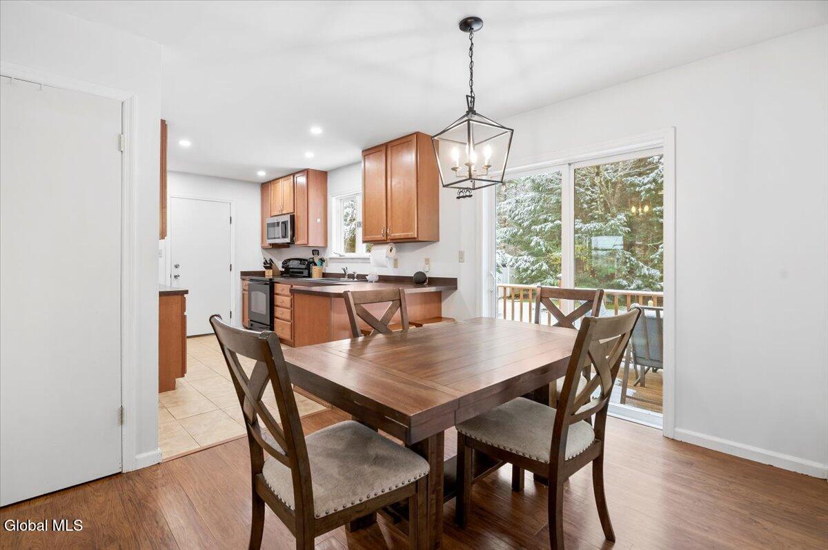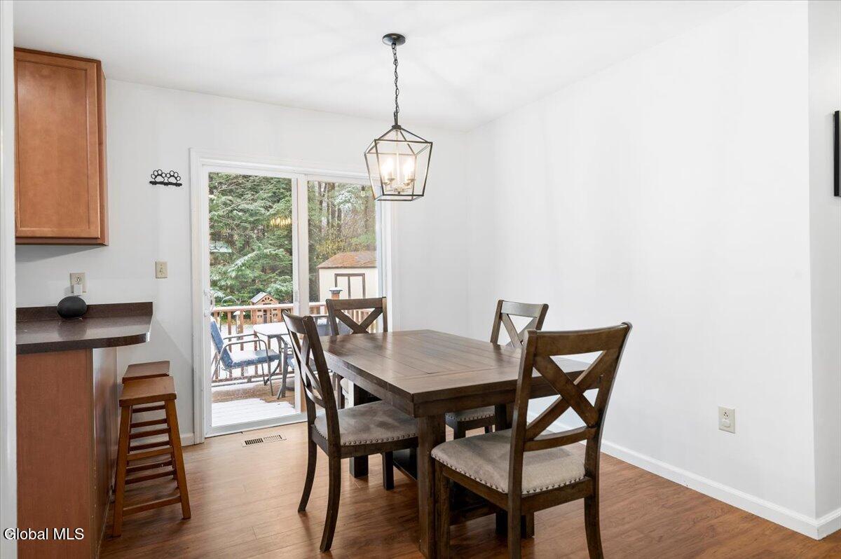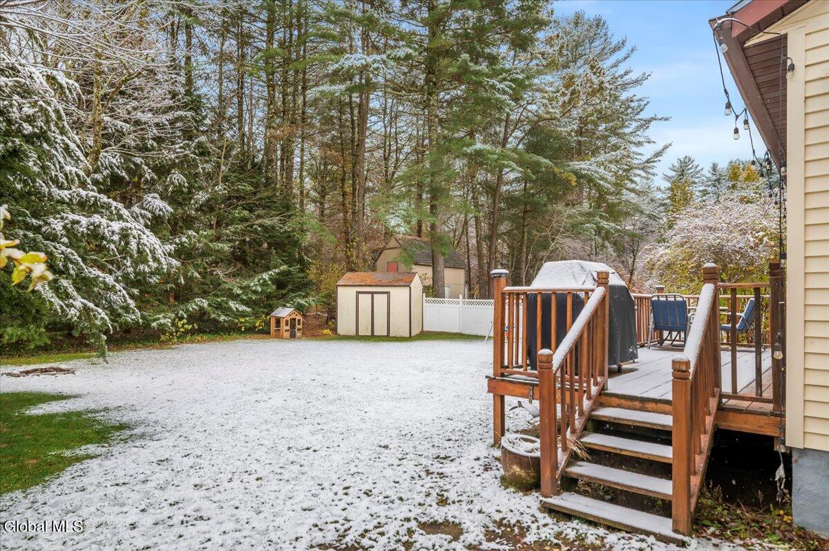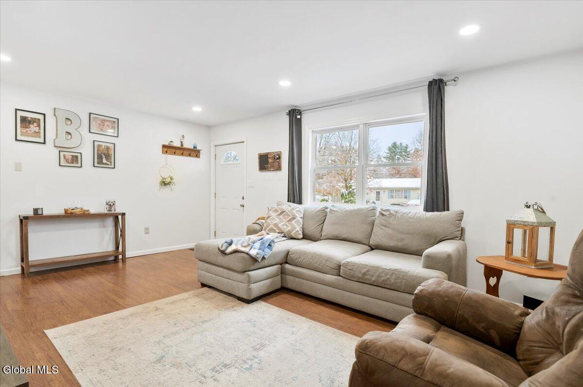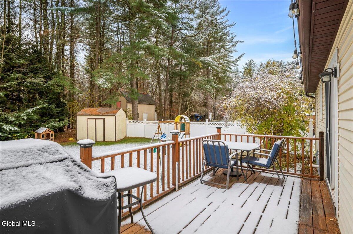 Charming Queensbury ranch in quiet & convenient Location! Enjoy easy one-level living in this well-kept 3-bedroom, 1-bath ranch on a nicely sized .27-acre lot. Conveniently located close to schools, shopping, and the Northway for an effortless commute! The home features a spacious living room, a kitchen with dining area and sliders leading to a great entertaining deck. Three comfortable bedrooms and an updated full bath provide plenty of space for family or guests. A clean, dry basement offers excellent potential for finishing if additional living space is desired. Other highlights include a one-car garage, new central air, and a fenced backyard—perfect for pets, play, or relaxing outdoors! Whether you're a first-time buyer or looking to downsize, this home checks all the boxes. Don't miss out on this move-in-ready gem!