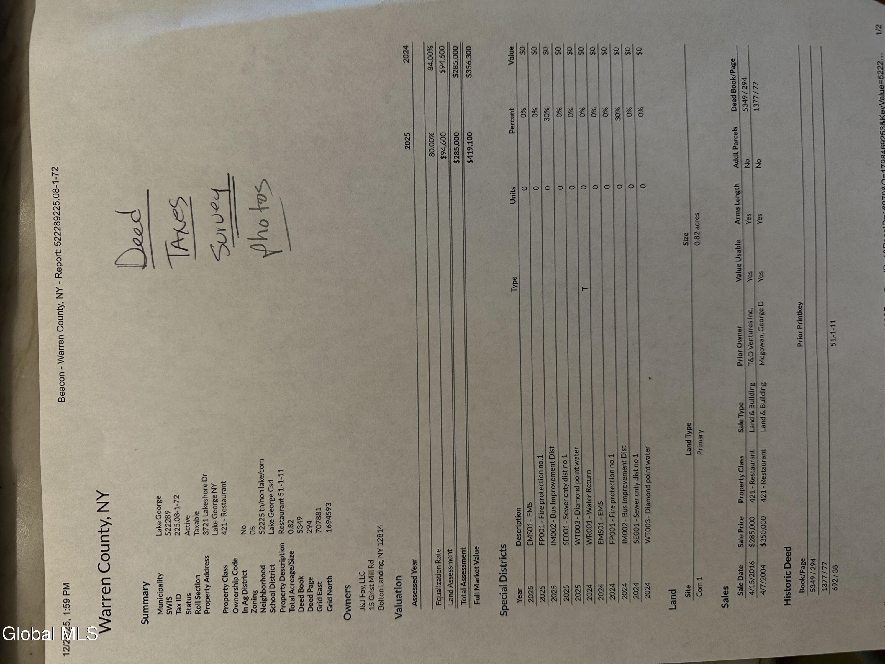 Outstanding high-visibility location on St RT 9N with strong traffic counts and exposure.Multi-use, High-density zoning creates a rare investment and redevelopment opportunity ( subject to approvals). Situated in the heart of the Lake George resort corridor between Lake George Village and Bolton Landing.Ideal for hospitality, retail,mixed-use, or residential development.Mixed-use zoning. 390 feet deep x 102 road frontage. A two-story wood barn is 18x28, and can be converted to residential use. Beach access across the street for LG property owners only. The listing agent is related to the seller.