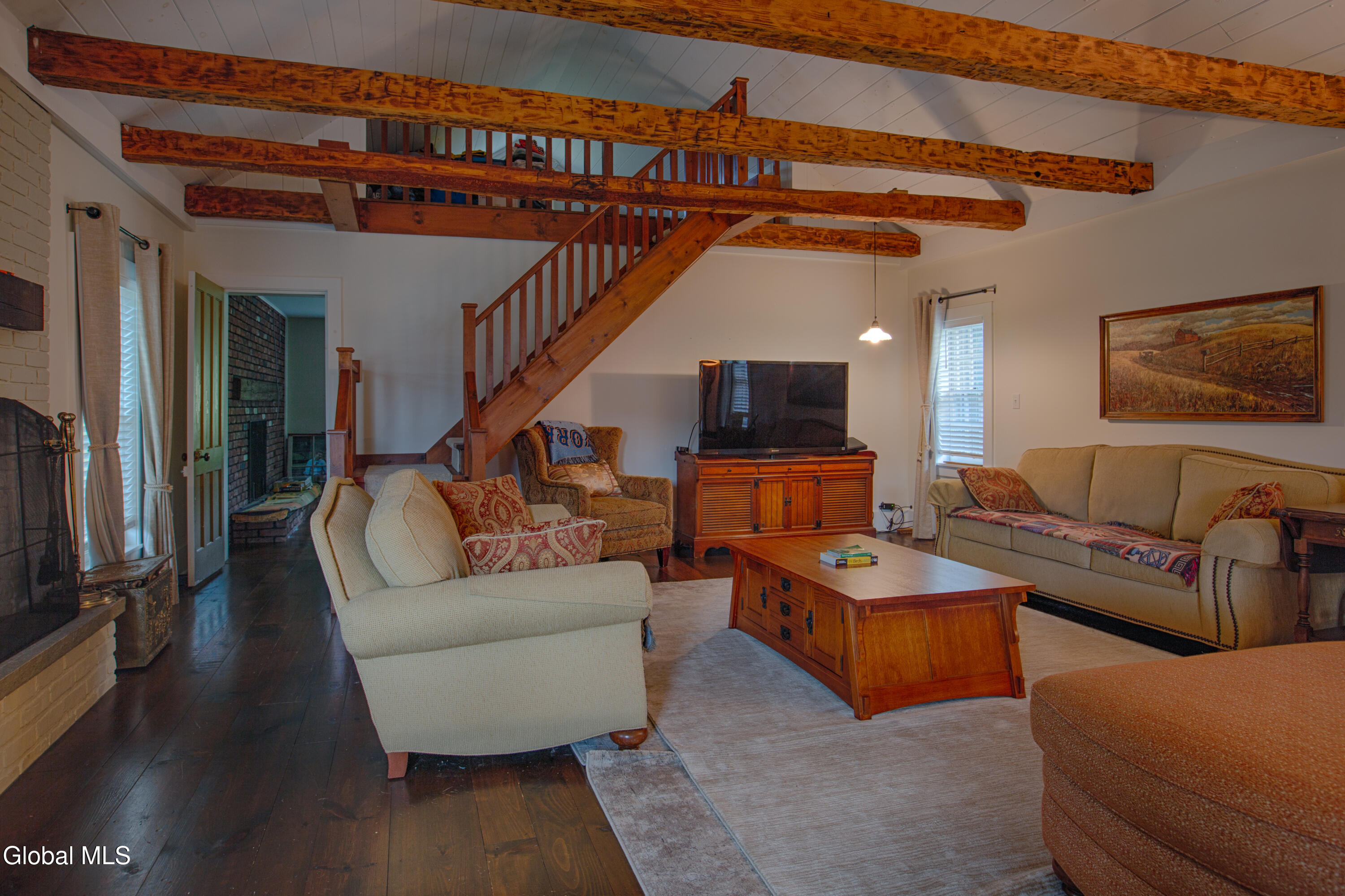 Tucked into 216 acres of fields and woodland, Hemlock Hill Farm is a rare offering that combines privacy, usable land, and historic character. The farmhouse sits far back from the road at the end of a long driveway, creating a remarkable sense of seclusion surrounded by open meadows, forest, and wide skies--while still being a short drive from Cooperstown. The property lies in a region once known for thriving hops farms in the late 19th and early 20th centuries, and Hemlock Hill itself was part of that agricultural history. Inside, the home blends traditional elements with thoughtful updates. The kitchen features new cabinetry, retro-style appliances, and a classic English wood cooking stove suited for everyday use or entertaining. Wide plank floors and exposed beams add warmth and character to the vaulted living room, creating an inviting gathering space with views of the surrounding landscape. Outdoors, a stone patio provides an ideal setting for al fresco dining, while raised garden beds offer the opportunity to grow produce just steps from the kitchen. A small heirloom apple orchard remains on the property as a nod to its agricultural past. Phinney's Creek runs through the property, adding a peaceful natural feature and the gentle sound of moving water. Walking trails wind through meadows and forest, and a swimming pond offers a refreshing place to cool off in warmer months. Outbuildings include a 1910 Hops Barn, a fully renovated two-story 1881 barn with flexible use potential, and a fenced chicken coop. The last two owners have enjoyed the property as a weekend and summer retreat, operating it as a classic gentleman's farm with open land suitable for horses, alpacas, or other small-scale agricultural uses--just minutes from Cooperstown's museums, festivals, and dining.