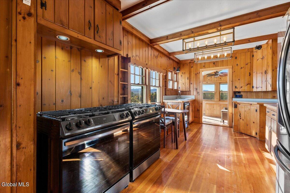 Welcome to 387 Chamberlain Road where the breathtaking views are what it's all about! Walk into this year round central Adirondack getaway and you are greeted with a large picture window that invites you to immeditaely look at the view overlooking the large neighboring open meadow where you will see wildlife through out the day. The backdrop of mountains show off beautiful sunset skies everyday! Enough about the views, the house features a beautiful brick wood burning fireplace in the main living area, a dining area with built ins, a large galley kitchen with modern stainless appliances including 2 gas ranges for the active chef in you. Wait, don't forget to check out the stunning views from the kitchen and also the adjoining sitting area! There are 2 large bedrooms and a full bath with a jetted tub shower. Outside a large expansive deck and a blue stone patio await for relaxing and entertaiing with the view to enjoy. Additonal features include central heat and air conditioning, an attached 2 car garage, full walkout basement for storage and a low maintaince yard. You are located just minutes to nearby area lakes, hiking trails, Indian Lake town center, Gore Mountain and Garnet Lake Lodge for winter skiing, A great place to enjoy year round. Schedule your showing today! You'll be glad you did!