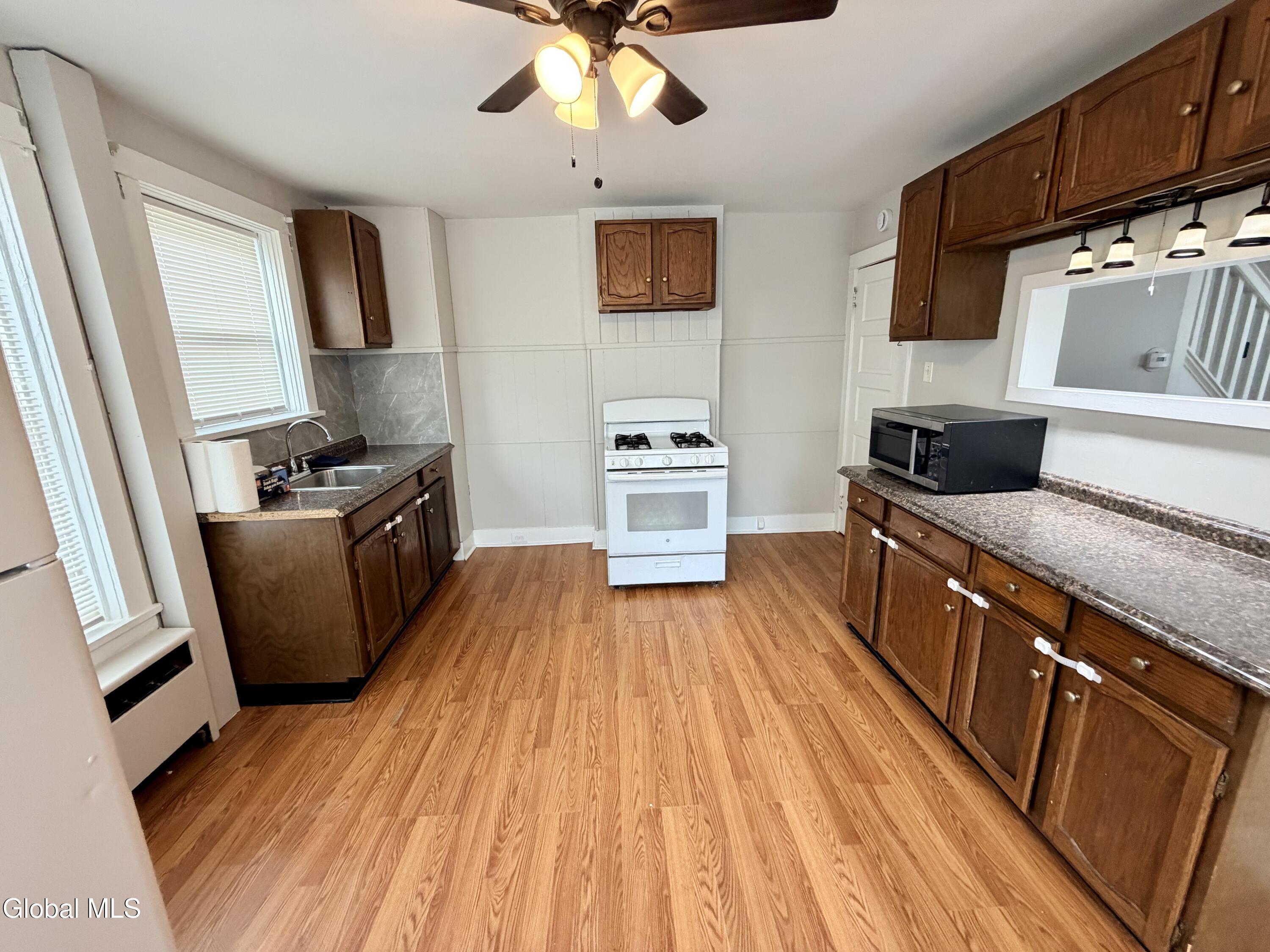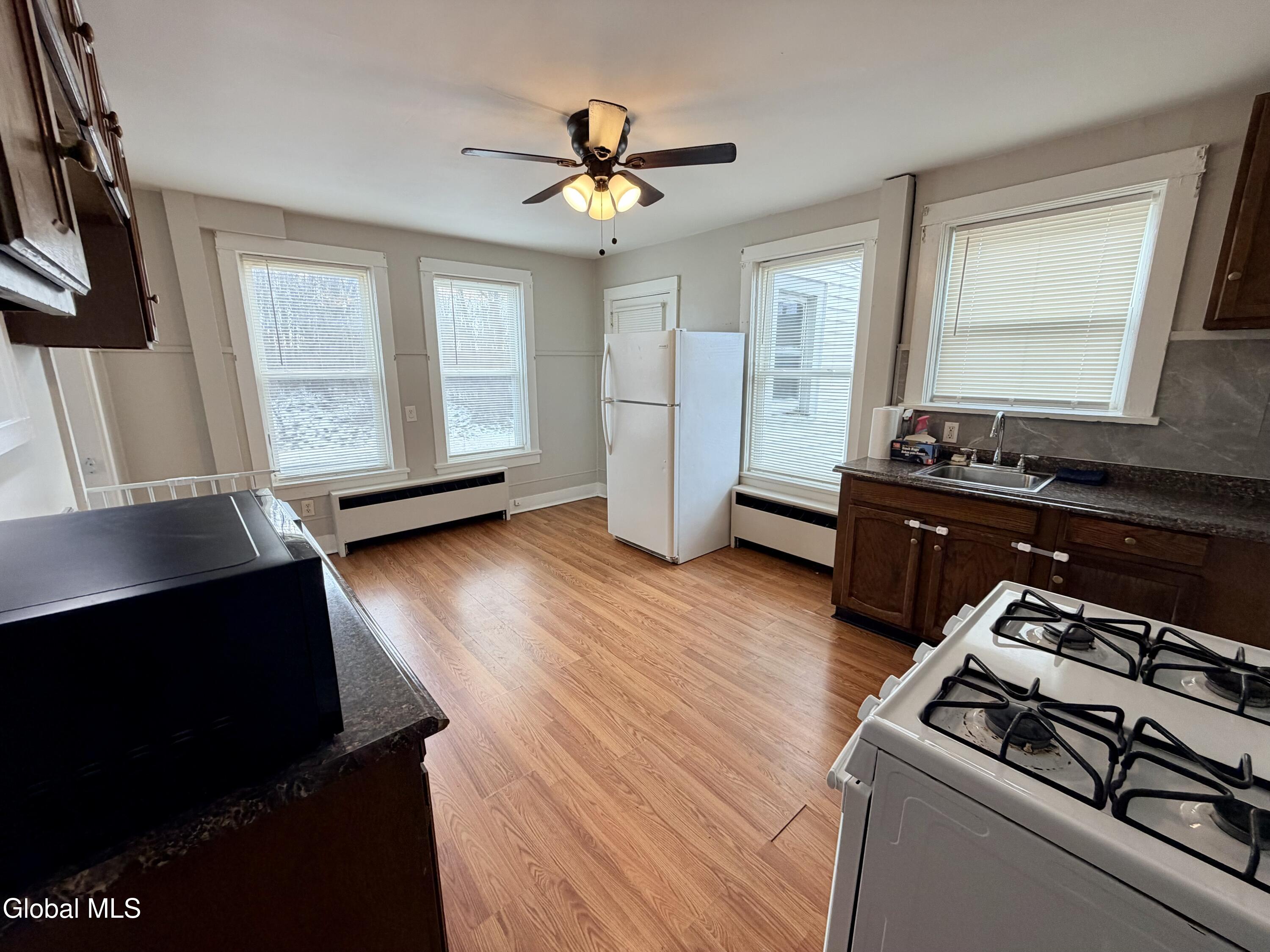 Well-maintained duplex for rent in the heart of Amsterdam, ideally located within walking distance of the city's largest park featuring a pool and abundant outdoor recreation. This spacious home is perfect for families. The main floor offers an enclosed front porch, an oversized living room, and a large kitchen. A staircase leads to the second floor, which includes three generously sized bedrooms and a full bathroom. The full basement provides a utility sink, washer and dryer hookups, and ample storage space. Tenants are responsible for lawn care and snow removal; a lawn mower is provided. Enjoy ample outdoor space ideal for entertaining or relaxing. Pets are welcome with an additional security deposit. Minimum 12-month lease required.