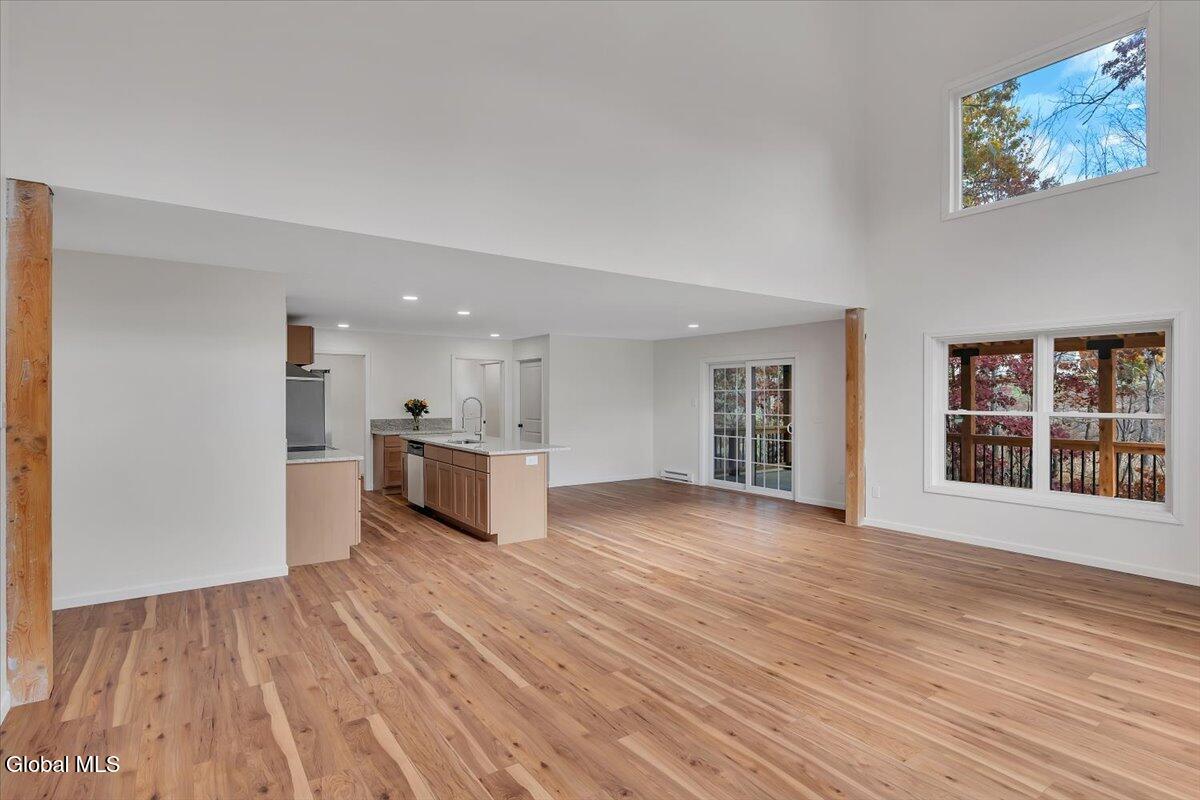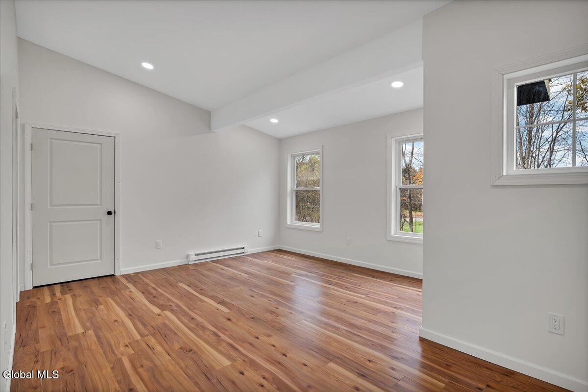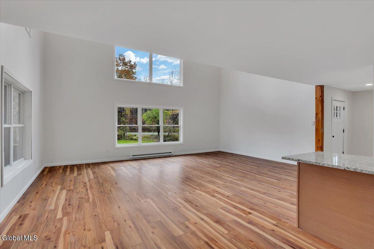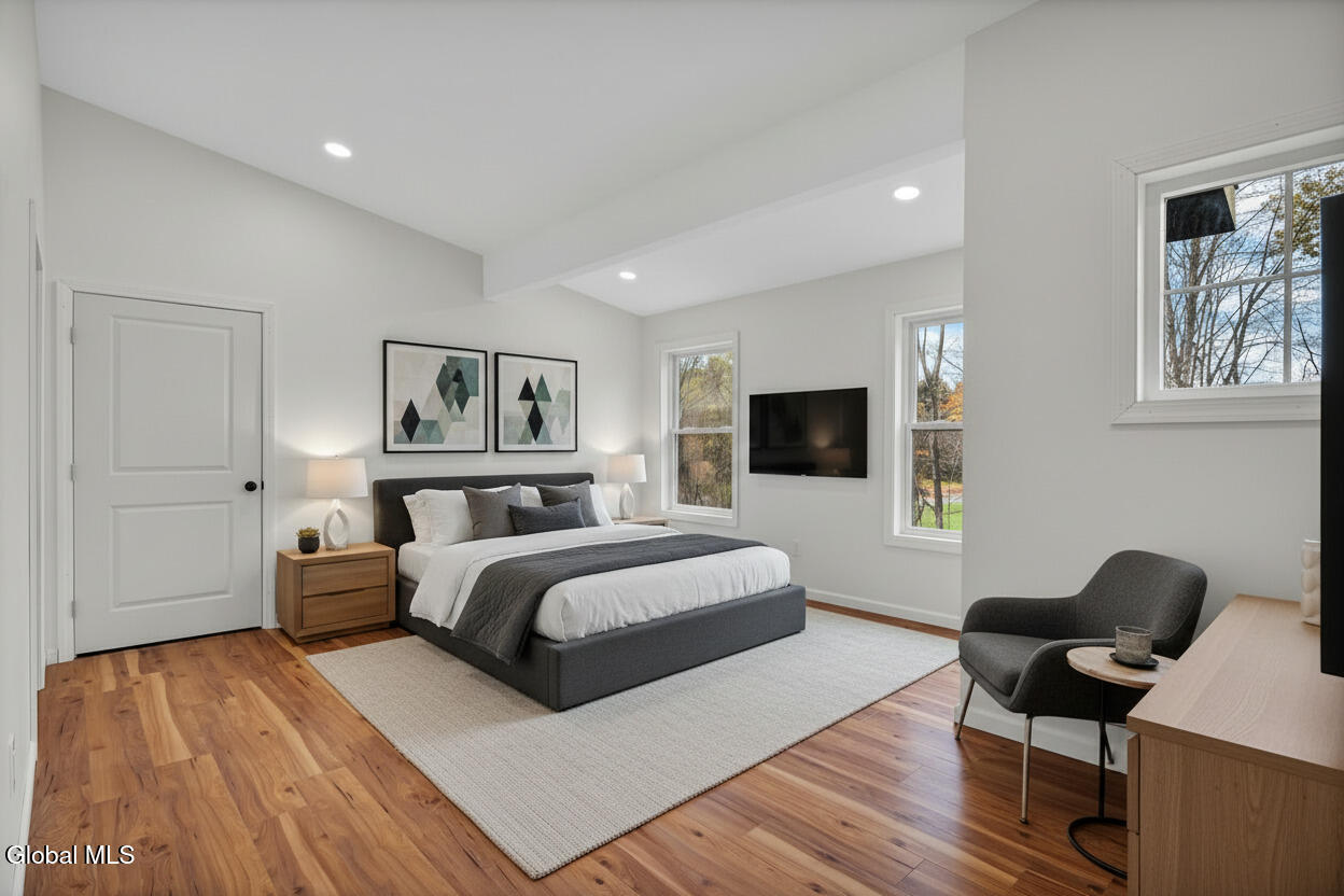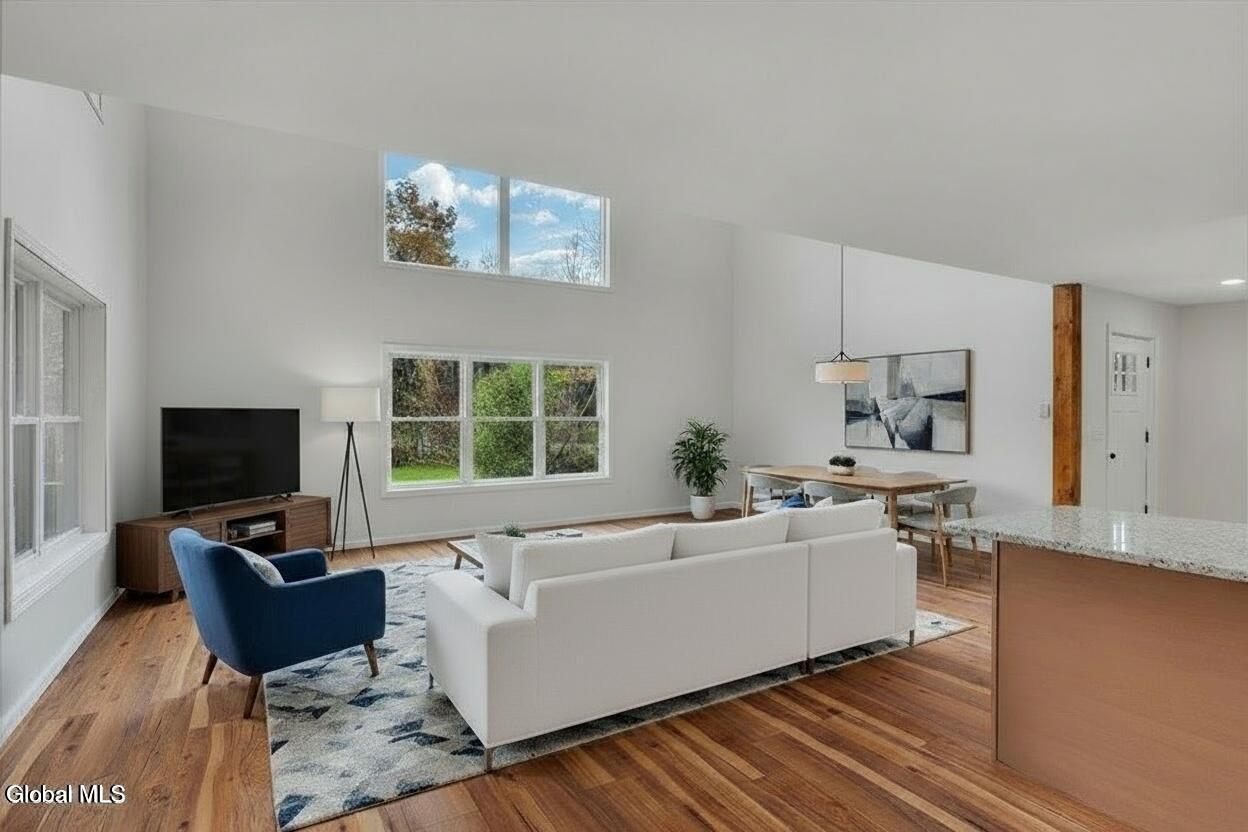 Move in now to new construction without the wait! This beautifully crafted custom contemporary 2025 new-build sits on 4.8 serene acres in the Averill Park School District. It offers 3 spacious bedrooms and 3 full baths, which includes a main-level bedroom with a full bath for convenient first-floor living. The open layout features a modern kitchen that flows into the living room with two-story cathedral ceilings and expansive windows. A generous walk-in pantry, first-floor laundry, and charming covered porch enhance everyday convenience and outdoor enjoyment. The luxurious primary suite boasts cathedral ceilings, a large walk-in closet, and a spa-inspired bathroom with a soaking tub with a separate shower. Additional highlights include efficient baseboard heat with the addition of ductless mini-splits, a durable metal roof, egress window in the basement for future finishing, and a spacious 2-car garage. Enjoy privacy, tranquility, and endless possibilities with 4.8 acres, all just 15 minutes to shops, restaurants & amenities. *Survey and Floorplan are in Docs *Split Units are being currently installed in addition to the baseboards.