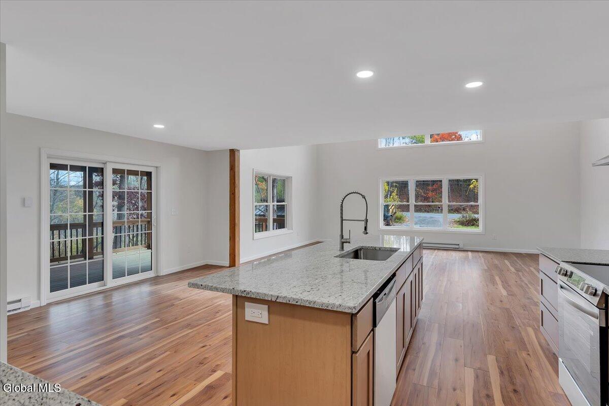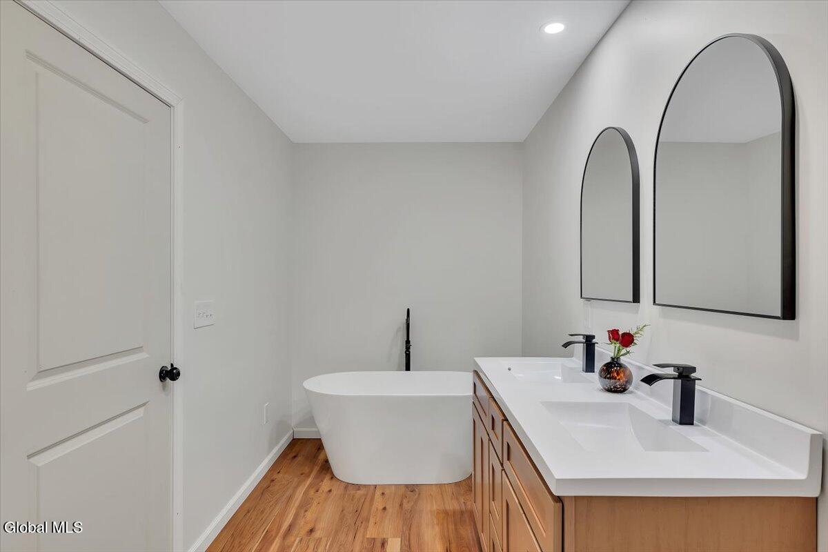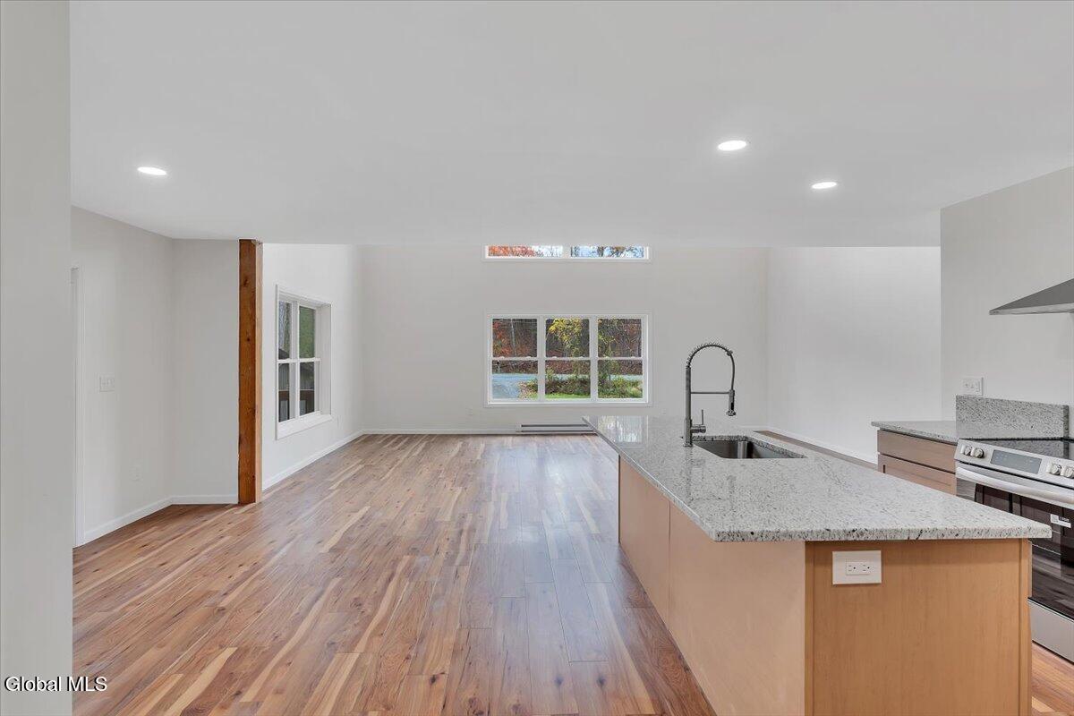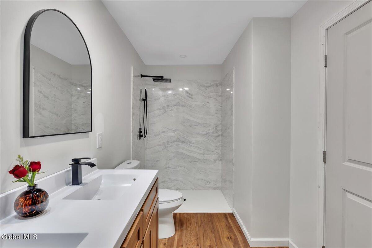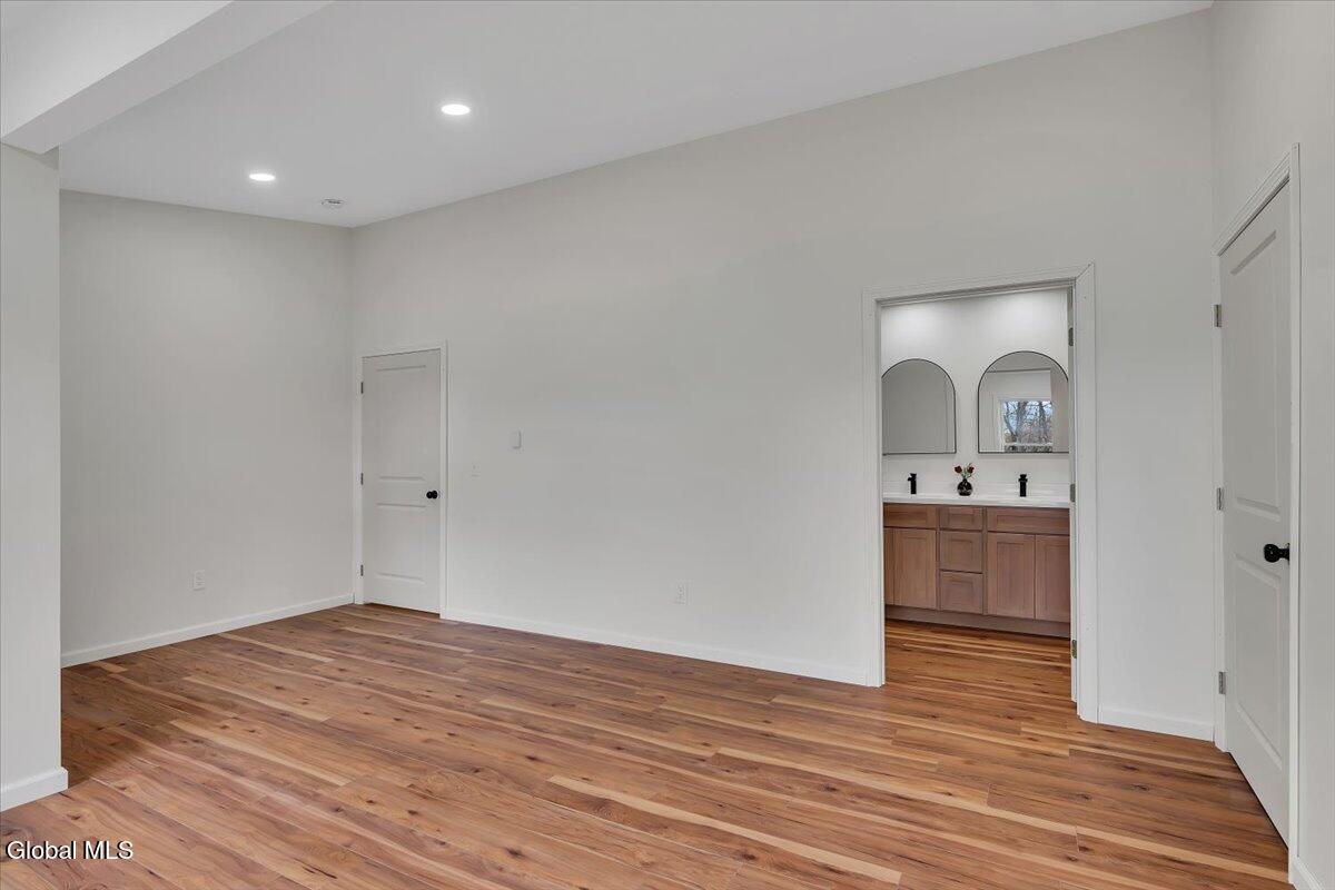 Move in now to new construction without the wait! This beautifully crafted custom contemporary 2025 new-build sits on 4.8 serene acres in the Averill Park School District. It offers 3 spacious bedrooms and 3 full baths, which includes a main-level bedroom with a full bath for convenient first-floor living. The open layout features a modern kitchen that flows into the living room with two-story cathedral ceilings and expansive windows. A generous walk-in pantry, first-floor laundry, and charming covered porch enhance everyday convenience and outdoor enjoyment. The luxurious primary suite boasts cathedral ceilings, a large walk-in closet, and a spa-inspired bathroom with a soaking tub with a separate shower. Additional highlights include efficient baseboard heat with the addition of ductless mini-splits, a durable metal roof, egress window in the basement for future finishing, and a spacious 2-car garage. Enjoy privacy, tranquility, and endless possibilities with 4.8 acres, all just 15 minutes to shops, restaurants & amenities. *Survey and Floorplan are in Docs *Split Units are being currently installed in addition to the baseboards.