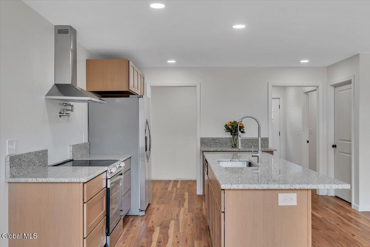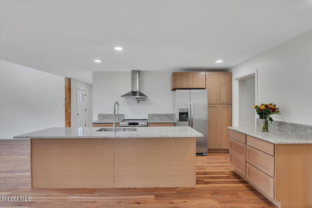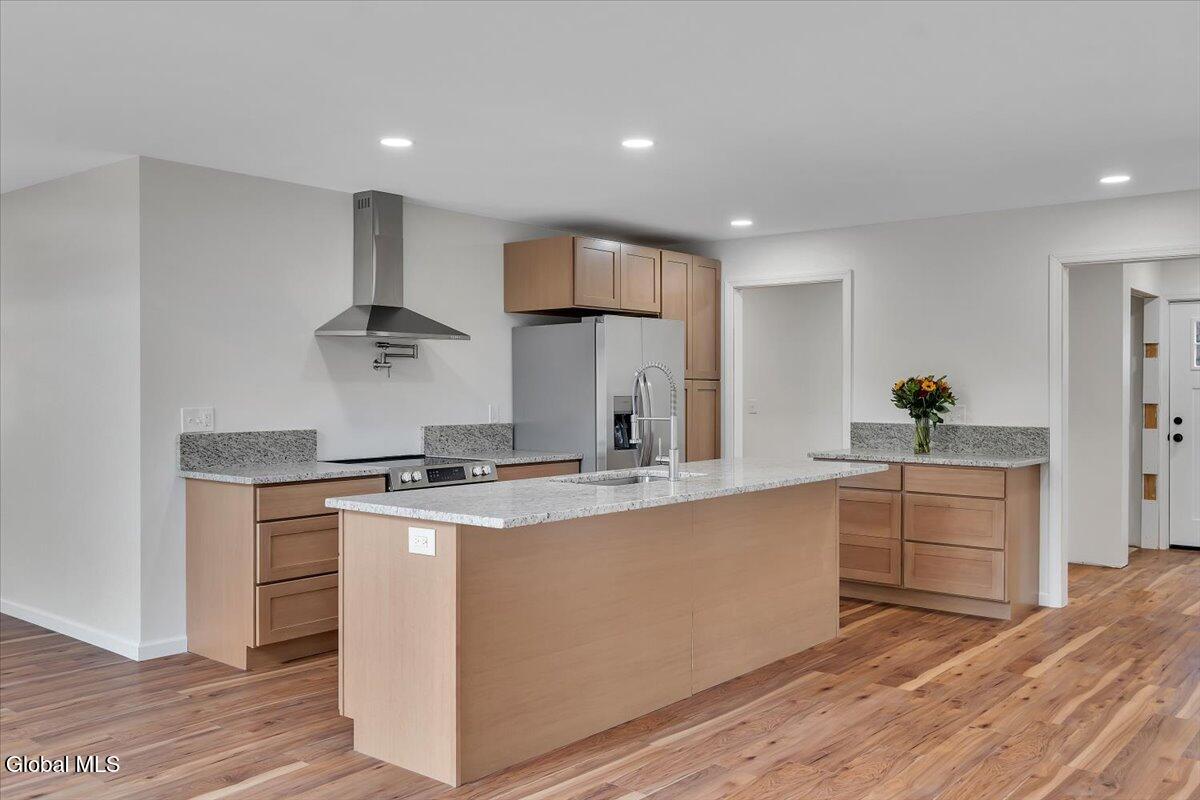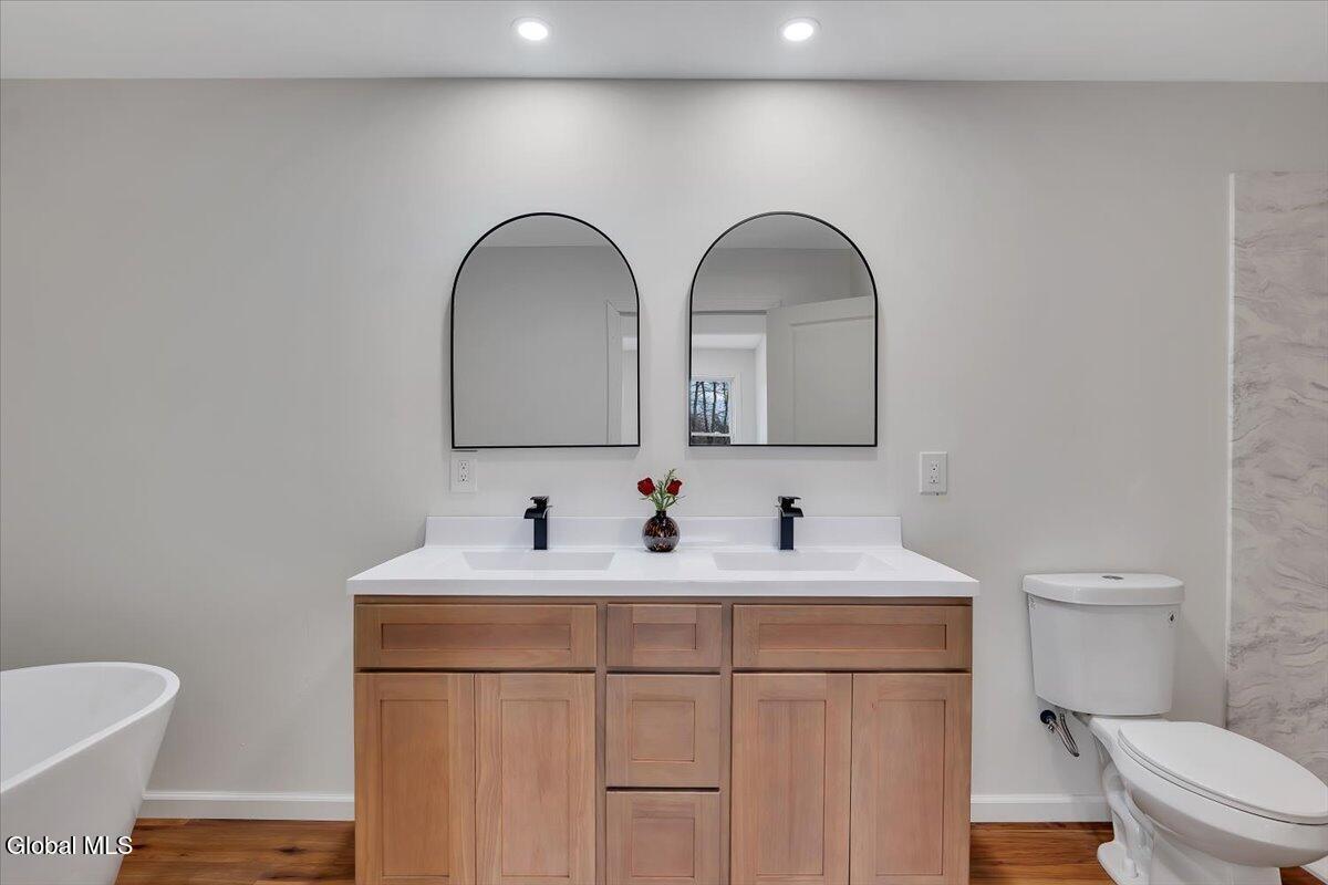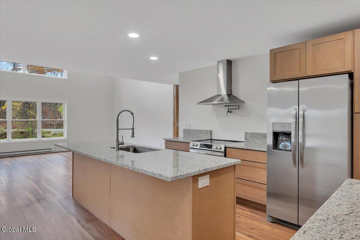 Move in now to new construction without the wait! This beautifully crafted custom contemporary 2025 new-build sits on 4.8 serene acres in the Averill Park School District. It offers 3 spacious bedrooms and 3 full baths, which includes a main-level bedroom with a full bath for convenient first-floor living. The open layout features a modern kitchen that flows into the living room with two-story cathedral ceilings and expansive windows. A generous walk-in pantry, first-floor laundry, and charming covered porch enhance everyday convenience and outdoor enjoyment. The luxurious primary suite boasts cathedral ceilings, a large walk-in closet, and a spa-inspired bathroom with a soaking tub with a separate shower. Additional highlights include efficient baseboard heat with the addition of ductless mini-splits, a durable metal roof, egress window in the basement for future finishing, and a spacious 2-car garage. Enjoy privacy, tranquility, and endless possibilities with 4.8 acres, all just 15 minutes to shops, restaurants & amenities. *Survey and Floorplan are in Docs *Split Units are being currently installed in addition to the baseboards.