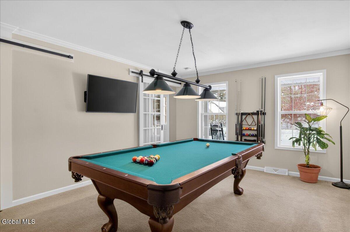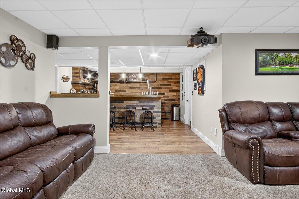 Welcome to this well maintained 4 bedroom, 2.5 bath home located in the highly desirable Town of Wilton and Saratoga Schools. Proudly owned by just one owner, this home has been meticulously cared for and thoughtfully updated throughout the years. Inside, you will find a bright and functional layout ideal for both everyday living and entertaining. The inviting primary suite features vaulted ceilings, California Closets and a private ensuite bath, creating a true retreat. Situated on a spacious .7 acre lot, there is plenty of room to spread out and enjoy the outdoors. The finished basement expands your living space with a dedicated theater room, wet bar and playroom, perfect for hosting game days, movie nights, or gatherings with friends and family. With generous bedroom sizes, updated systems, and pride of ownership evident throughout, this home delivers comfort, style, and space in one of the area's most sought after locations. New roof 2023, HVAC 2019, HW Tank 2025. Bar Stools, Theater Room equipment and furnishings included providing you the opportunity to enjoy the space as soon as you move in.