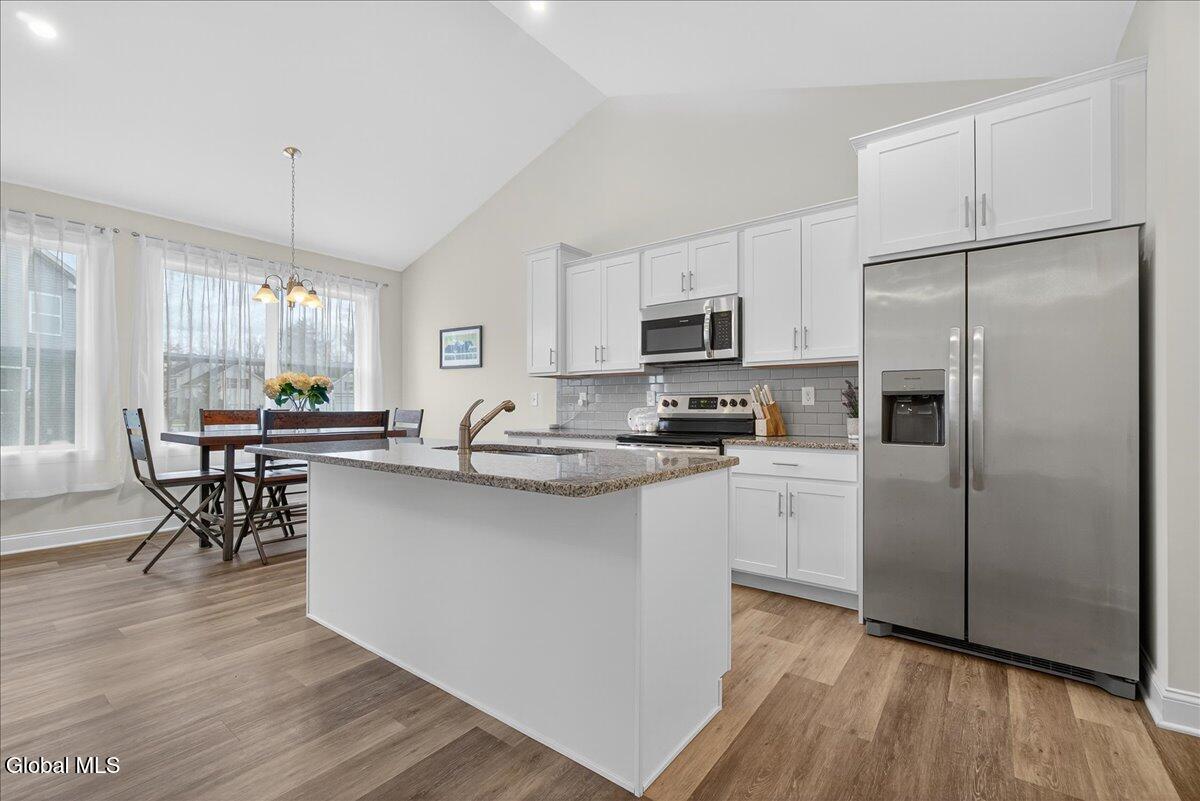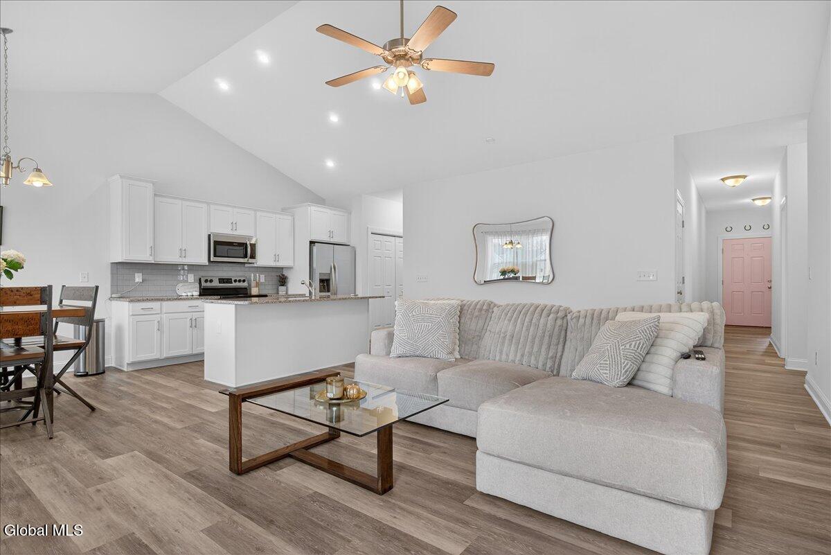 Walk in the door and it feels like home! This Lovingly cared for Townhouse is ready for it's new owner. A very clean unit with so much potential to make it your own. A cozy front hall breaks into a soaring great room with lots of natural light and a wonderful cathedral ceiling. The open floor plan lends to great conversation and easy living. A clean and bright kitchen with a tiled back splash, granite countertops and a great island anchor the room. The perfect sized deck allows for time outdoors. There are 3 bedroom and two full baths, including a spacious primary suite with a very nice walk in closet and private bath. 1st floor laundry too! This home is set up and ready with everything our modern lives have come expect. Oh, don't forget the basement! An interior entry brings you down to the enormous space and potential just underneath your feet, go ahead expand the home, make a gym, work shop, or whatever you can think of! Public utilities keep everything easy! This home can fit so many lifestyles, you just need to decide to make it your own. Centrally located to schools, shopping and entertainment. Come to see this one today!