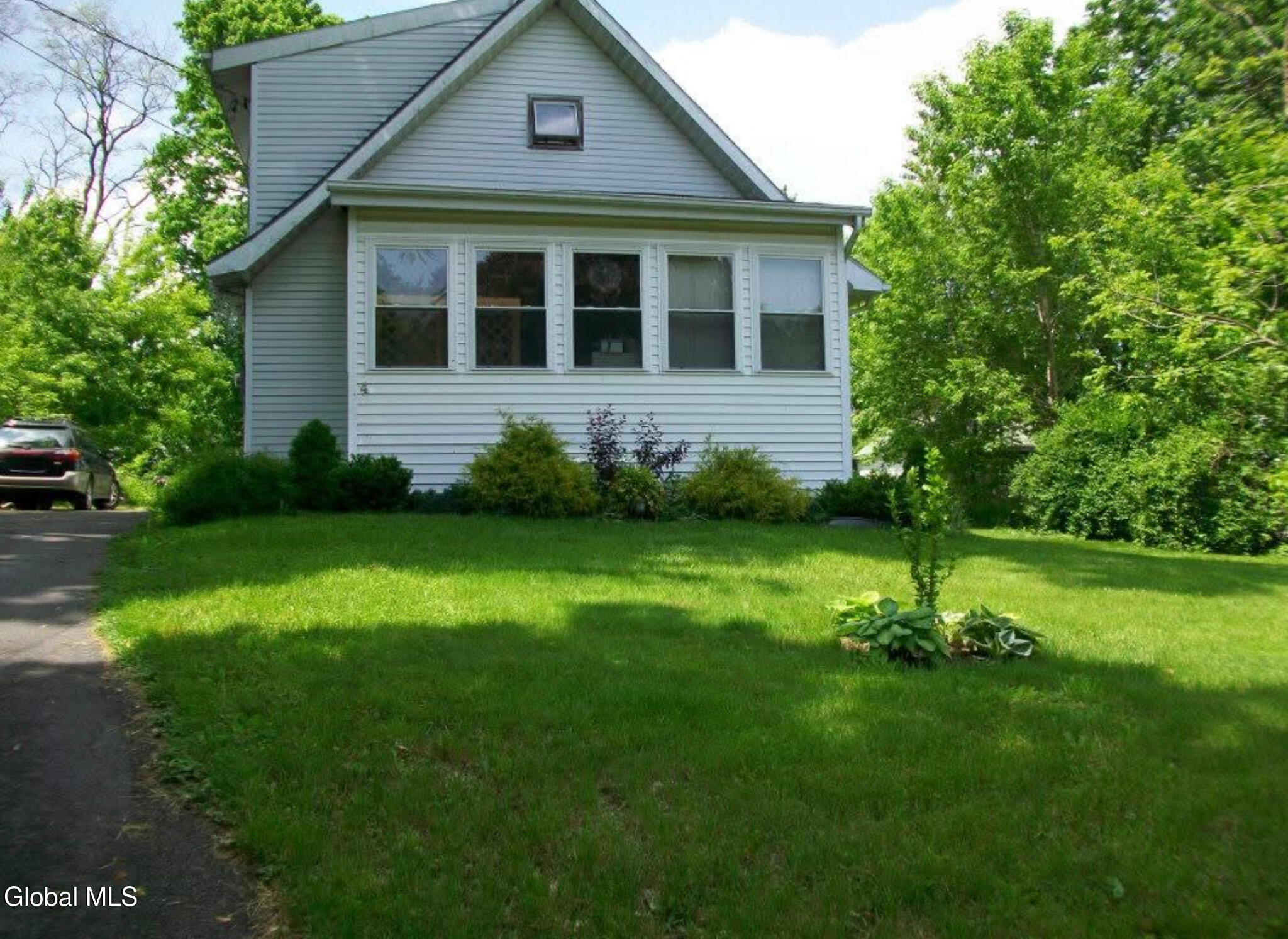 Lovely cape style home on quiet street. Flat rear yard with raised garden beds and cute deck. Kitchen updated a year ago with Stainless Steel appliances and granite counter tops. Large dining room with hardwood flooring and natural woodwork. (minisplit in dining room is not functional). Half bath/laundry room area. Large living room with hardwood flooring and decorative window. First floor bedroom features hardwood flooring. Enclosed front porch. Head through the sitting room to the upstairs. New carpet upstairs in 2025. Large storage closet on landing as well as under eave storage. Bathroom with tub and shower (needs some updating). 2nd Bedroom with walk in closet and third large bedroom with good storage. Roof and boiler new in 2014. Oil hot water heat. Town water and septic. Some exterior photos are older to show home prior to bush growth.