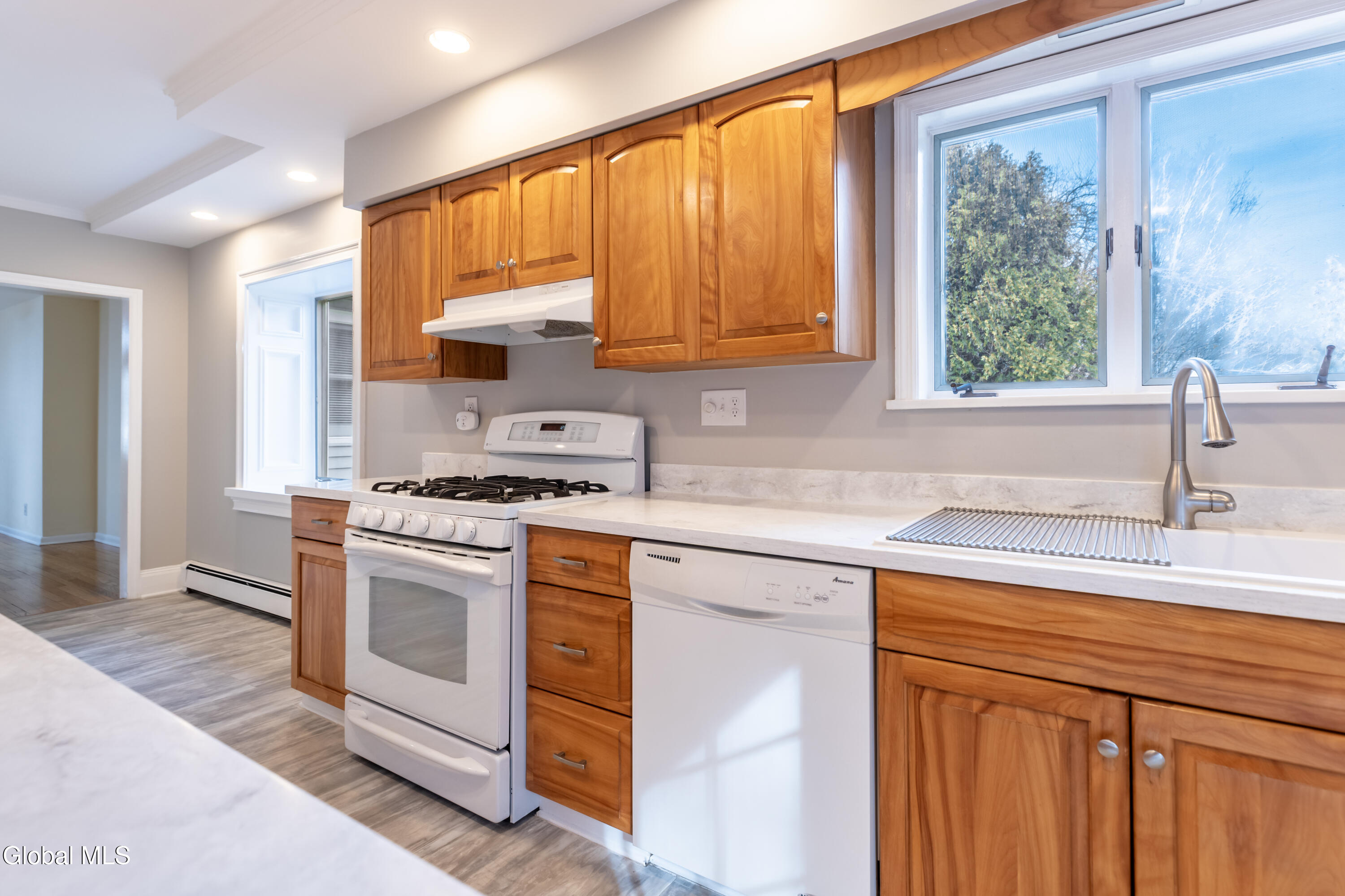Highest and Best Offer Due by Sunday 1/18/26 at 5pm. Classic Ranch Bungalow in pristine condition! Featuring gleaming hardwoods, 3 bedrooms, kitchen, living room/dining area combo, full bathroom, laundry closet all on the first floor! Basement has a large family room, full bathroom, workshop area and wet bar. Enjoy your private back yard from your composite deck. Even more storage in your oversized garage. Large flat yard, public utilities, gas. Located in the heart of East Greenbush minutes to Albany, shopping restaurants, library and bus.