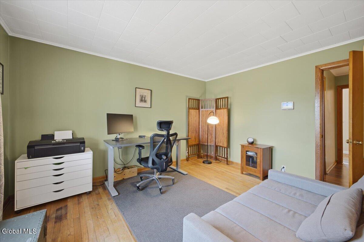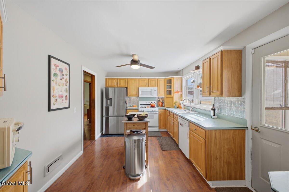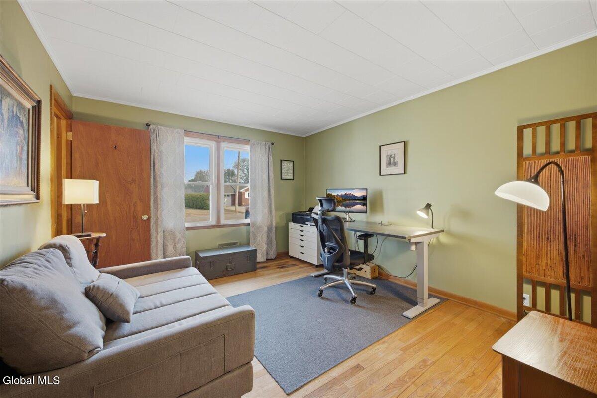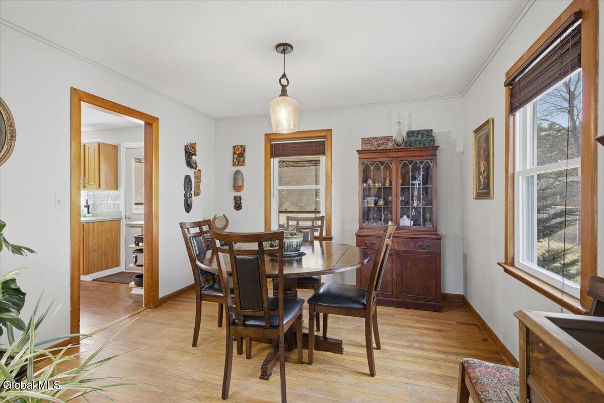 Charming Cape-style home nestled in a desirable South Glens Falls neighborhood. This spacious property offers 4 bedrooms, 2 full baths, a semi-modern kitchen, formal dining room, inviting 3-season porch, and convenient first-floor laundry. The partially finished basement provides excellent additional living space, along with a small workshop area perfect for hobbies or home projects. Outside, enjoy a huge, fenced backyard. A wonderful opportunity you won't want to miss!