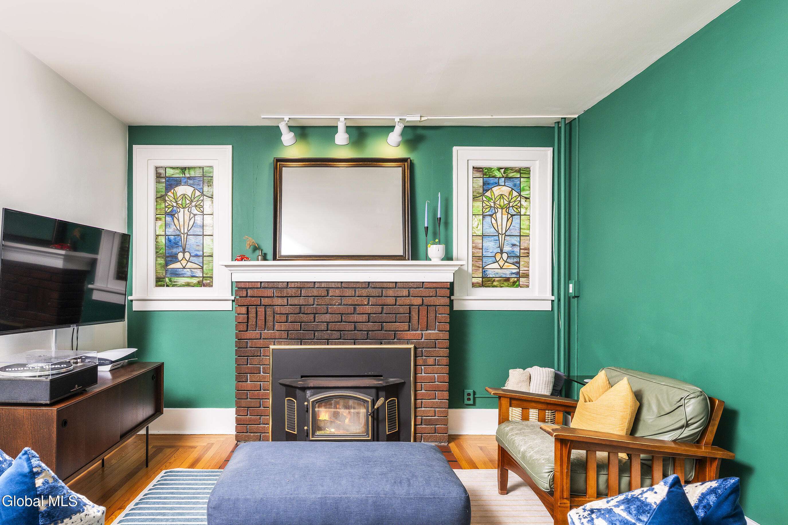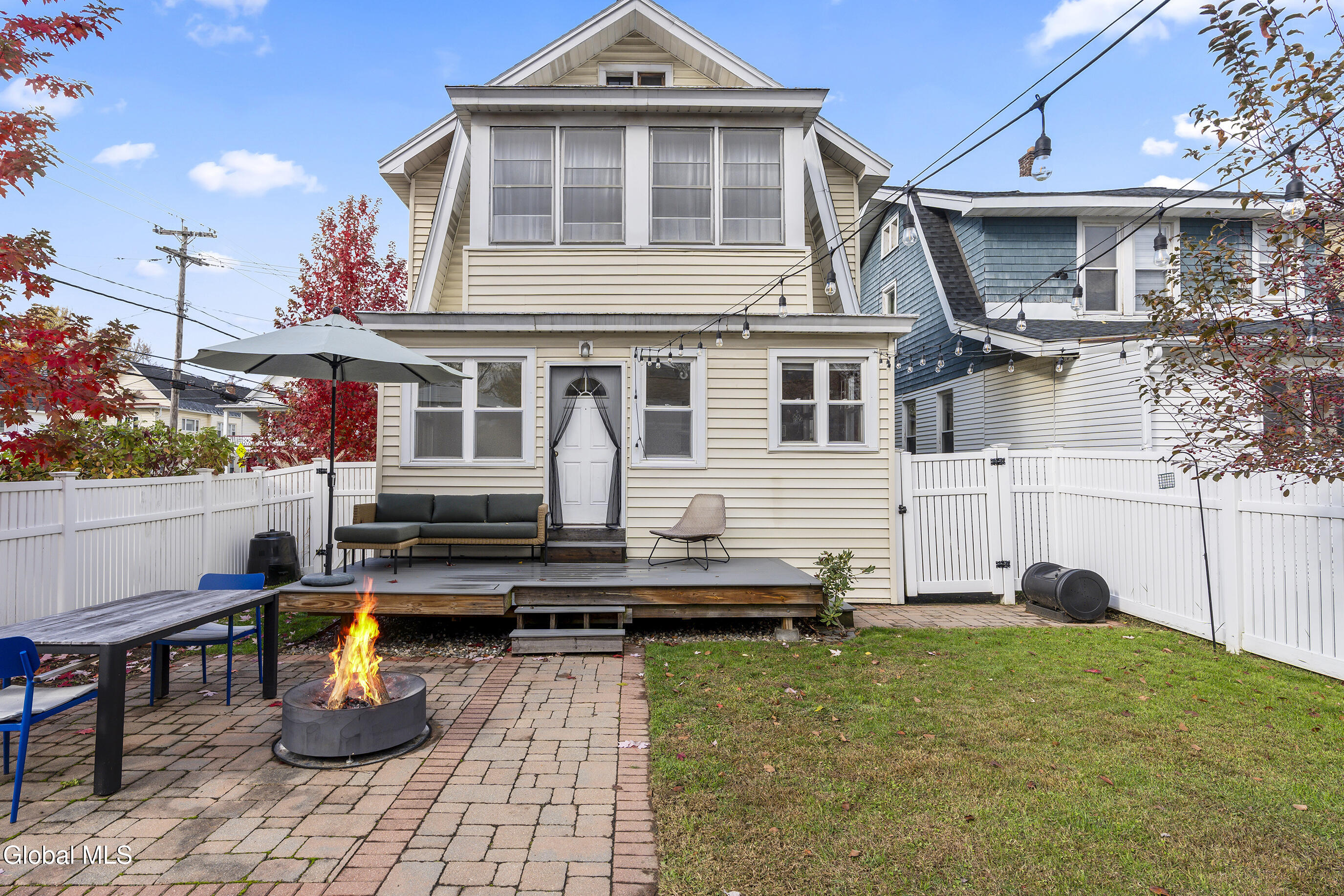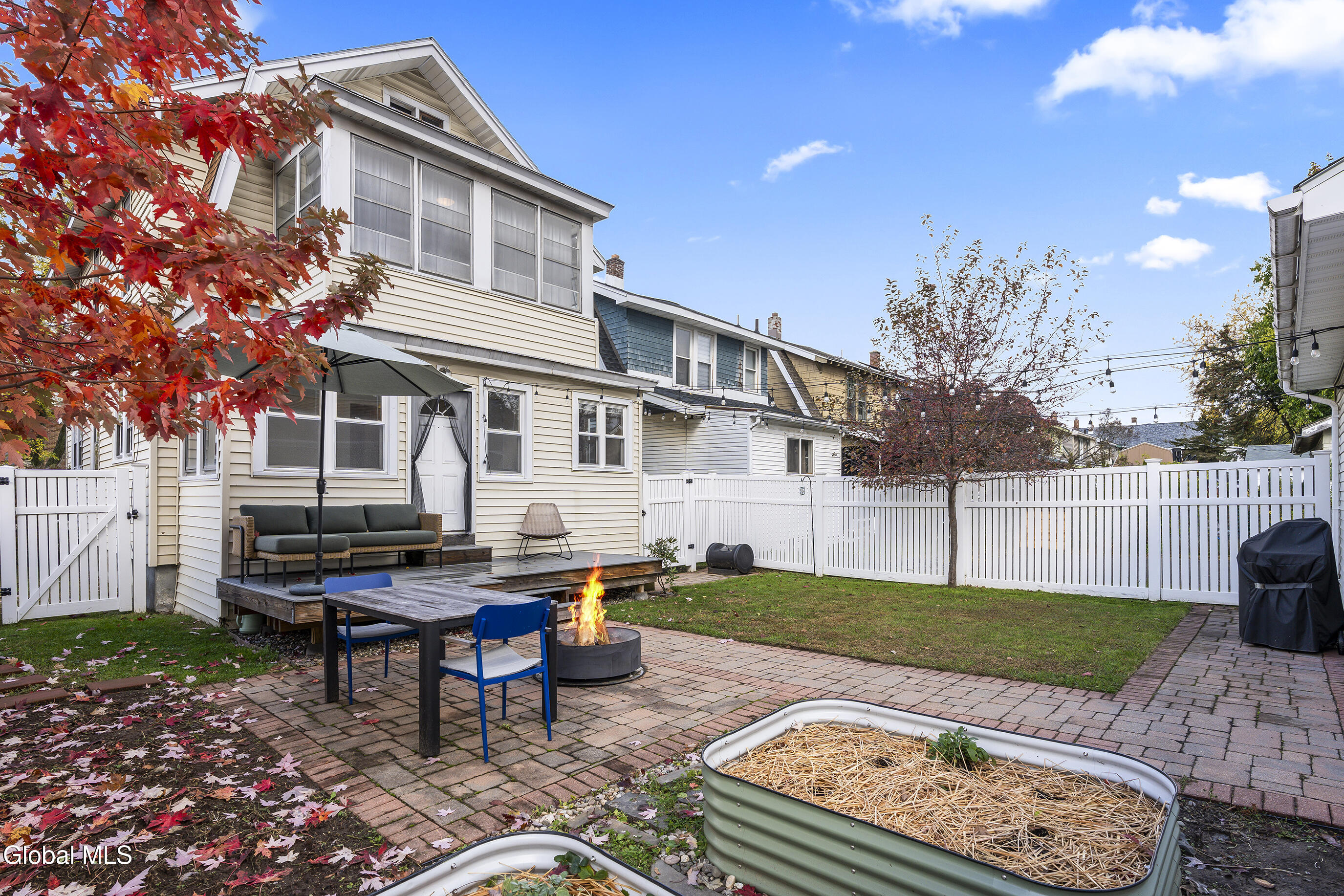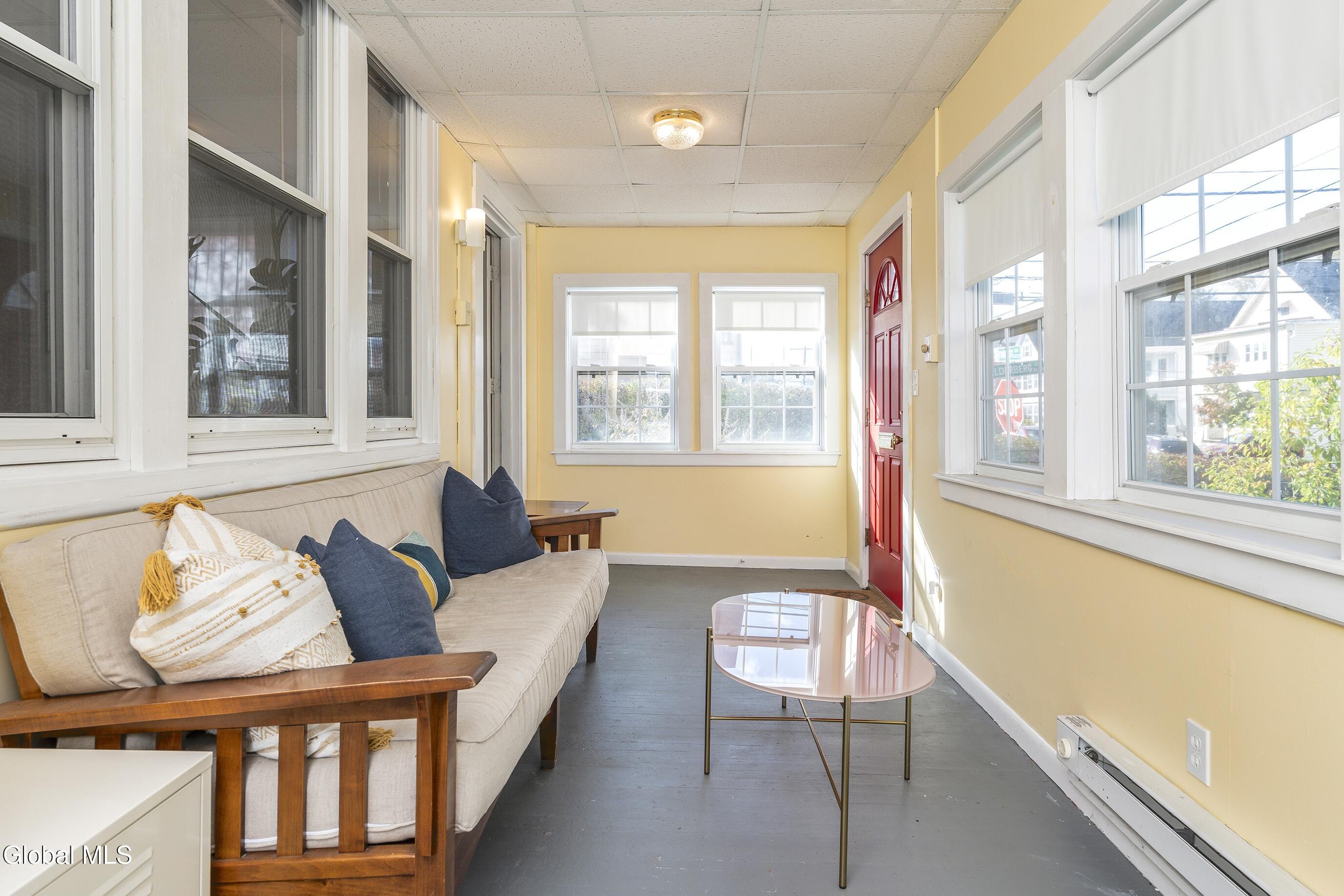 Character meets modern comfort in this beautifully maintained two-story Albany home. Step into gleaming hardwood floors that flow throughout this 1920's classic leading you into a living room where stained-glass windows cast warm, colorful light and a working wood-burning stove creates a natural gathering spot. The updated kitchen offers the comfort of radiant-heated floors, the convenience of stainless steel appliances and opens to a designated dining room for easy everyday meals and entertaining. Upstairs, enjoy four spacious, comfortable bedrooms and updated full bath. Space feels easy and intentional, with a clever collection of bonus areas: an enclosed, heated front sunroom that extends your living space, a practical mudroom with direct yard access, and an enclosed balcony off a bedroom, perfect for journaling, yoga, or a quiet call. Outside, the private vinyl-fenced yard sets the scene, with a floating deck perfect for outdoor dining and relaxed evenings. Practical wins abound; a detached 2-car garage plus off-street parking, on-demand high-efficiency heat & hot water, replacement windows, a vintage Pittsburgh potty in the basement, and a full walk-up attic for all the gear life brings. Location seals it: minutes to Albany Med and St. Peter's, and an easy walk to local eateries, coffee, parks, and neighborhood favorites. Beautifully maintained and truly loved, this home is ready to host your first holiday gathering—pie in the oven, fire crackling, guests arriving with smiles. Welcome home!