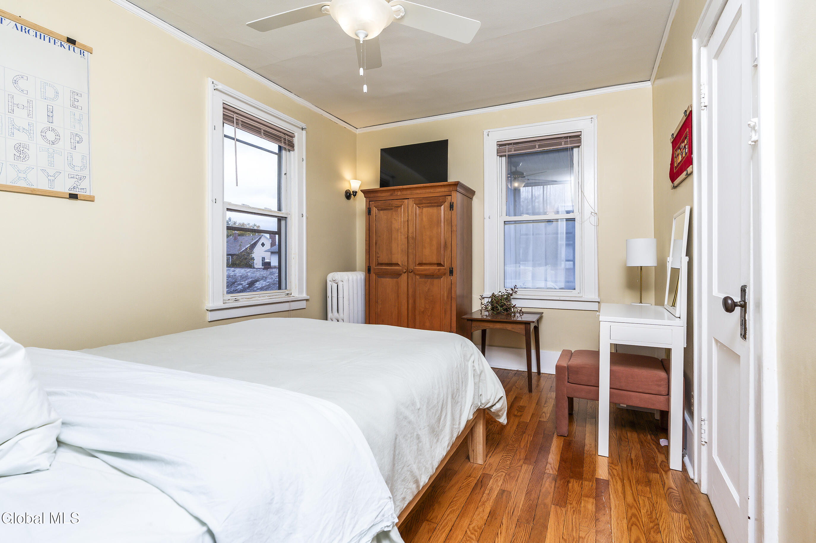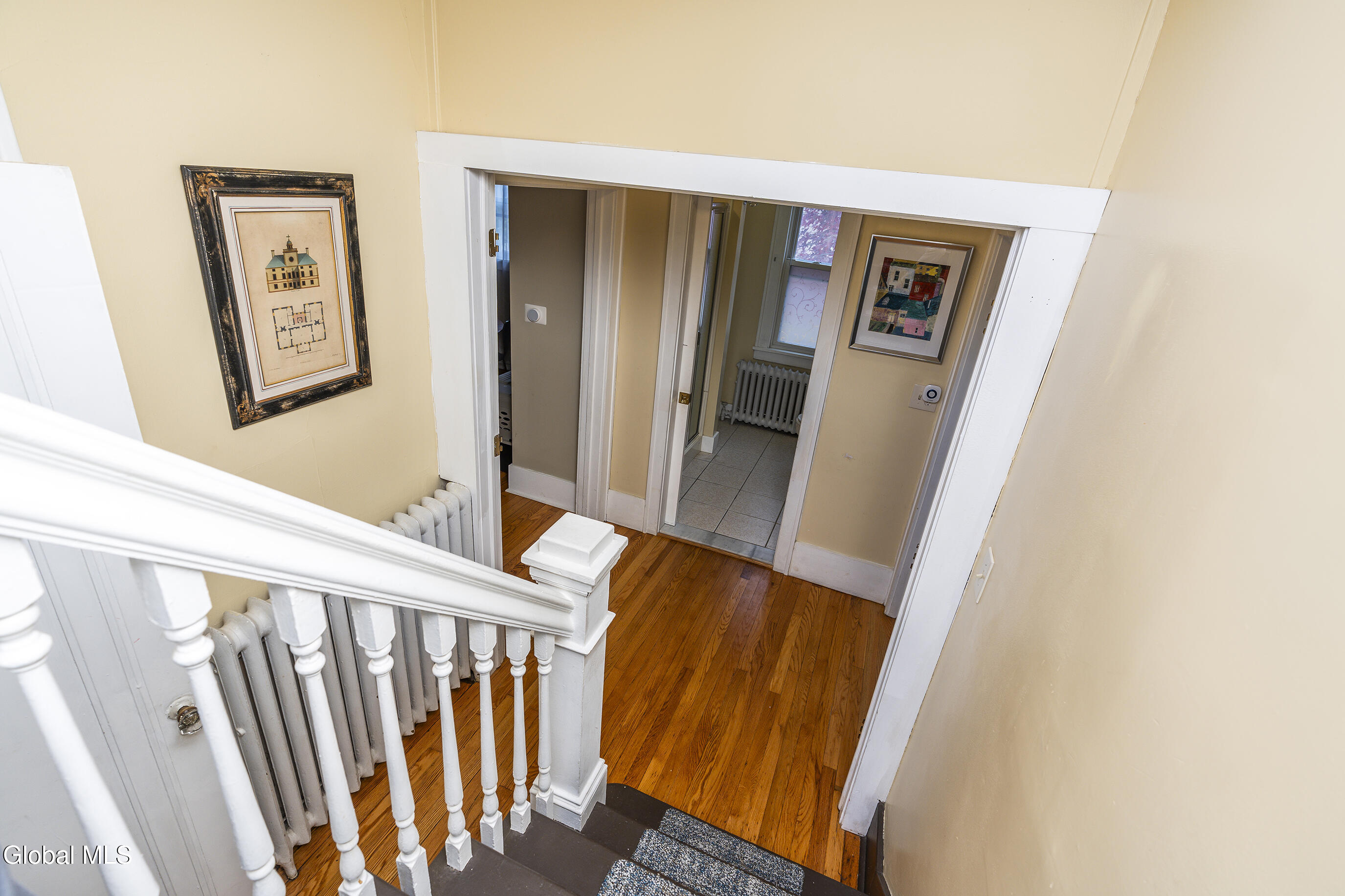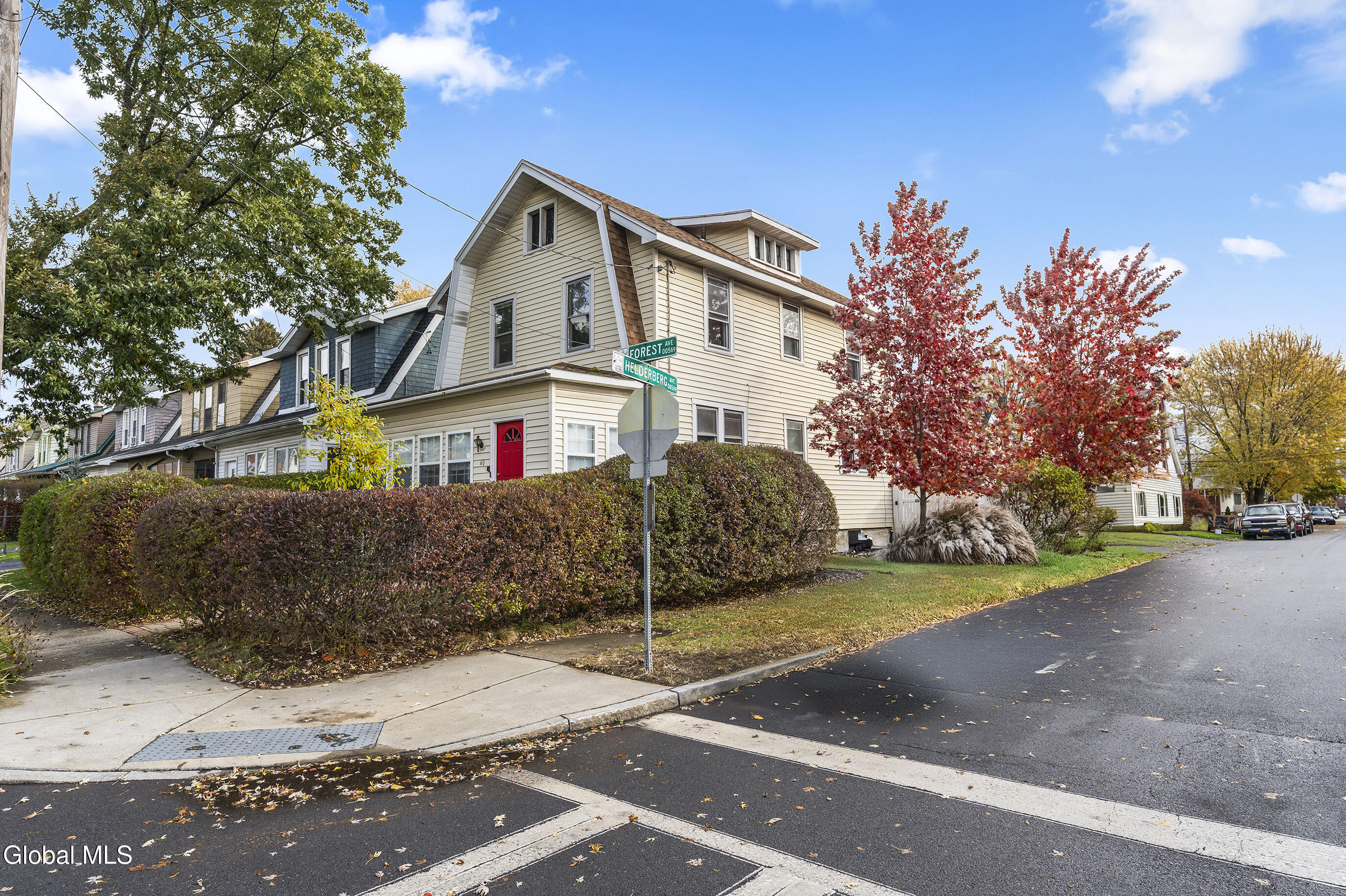Character meets modern comfort in this beautifully maintained two-story Albany home. Step into gleaming hardwood floors that flow throughout this 1920's classic leading you into a living room where stained-glass windows cast warm, colorful light and a working wood-burning stove creates a natural gathering spot. The updated kitchen offers the comfort of radiant-heated floors, the convenience of stainless steel appliances and opens to a designated dining room for easy everyday meals and entertaining. Upstairs, enjoy four spacious, comfortable bedrooms and updated full bath. Space feels easy and intentional, with a clever collection of bonus areas: an enclosed, heated front sunroom that extends your living space, a practical mudroom with direct yard access, and an enclosed balcony off a bedroom, perfect for journaling, yoga, or a quiet call. Outside, the private vinyl-fenced yard sets the scene, with a floating deck perfect for outdoor dining and relaxed evenings. Practical wins abound; a detached 2-car garage plus off-street parking, on-demand high-efficiency heat & hot water, replacement windows, a vintage Pittsburgh potty in the basement, and a full walk-up attic for all the gear life brings. Location seals it: minutes to Albany Med and St. Peter's, and an easy walk to local eateries, coffee, parks, and neighborhood favorites. Beautifully maintained and truly loved, this home is ready to host your first holiday gathering—pie in the oven, fire crackling, guests arriving with smiles. Welcome home!