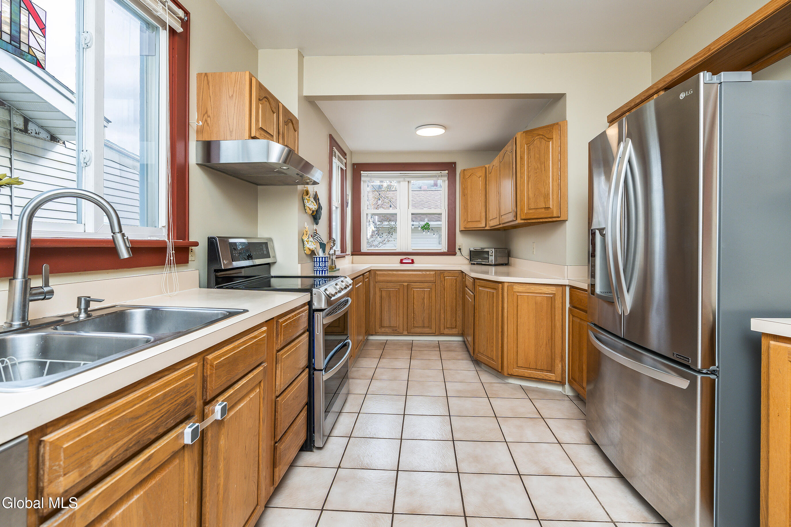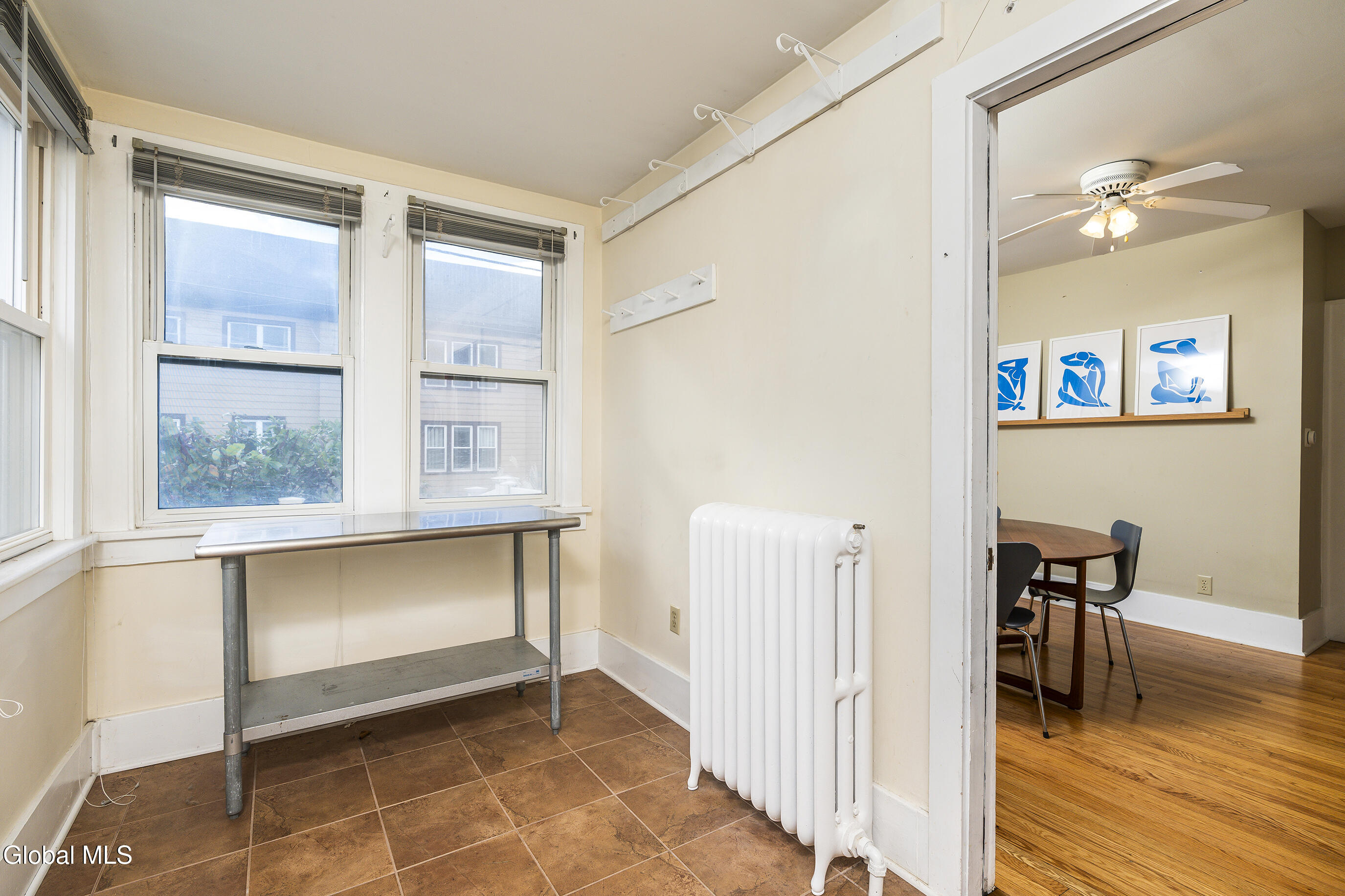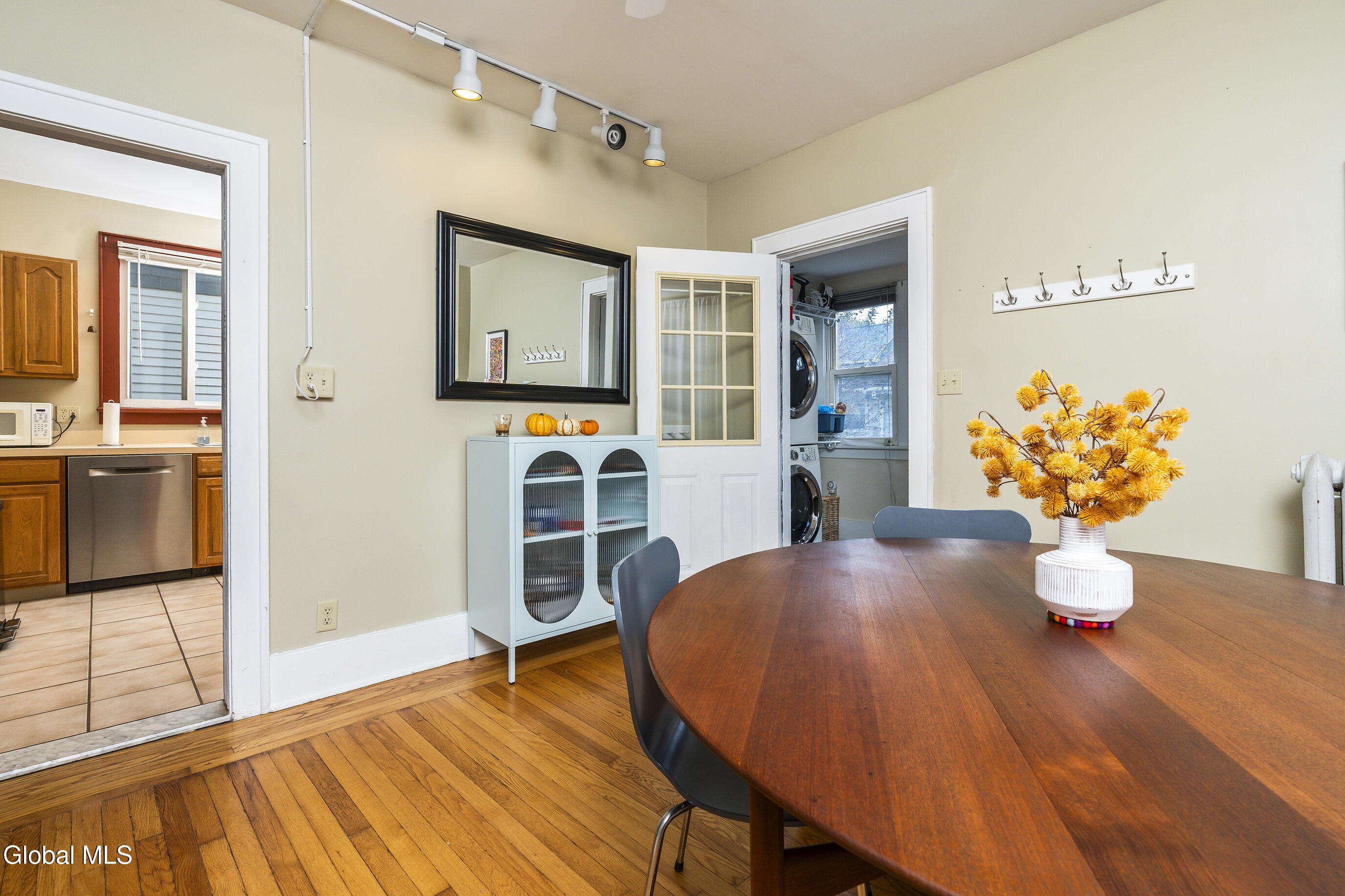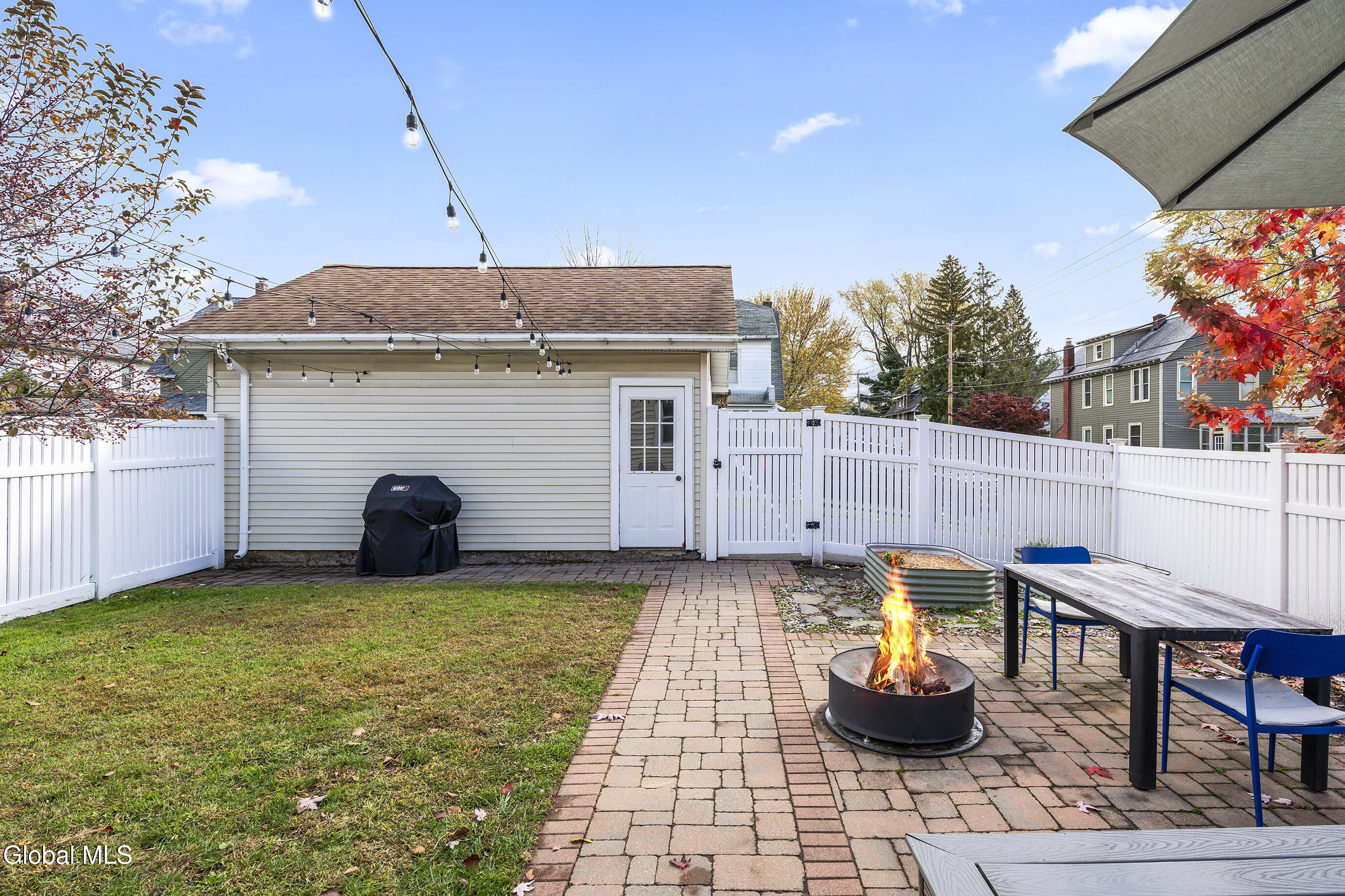 Character meets modern comfort in this beautifully maintained two-story Albany home. Step into gleaming hardwood floors that flow throughout this 1920's classic leading you into a living room where stained-glass windows cast warm, colorful light and a working wood-burning stove creates a natural gathering spot. The updated kitchen offers the comfort of radiant-heated floors, the convenience of stainless steel appliances and opens to a designated dining room for easy everyday meals and entertaining. Upstairs, enjoy four spacious, comfortable bedrooms and updated full bath. Space feels easy and intentional, with a clever collection of bonus areas: an enclosed, heated front sunroom that extends your living space, a practical mudroom with direct yard access, and an enclosed balcony off a bedroom, perfect for journaling, yoga, or a quiet call. Outside, the private vinyl-fenced yard sets the scene, with a floating deck perfect for outdoor dining and relaxed evenings. Practical wins abound; a detached 2-car garage plus off-street parking, on-demand high-efficiency heat & hot water, replacement windows, a vintage Pittsburgh potty in the basement, and a full walk-up attic for all the gear life brings. Location seals it: minutes to Albany Med and St. Peter's, and an easy walk to local eateries, coffee, parks, and neighborhood favorites. Beautifully maintained and truly loved, this home is ready to host your first holiday gathering—pie in the oven, fire crackling, guests arriving with smiles. Welcome home!