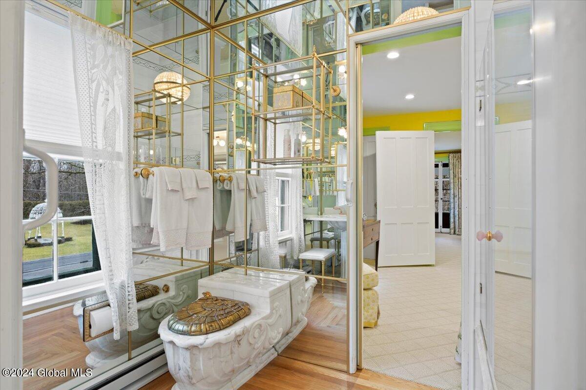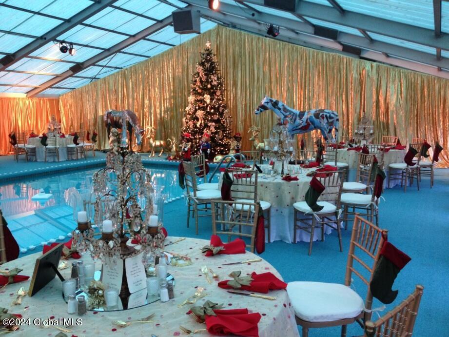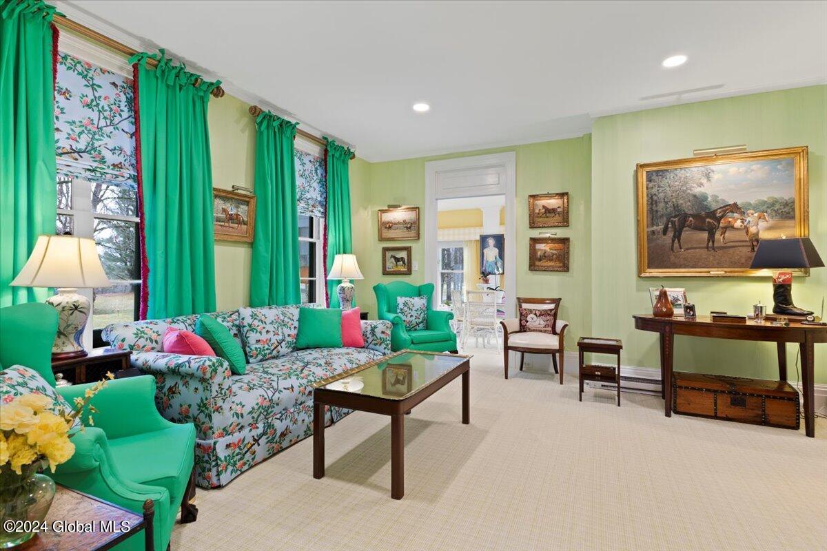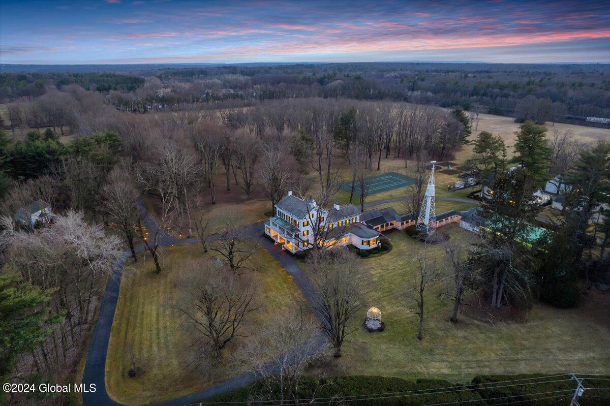 Owned by the iconic Queen of Saratoga, the late Marylou Whitney, & her husband the late John Hendrickson, this 120+ acre property embodies the beauty & history of Saratoga Springs. The mansion has 6218 SF, built in 1851, 7 bedrooms, 7 full baths, 2 1/2 baths, 3 covered porches, pool house w/ heated pool & gym, chapel, tennis courts, rose gardens, 2 bay heated detached garage, 9 bay heated detached garage w/ generator for the property, gate house, root cellar, office building, maintenance building, & 2 single family ranch homes. See documents for full detailed list of features. Gertrude Vanderbilt Whitney ''Daphne'' statue on top of the fountain in the formal rose garden is excluded from sale.