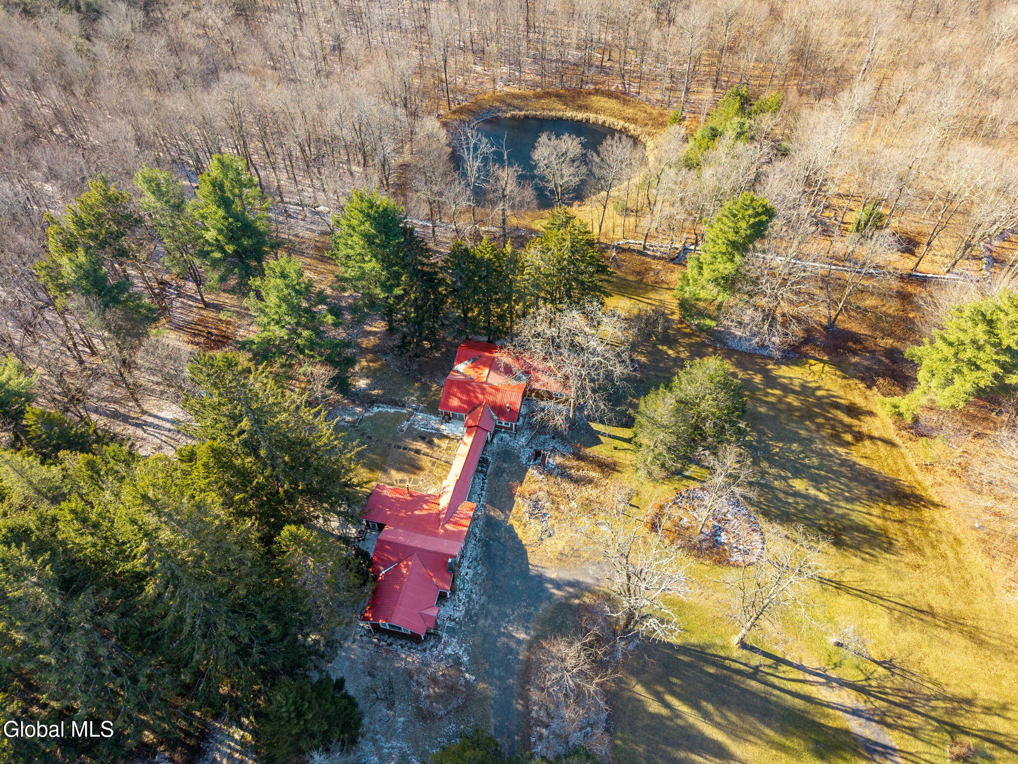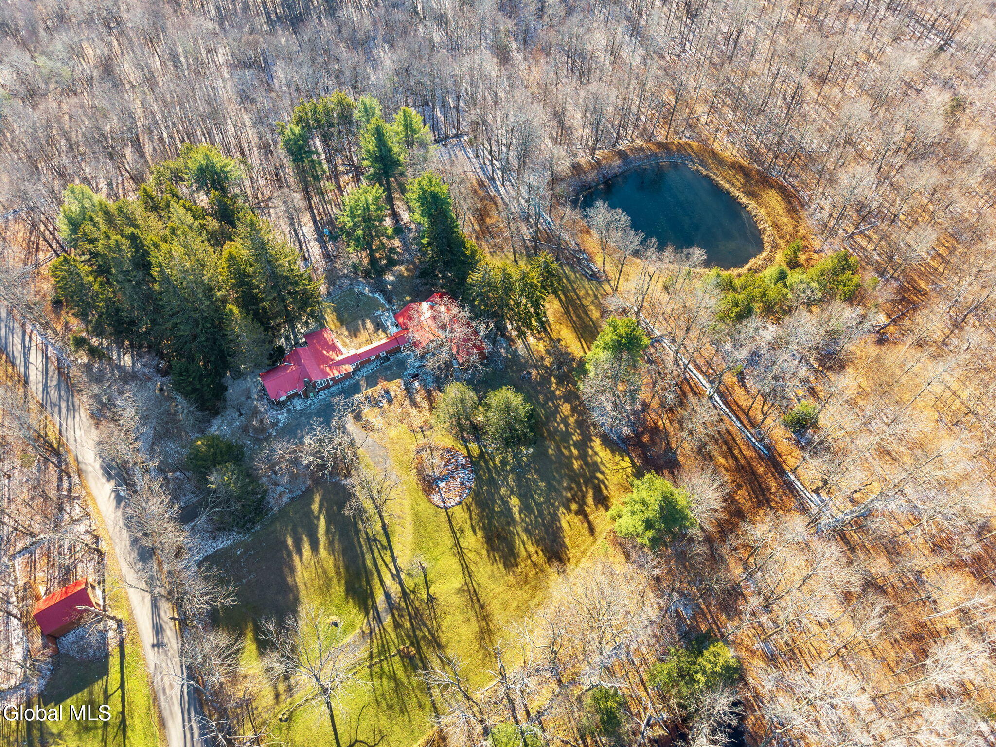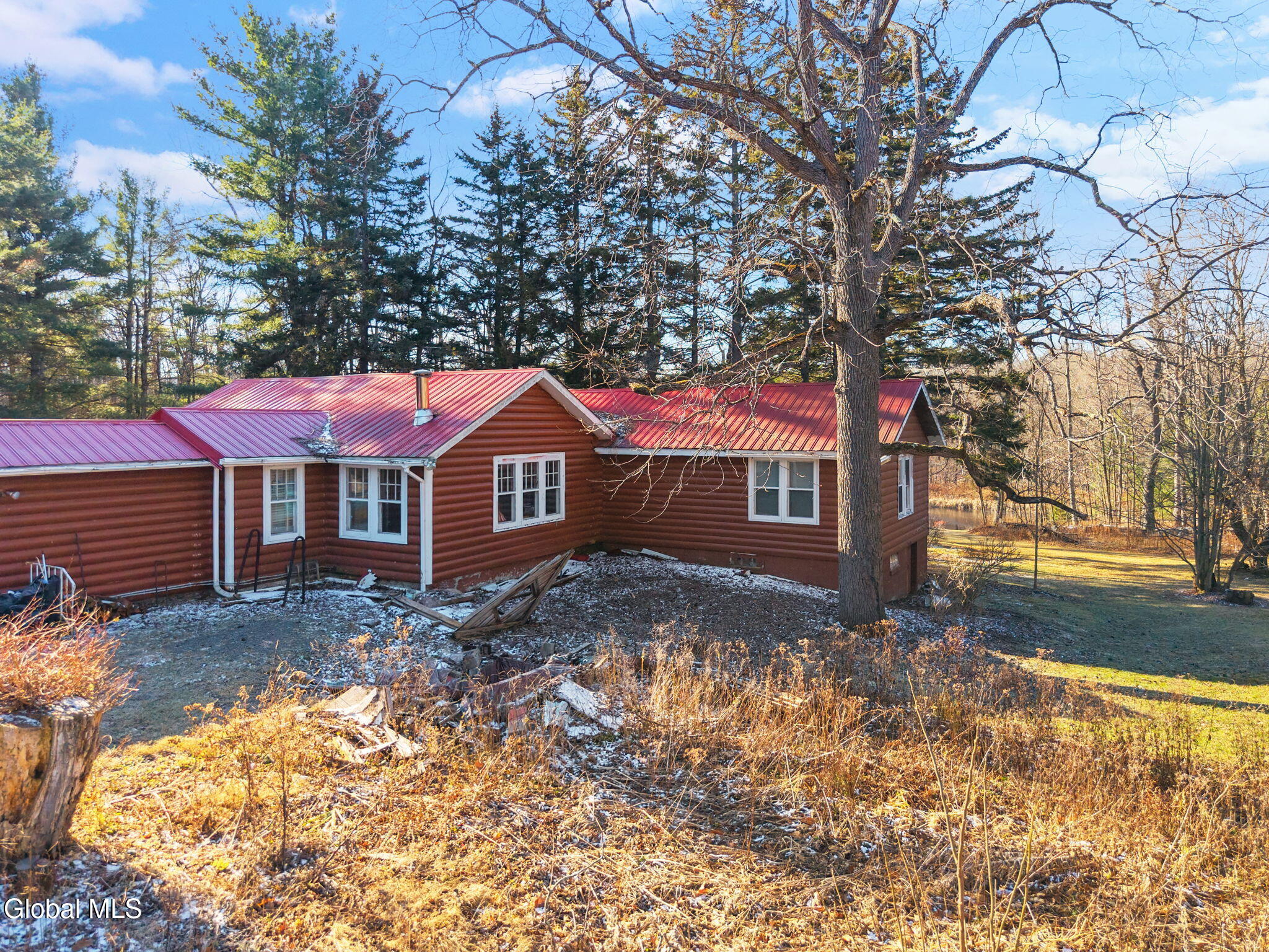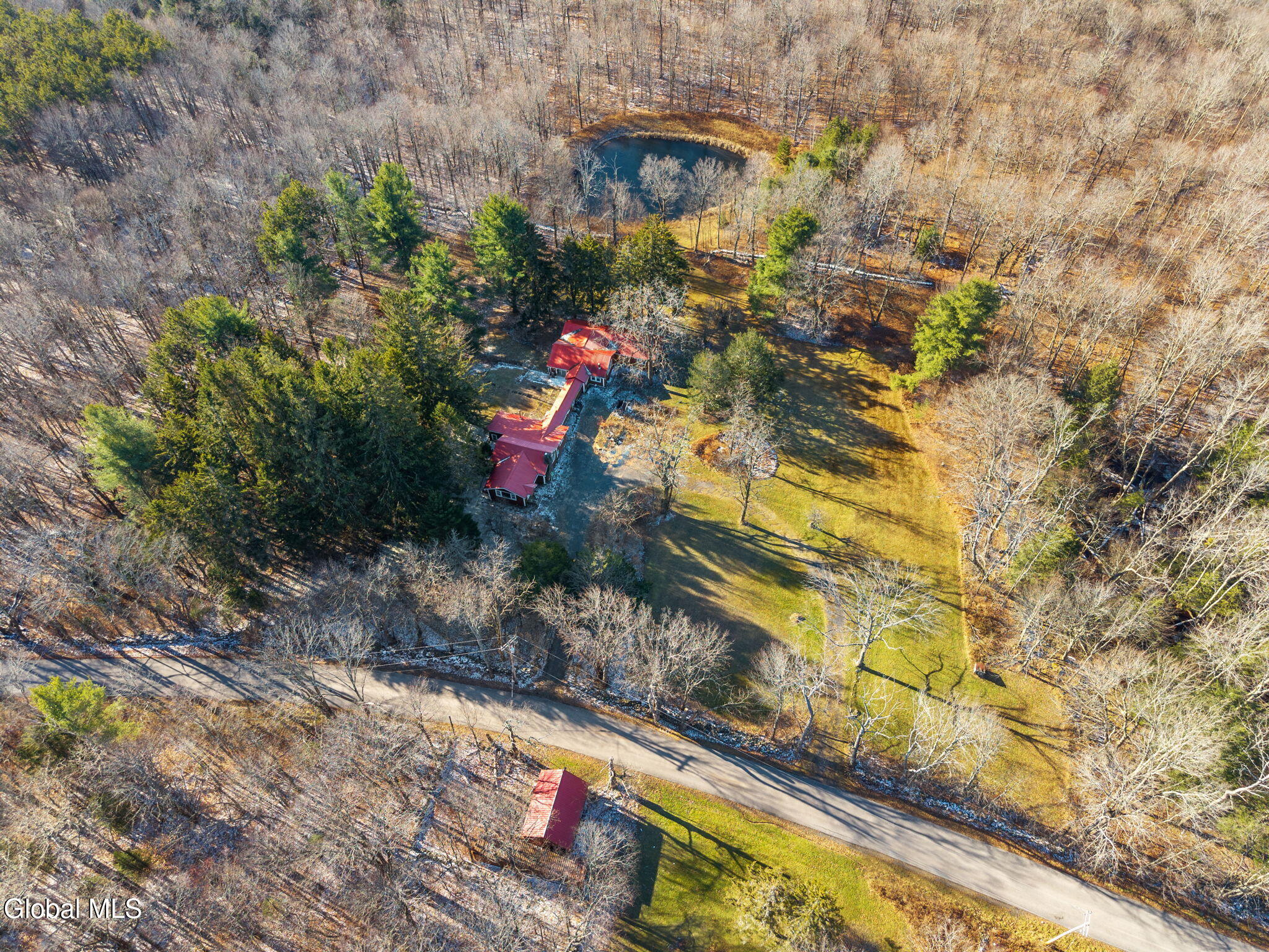 BEST AND FINAL DUE BY SUNDAY DEC 7TH 5PM. Sprawling Ranch on 36.1 Acres with Pond & land on both sides of the road - Cash Only, As-Is Needs TLC, Discover the potential in this expansive 3,200 sq ft ranch set on 36.1 flat, usable, and picturesque acres in the Town of Middleburgh. With land located on both sides of the quiet country road, this property offers endless possibilities for recreation, privacy, and outdoor enjoyment. The acreage across the street features a well (condition unknown), a detached garage, and a shipping container—ideal for storing ATVs, tools, or outdoor gear. The main parcel includes a lovely pond and plenty of open space perfect for hunting, hobby farming, or creating your dream country retreat. Inside, this truly sprawling home is designed for those who want room to stretch out. The layout features:East Wing, with a bedroom and full bath, billiard room, large living room with stone fireplace, Bar room-perfect for entertaining, central Hallway with office/den with closet, a small sun room and a long corridor that separates living areas and provides access to multiple sliders leading to deck, patio area and pond. West Wing has oversized country kitchen with ample space for cooking and gathering, Second living room with wood stove, spacious dining room that comfortably seats 14 guests, two large bedrooms and a generous full bath with garden tub, shower, toilet, and bidet. This property offers a rare opportunity for buyers seeking space, privacy, and the chance to build equity. Ideal for hunters, outdoor enthusiasts, large families, or anyone looking for a getaway with room to roam. Being sold as-is, cash only. A fantastic value for the acreage, square footage, and potential.