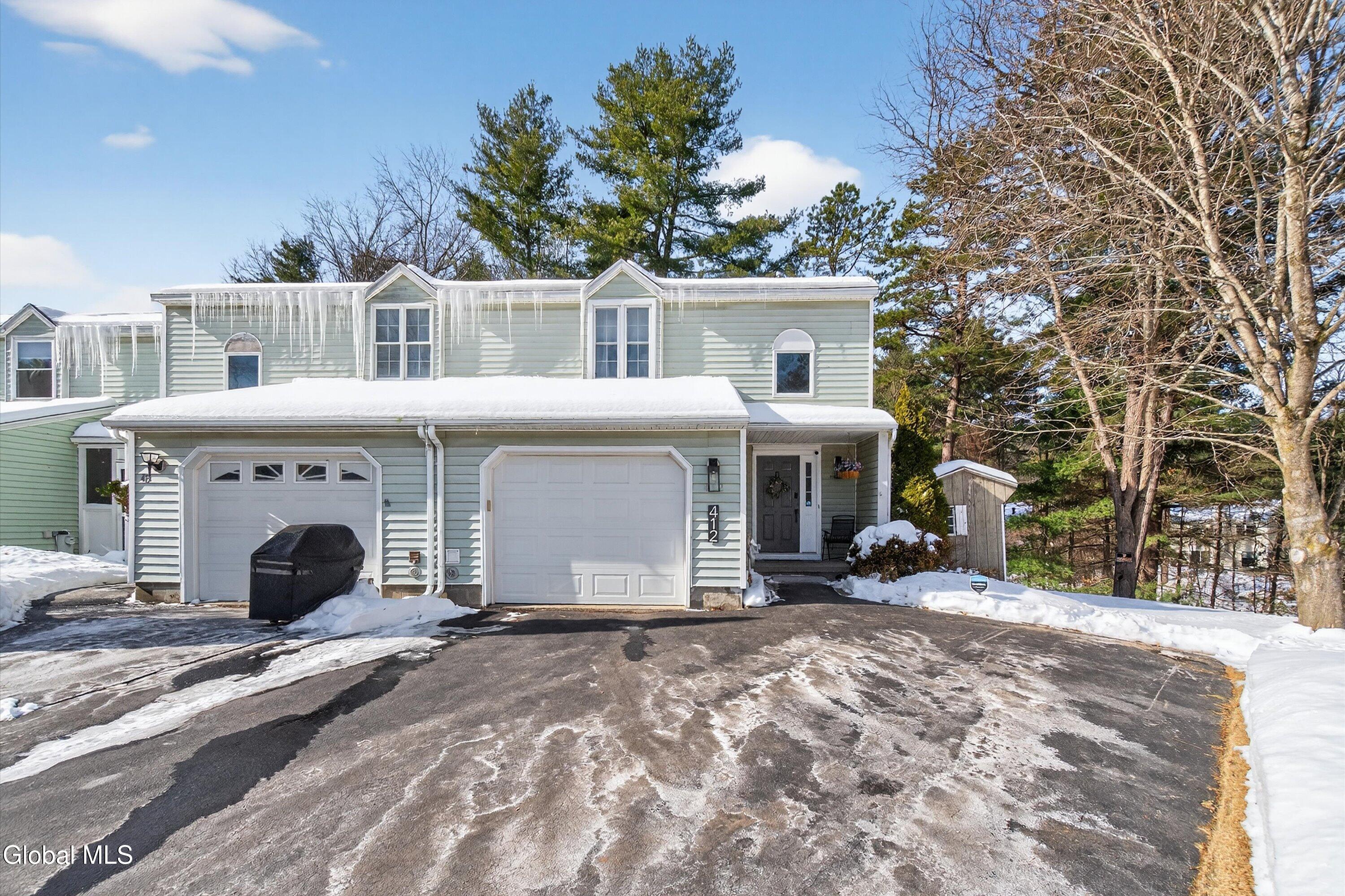 **We will be reviewing all offers on Sunday February 15th @ 7PM** Welcome to this move-in-ready 2-bedroom, 2.5-bath end-unit townhome located in the Ballston Spa School District, ideally situated less than 15 minutes from both downtown Ballston Spa and Saratoga Springs. A welcoming entryway leads into a spacious living room featuring a cozy fireplace, perfect for relaxing or entertaining. The large kitchen with brand new quartz countertops, offers ample cabinet space and a generous dining area, while a convenient half bath completes the first floor. Upstairs, you'll find two private suites, each with its own attached full bath for privacy.The fully finished basement adds valuable additional living space and is perfect for a home office, game room, or media area, complete with walkout access to a private backyard. A one-car garage and additional shed provide plenty of storage. This end unit offers space, functionality, and a prime location close to shopping, dining, and all the amenities the area has to offer.