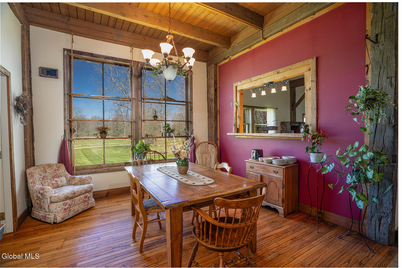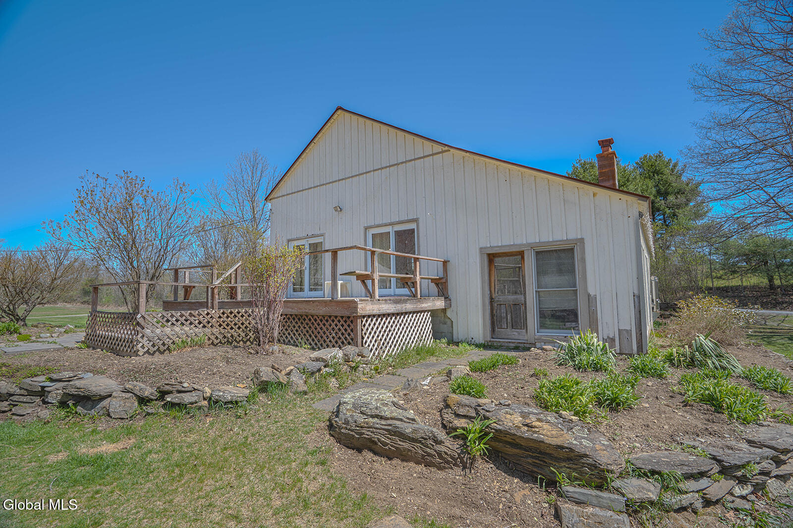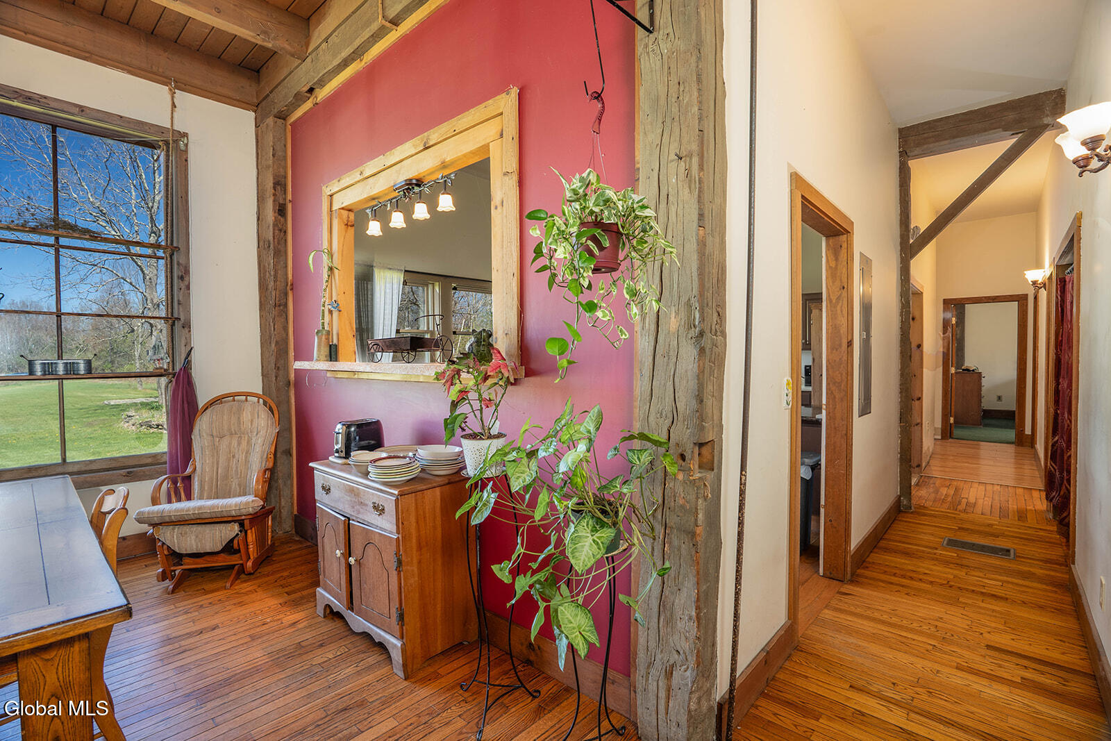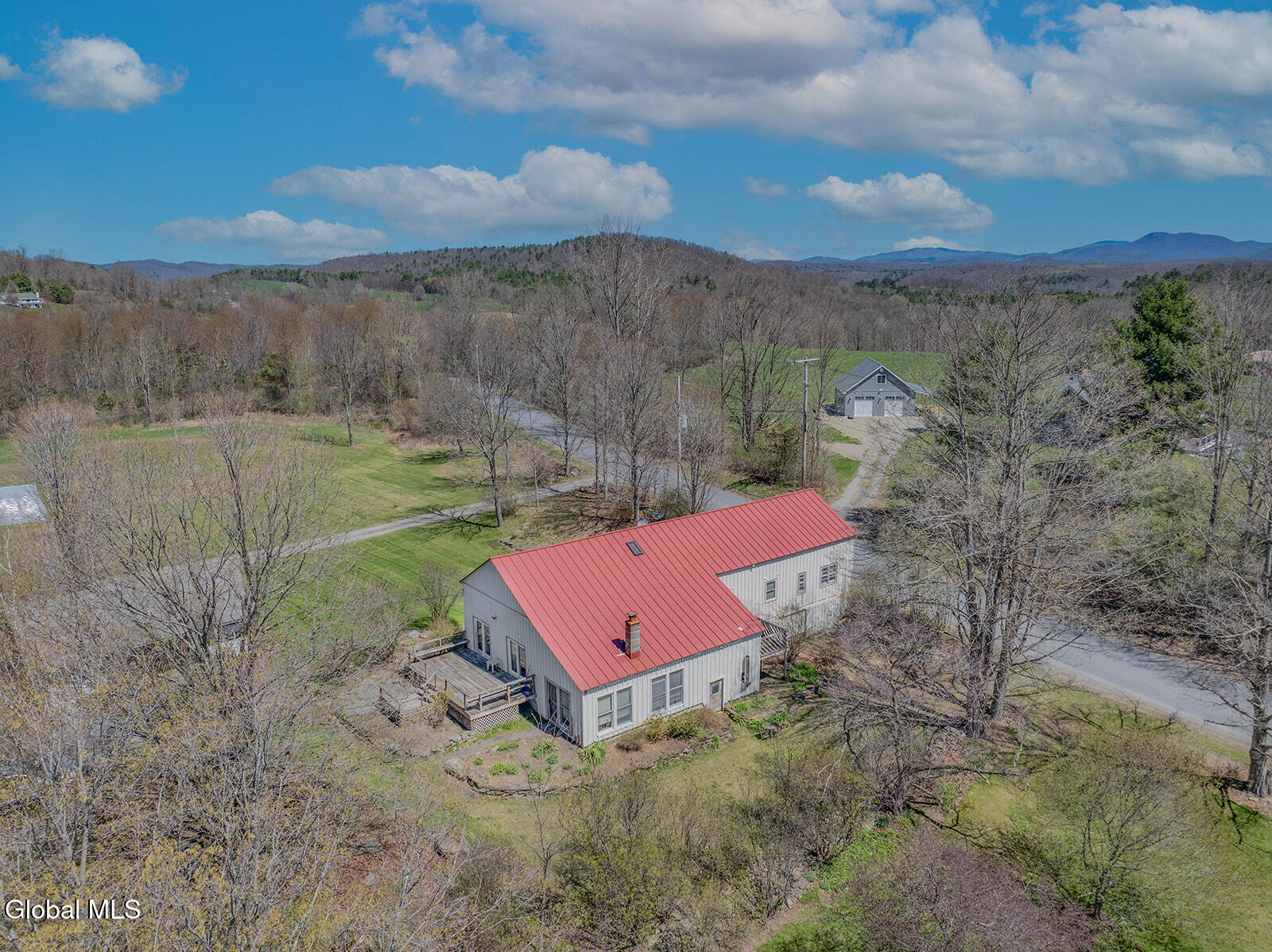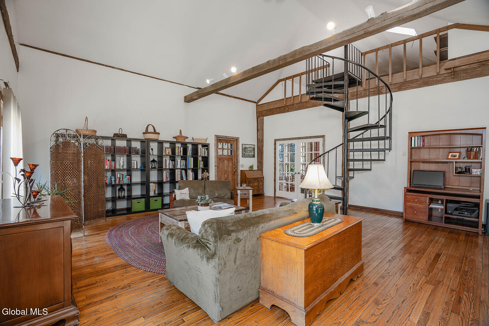 Dramatic and full of character, this striking barn conversion offers rustic charm and thoughtful functionality set on 15.74 beautiful acres. Soaring ceilings, stunning exposed beams, and expansive windows and glass doors flood the home with natural light. A focal point is the impressive Great Room with cathedral ceilings and a spiral staircase leading to a second-floor loft with a bedroom and full bath--an ideal retreat for guests or a private workspace. A sun-drenched mudroom with tiled flooring provides the perfect spot for muddy boots or starting seedlings or tending to plants year-round. Please note: the existing woodstove is excluded, and the chimney needs repair. French doors lead into a bright dining room framed by oversized windows, accompanied by a spacious kitchen and pantry closet. The primary suite offers a peaceful escape with a full bath and its own private sitting deck, while two additional bedrooms, another full bathroom, and a laundry room provide ample space. Step outside to a rear deck overlooking established perennial beds and manicured grounds featuring medicinal herb gardens, berry bushes, and a firepit for relaxing evenings under the stars. The greenhouse is negotiable, offering even more potential for those with a green thumb. Perfectly suited for an agrarian or self-sufficient lifestyle, the property includes a mix of open meadow and wooded land with trails ideal for hiking and mountain biking, all within a vibrant farming community. A three-car garage with storage loft and attached chicken coop adds to the versatility. Enjoy efficient living with a wood boiler and large woodshed, complemented by an oil-fired hot air furnace in the basement for backup heat when needed. Although some TLC is needed, this is a truly special opportunity to embrace country living without compromising on comfort or character.
