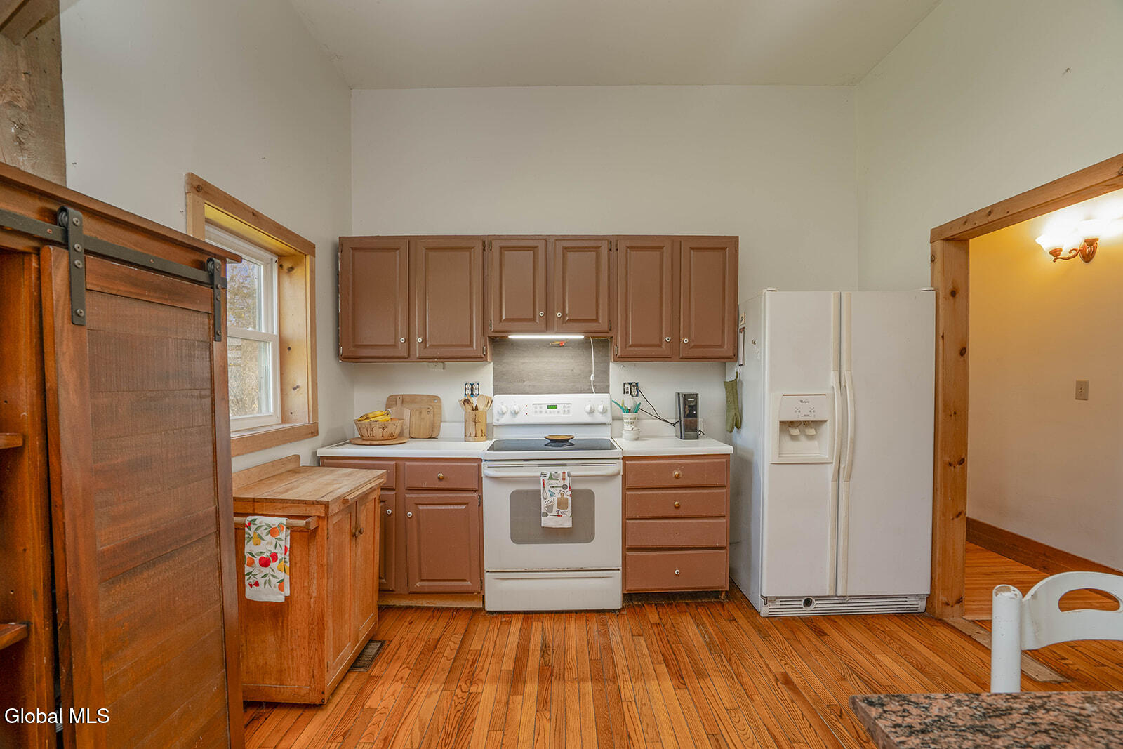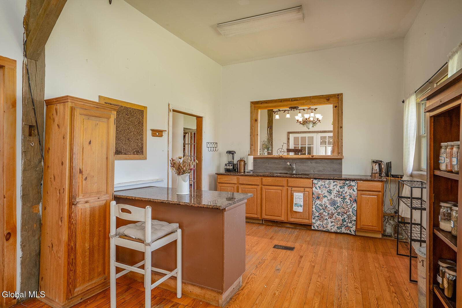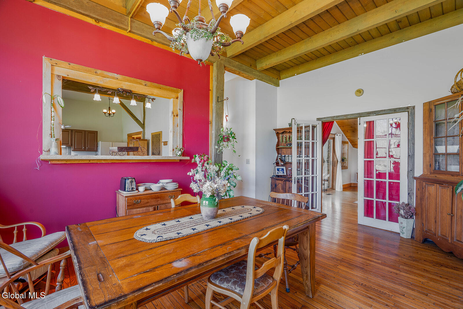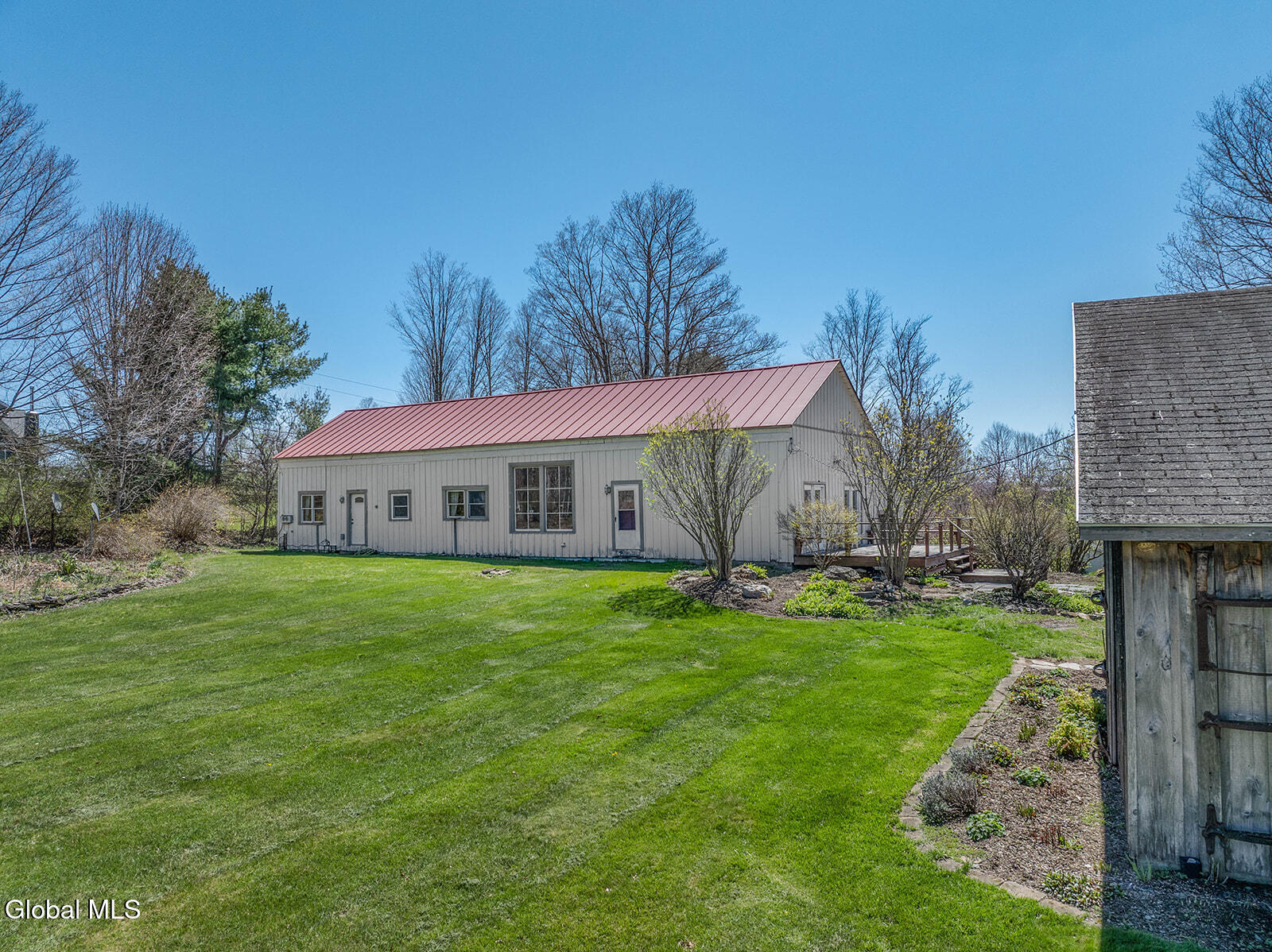 Dramatic and full of character, this striking barn conversion offers rustic charm and thoughtful functionality set on 15.74 beautiful acres. Soaring ceilings, stunning exposed beams, and expansive windows and glass doors flood the home with natural light. A focal point is the impressive Great Room with cathedral ceilings and a spiral staircase leading to a second-floor loft with a bedroom and full bath--an ideal retreat for guests or a private workspace. A sun-drenched mudroom with tiled flooring provides the perfect spot for muddy boots or starting seedlings or tending to plants year-round. Please note: the existing woodstove is excluded, and the chimney needs repair. French doors lead into a bright dining room framed by oversized windows, accompanied by a spacious kitchen and pantry closet. The primary suite offers a peaceful escape with a full bath and its own private sitting deck, while two additional bedrooms, another full bathroom, and a laundry room provide ample space. Step outside to a rear deck overlooking established perennial beds and manicured grounds featuring medicinal herb gardens, berry bushes, and a firepit for relaxing evenings under the stars. The greenhouse is negotiable, offering even more potential for those with a green thumb. Perfectly suited for an agrarian or self-sufficient lifestyle, the property includes a mix of open meadow and wooded land with trails ideal for hiking and mountain biking, all within a vibrant farming community. A three-car garage with storage loft and attached chicken coop adds to the versatility. Enjoy efficient living with a wood boiler and large woodshed, complemented by an oil-fired hot air furnace in the basement for backup heat when needed. Although some TLC is needed, this is a truly special opportunity to embrace country living without compromising on comfort or character.