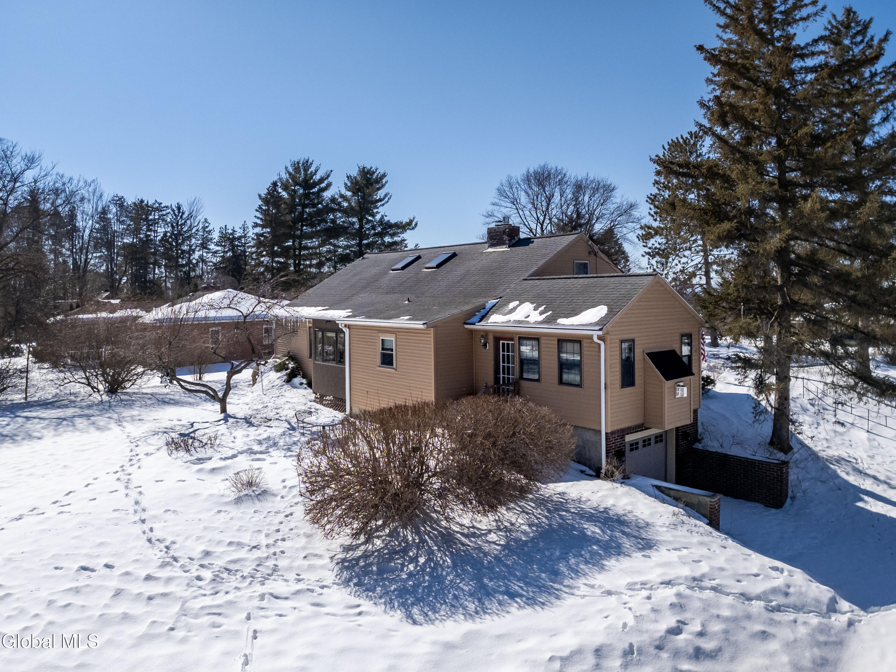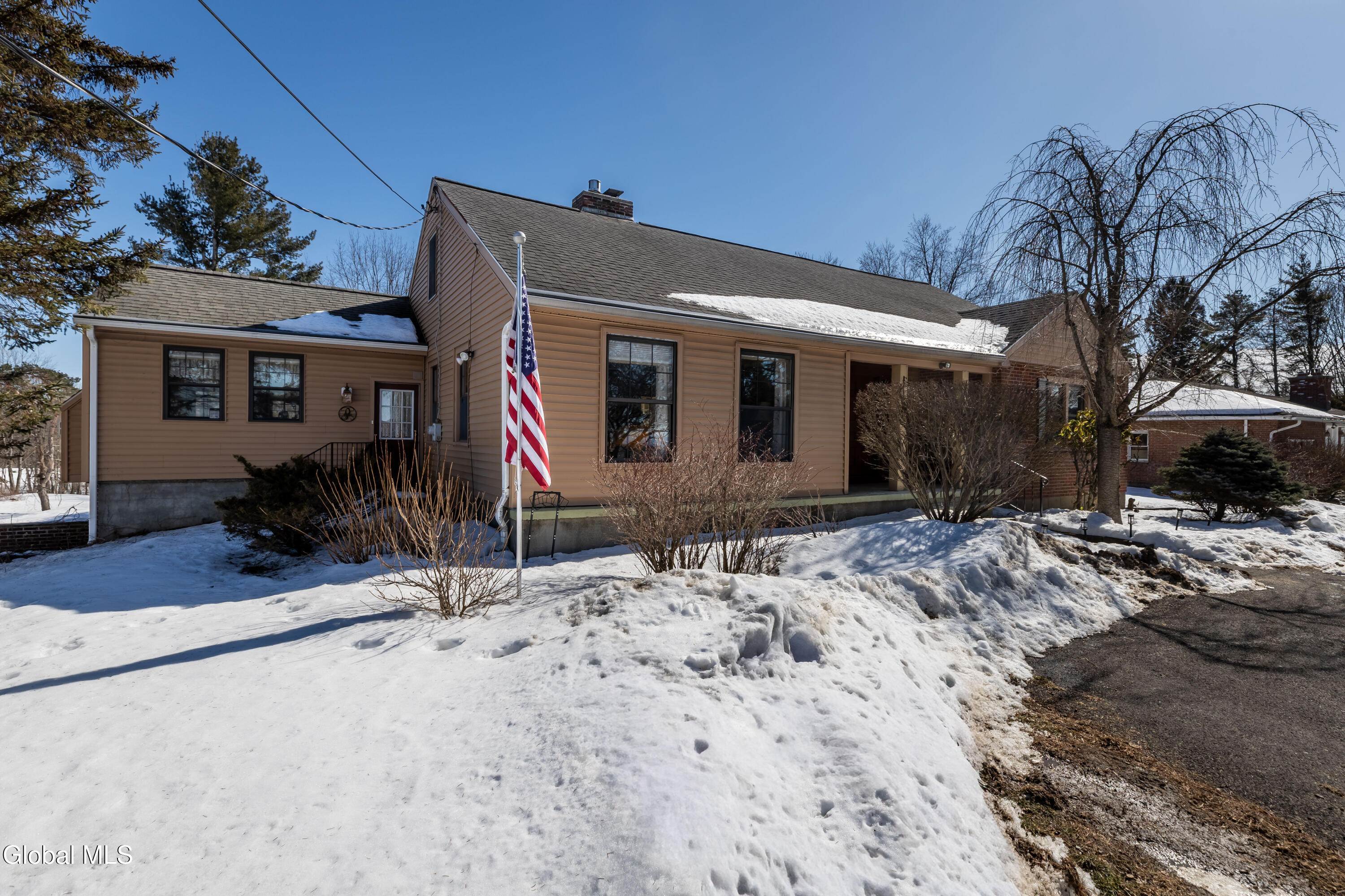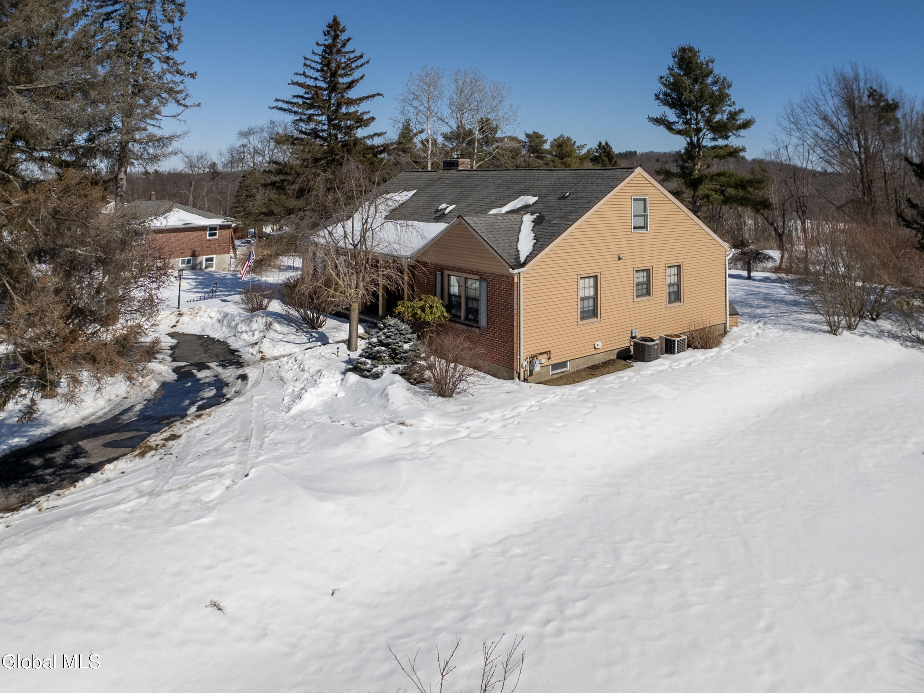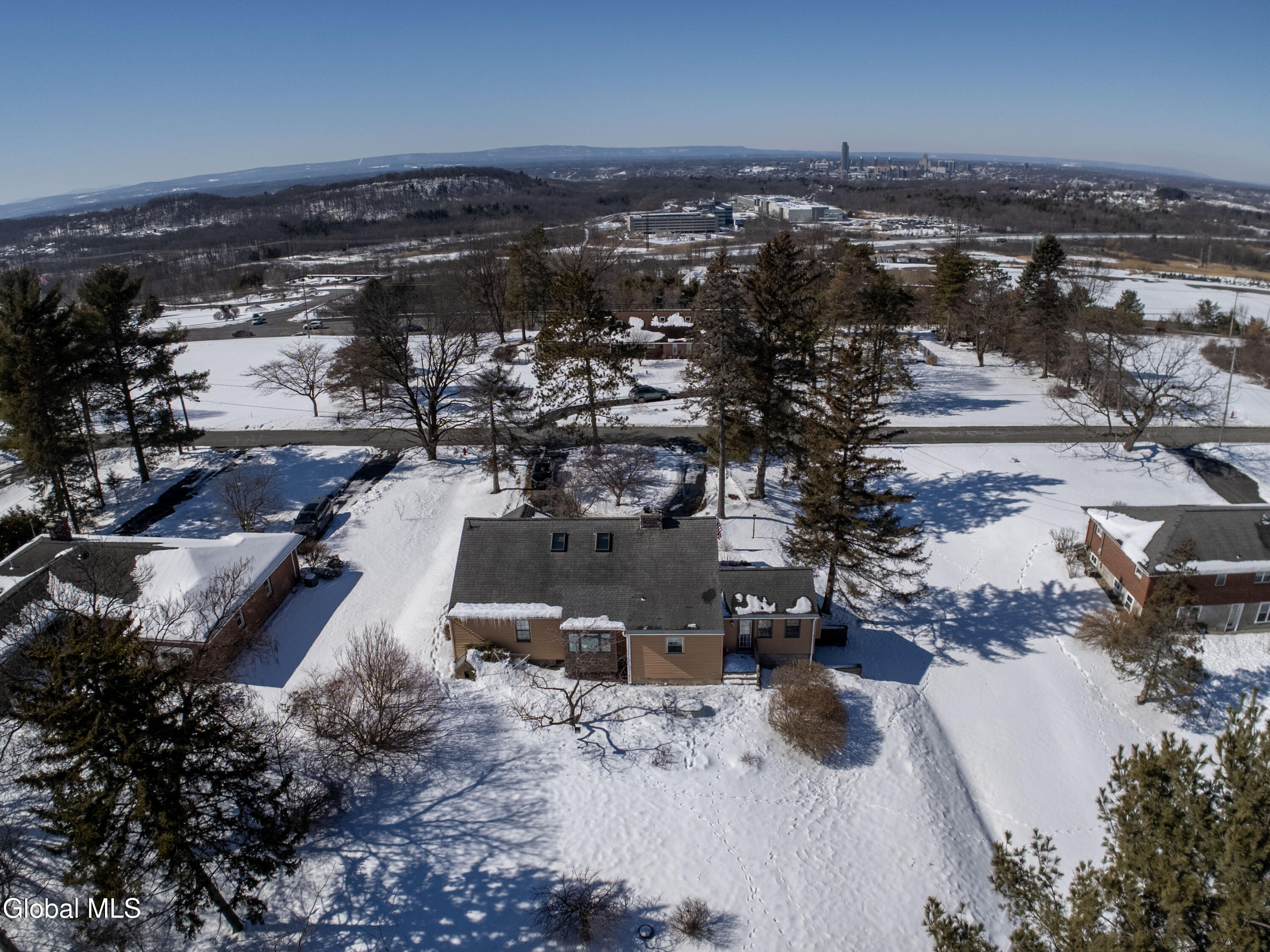 Welcome home to charm and warmth through-out this cozy yet very spacious Cape Cod with Albany Skyline views! Step into gleaming hardwood floors and a powerful gas fireplace in the living room, Formal dining room with an extended nook perfect for reading, storage or to watch your greenery bloom, Kitchen offers a large island and pantry and is open to den/family room with 2nd gas fireplace. 2 bedrooms and a full bathroom complete the first-floor space. 2nd level is a true primary retreat complete with full bathroom with soaking tub, lots of closet space and skylights to really brighten the large space. Beautifully loved and cared for landscape in your private back yard space with tree line views. Private driveway to 1 car garage under the residence and circular driveway in front offers plenty of parking. Unbeatable location conveniently located to highway, shopping, restaurants, downtown. Enjoy the beautiful sunset views overlooking Albany skyline. East Greenbush Award winning schools, public water.